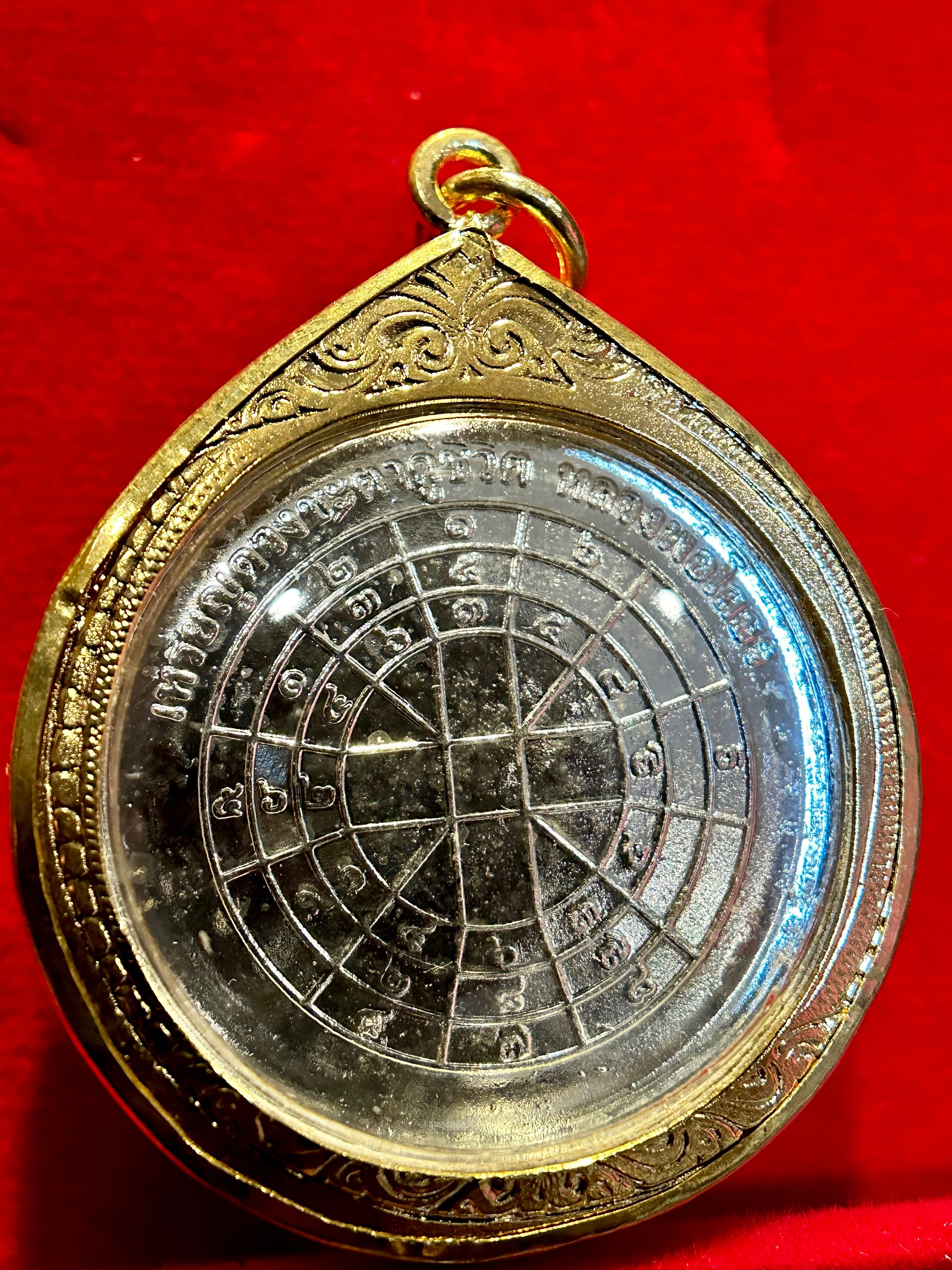 Framed in a golden case with detailed engravings, this amulet carries both artistic brilliance and deep spiritual resonance. It serves as a reminder of balance in the universe, protection in all eight directions, and the presence of wisdom and guidance in everyday life.