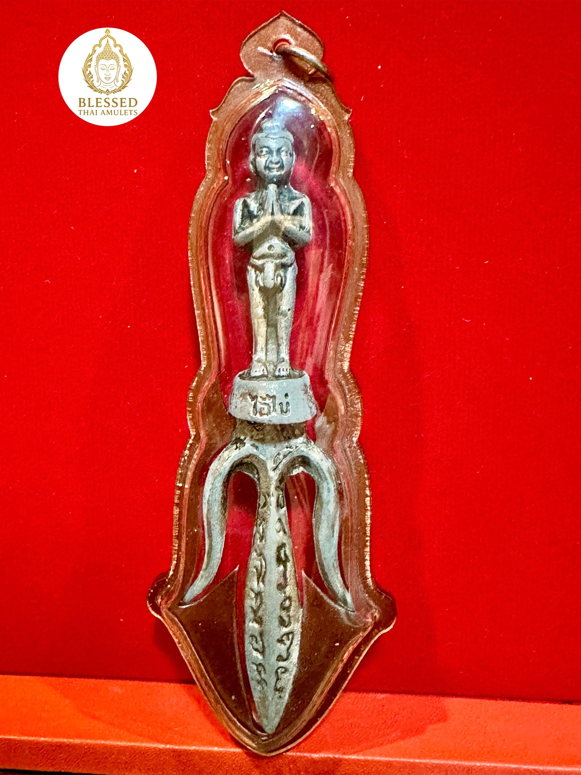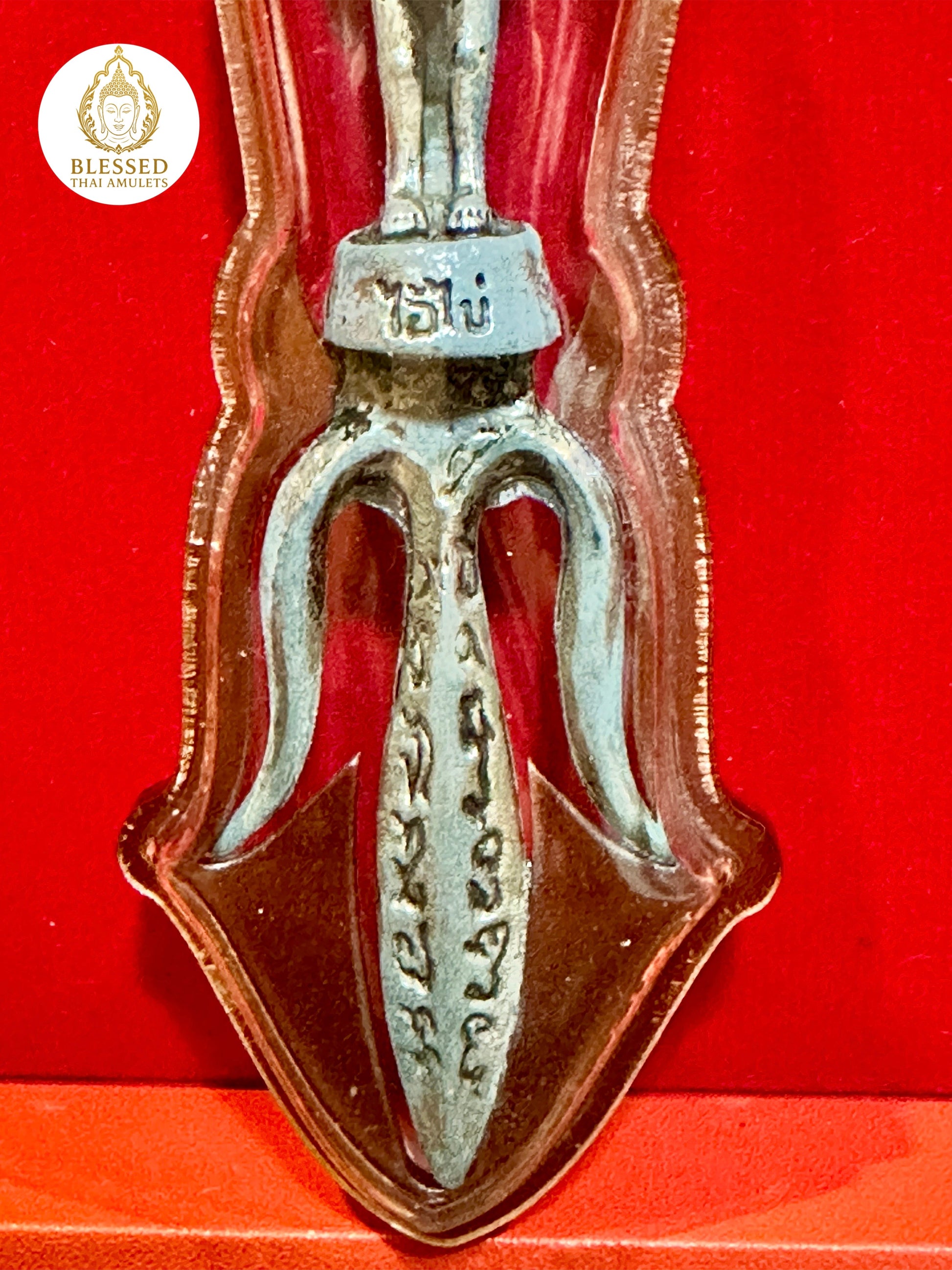 🔻 Bottom: Trident blade (Phra Khan) – wards off black magic, clears spiritual obstacles