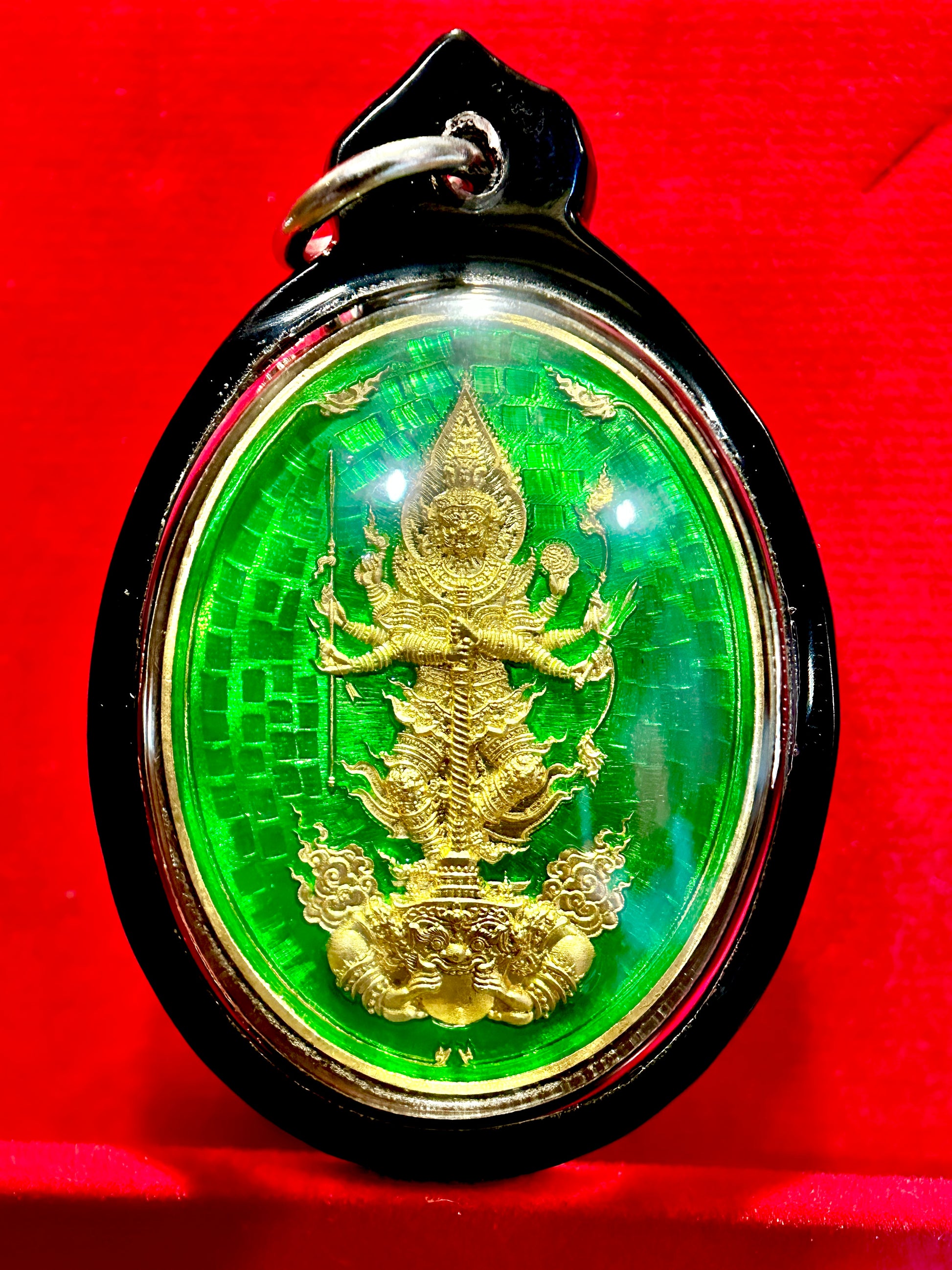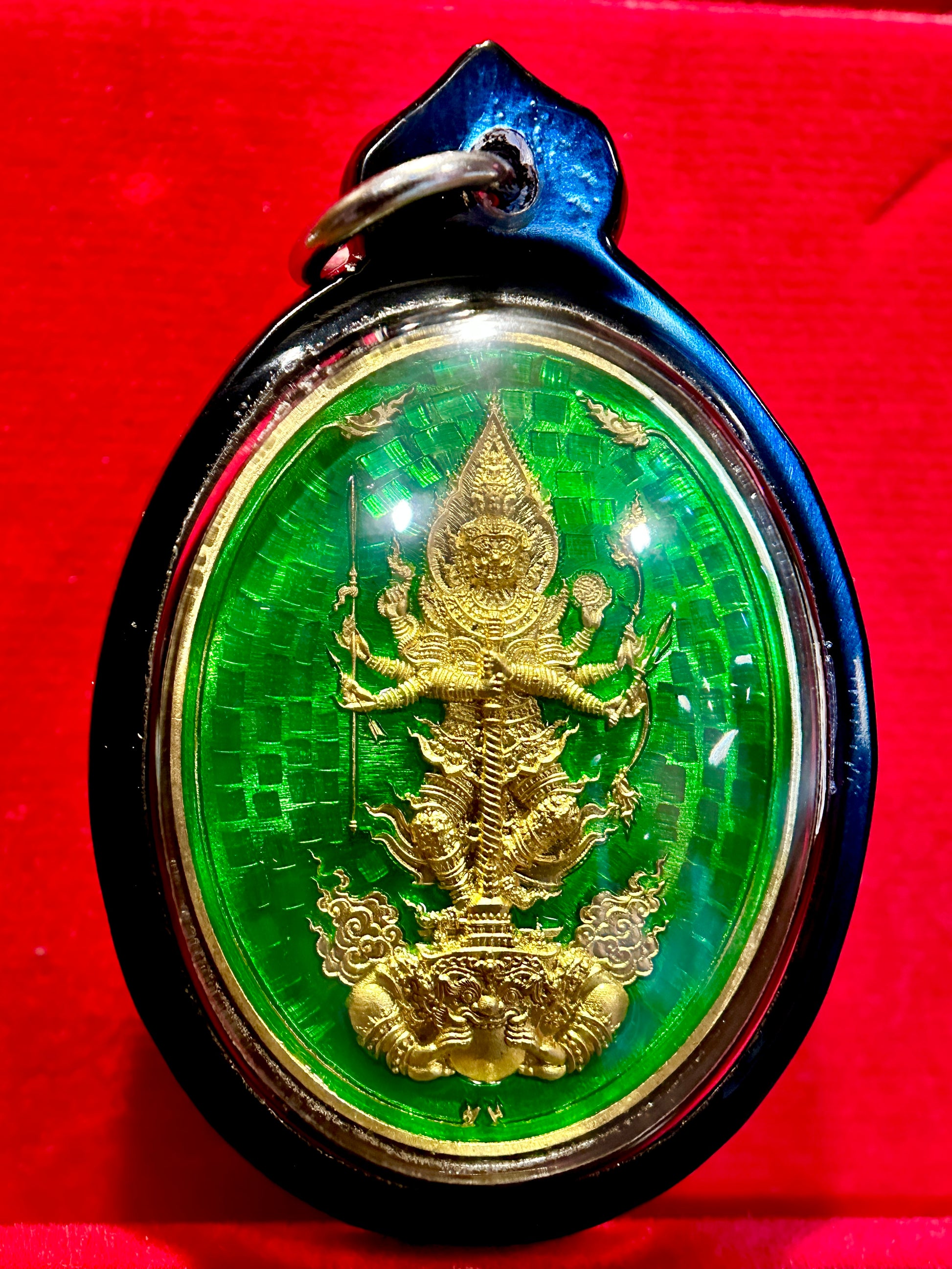 This powerful double-sided amulet features Tao Wessuwan (Vaiśravaṇa), the King of Giants and supreme guardian deity in Thai and Buddhist tradition.