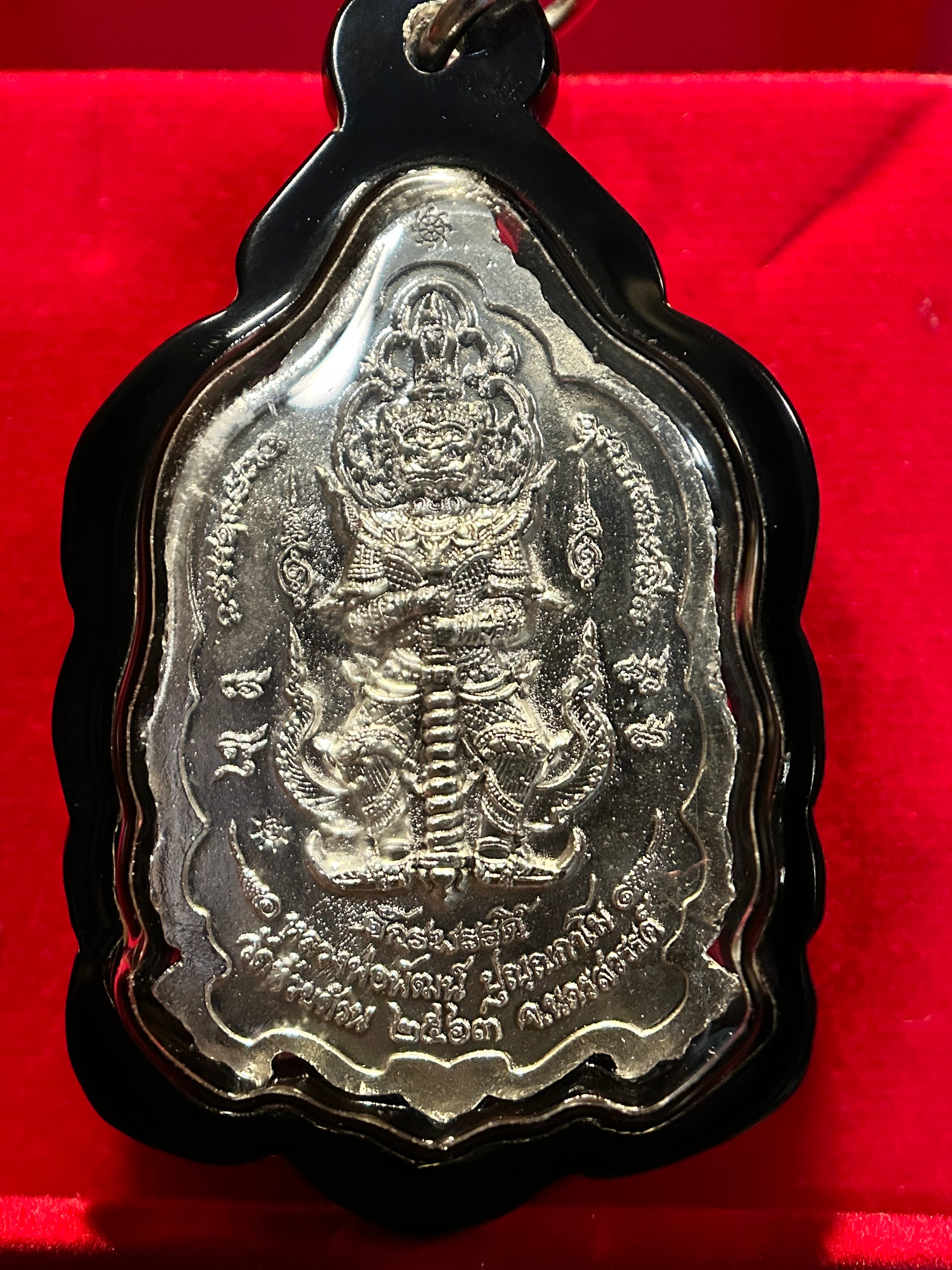 On the reverse, the mighty Tao Wessuwan—guardian of the Buddhist realms—stands with unwavering power, wielding his weapon as a protector against evil spirits, misfortune, and negative influences. Together, the Buddha and Tao Wessuwan unite serenity with strength, making this amulet a powerful companion for those seeking both peace of mind and steadfast protection on their path.