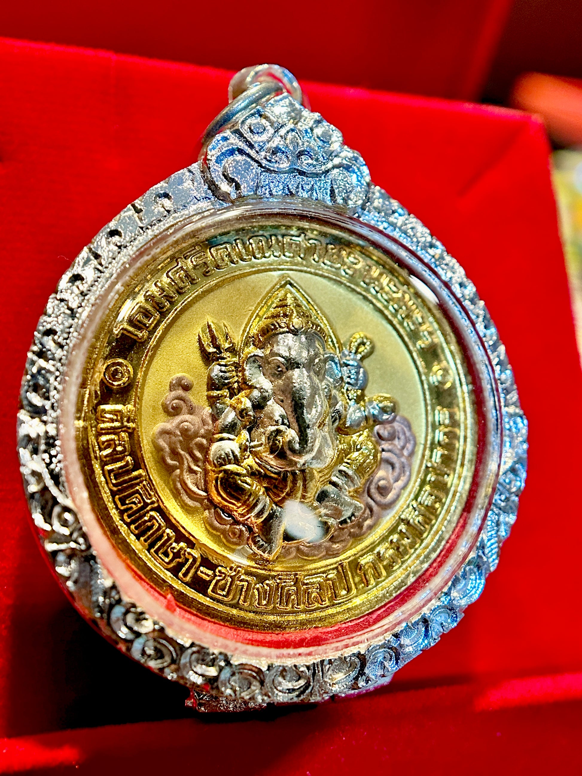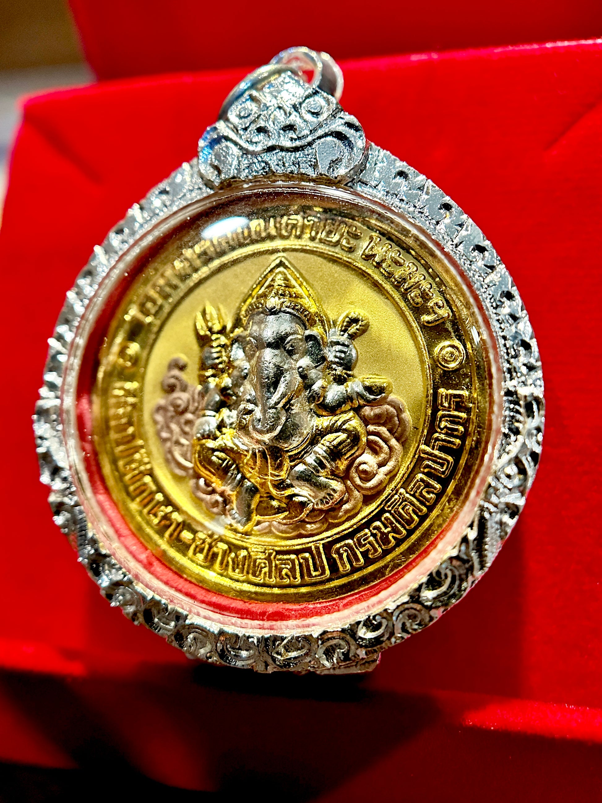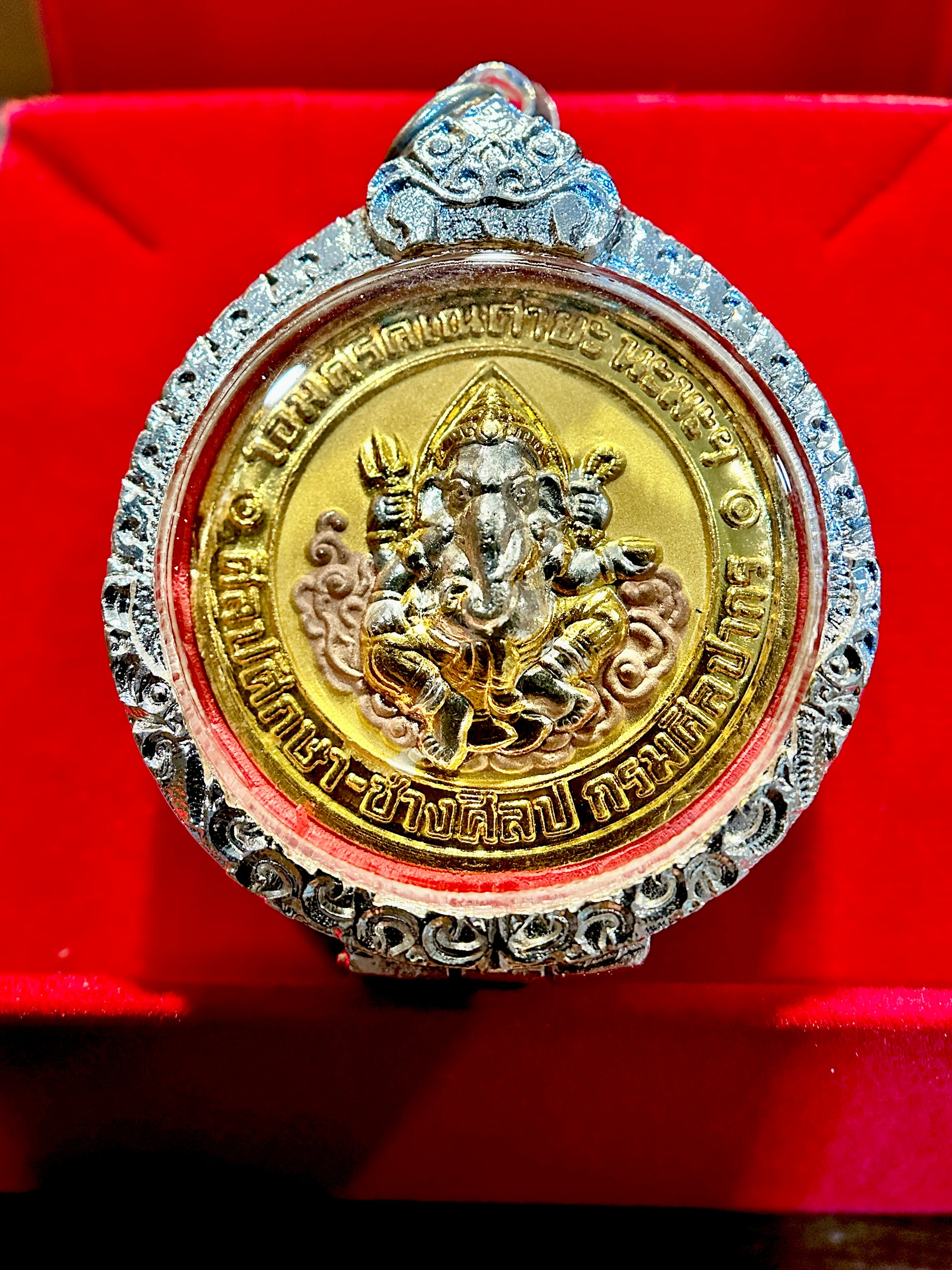 This radiant amulet features Phra Ganesha, the remover of obstacles and patron of wisdom, success, and the arts.