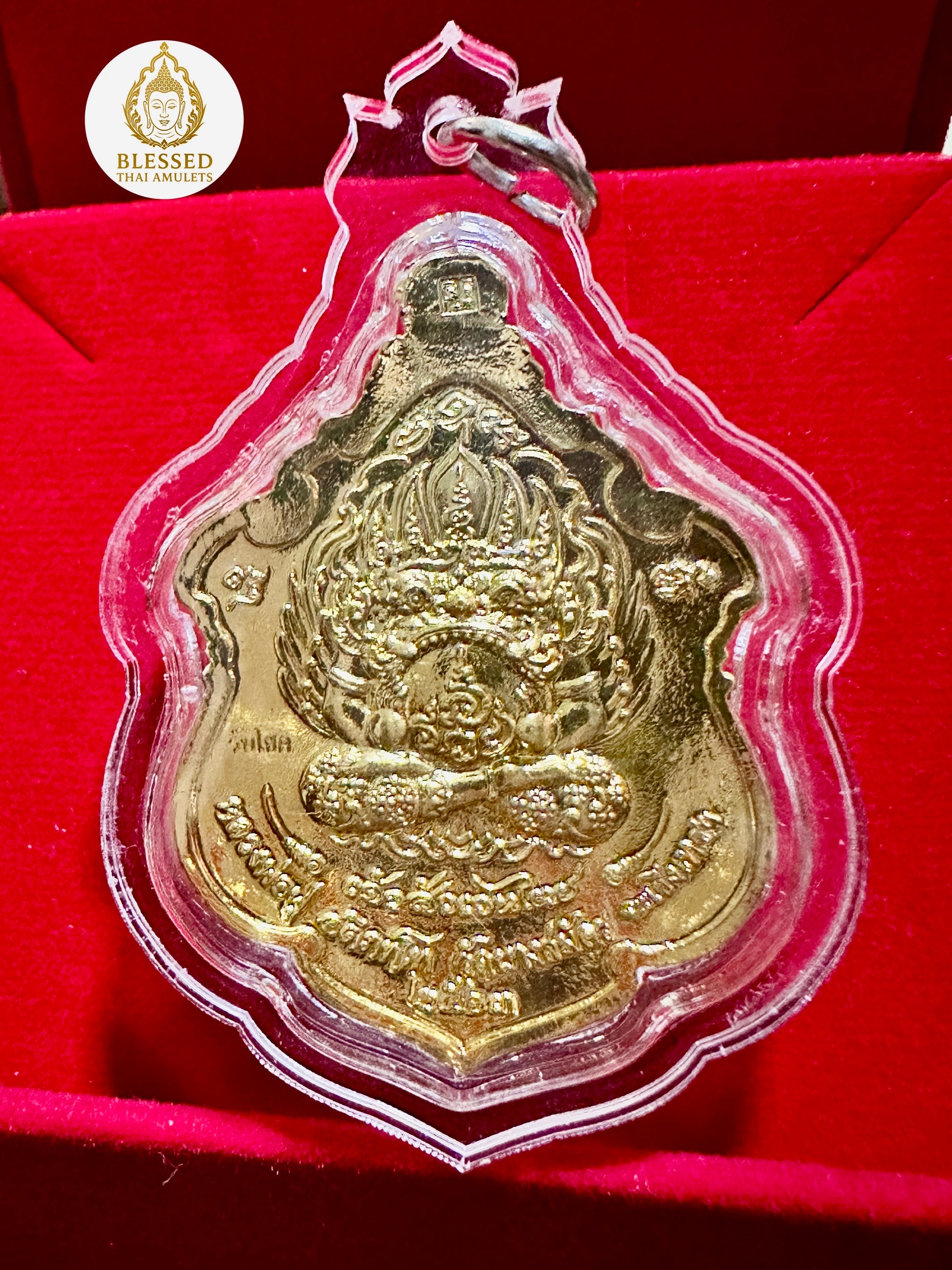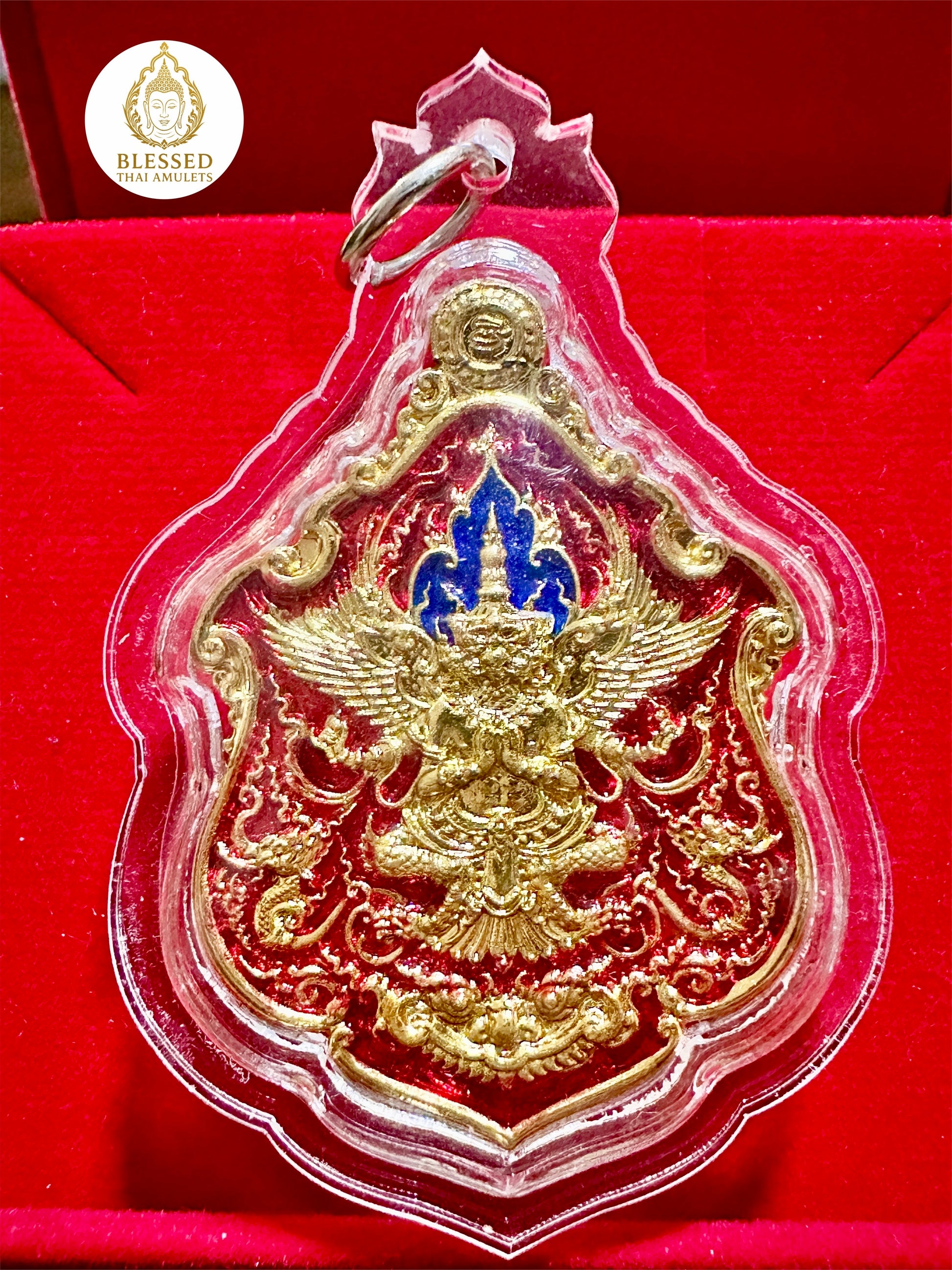 Garuda & Rahu Royal Crest Amulet (Red/Gold)
