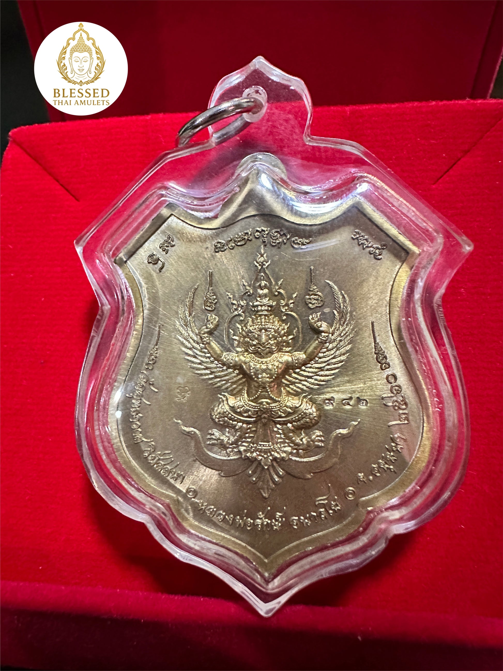 The reverse showcases the majestic Garuda, the celestial bird-man and royal symbol of divine kingship in Thailand. Garuda represents speed, protection, and authority—making this amulet a double-force of spiritual power, justice, and leadership.