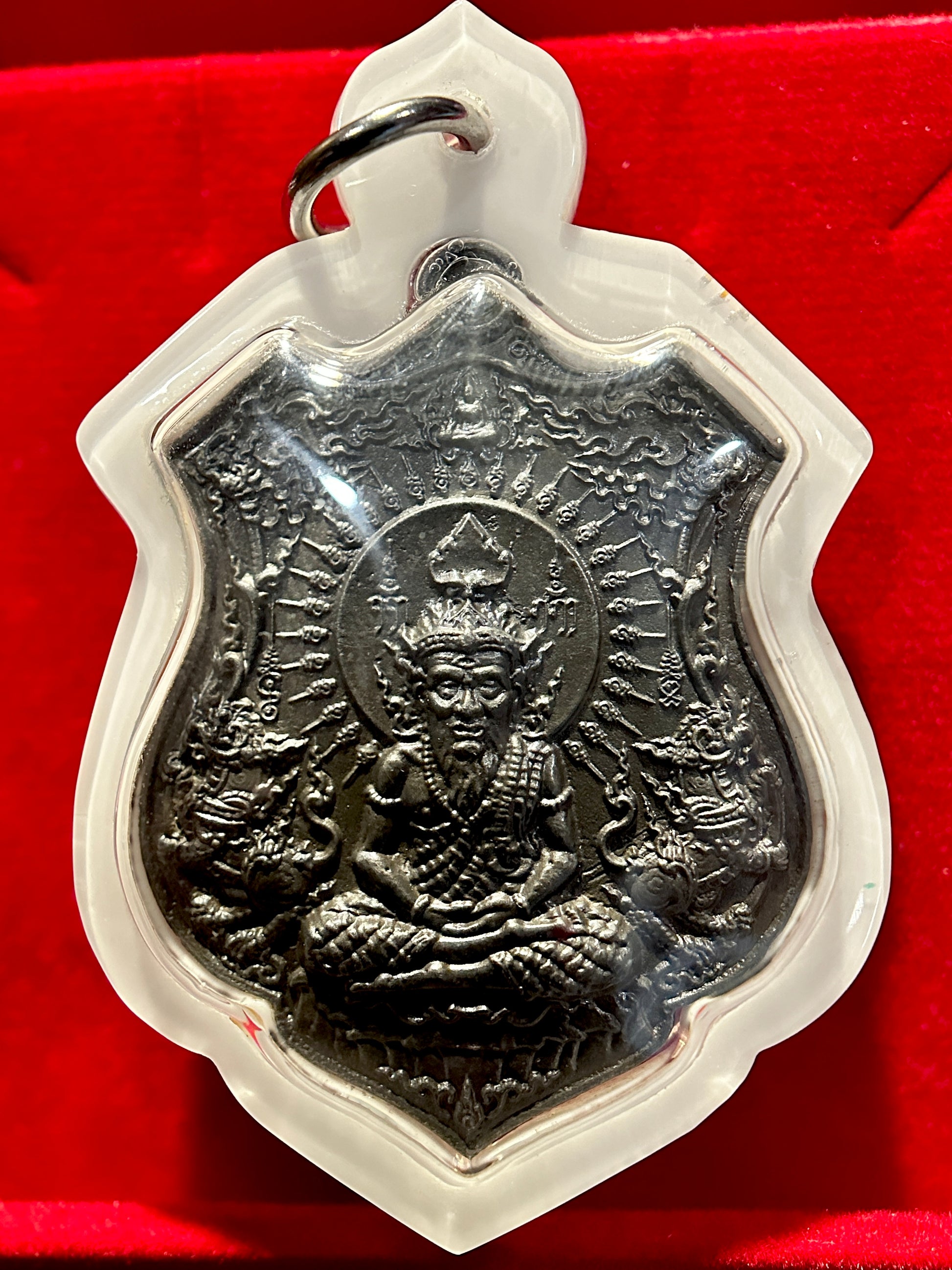 This dual-sided amulet channels the combined power of Hanuman, the courageous monkey god of unwavering strength, and Lersi, the wise forest hermit and master of mystical arts. Cast in a dark antique finish and shielded in a clear flame-frame case, this piece radiates energy, protection, and spiritual discipline.