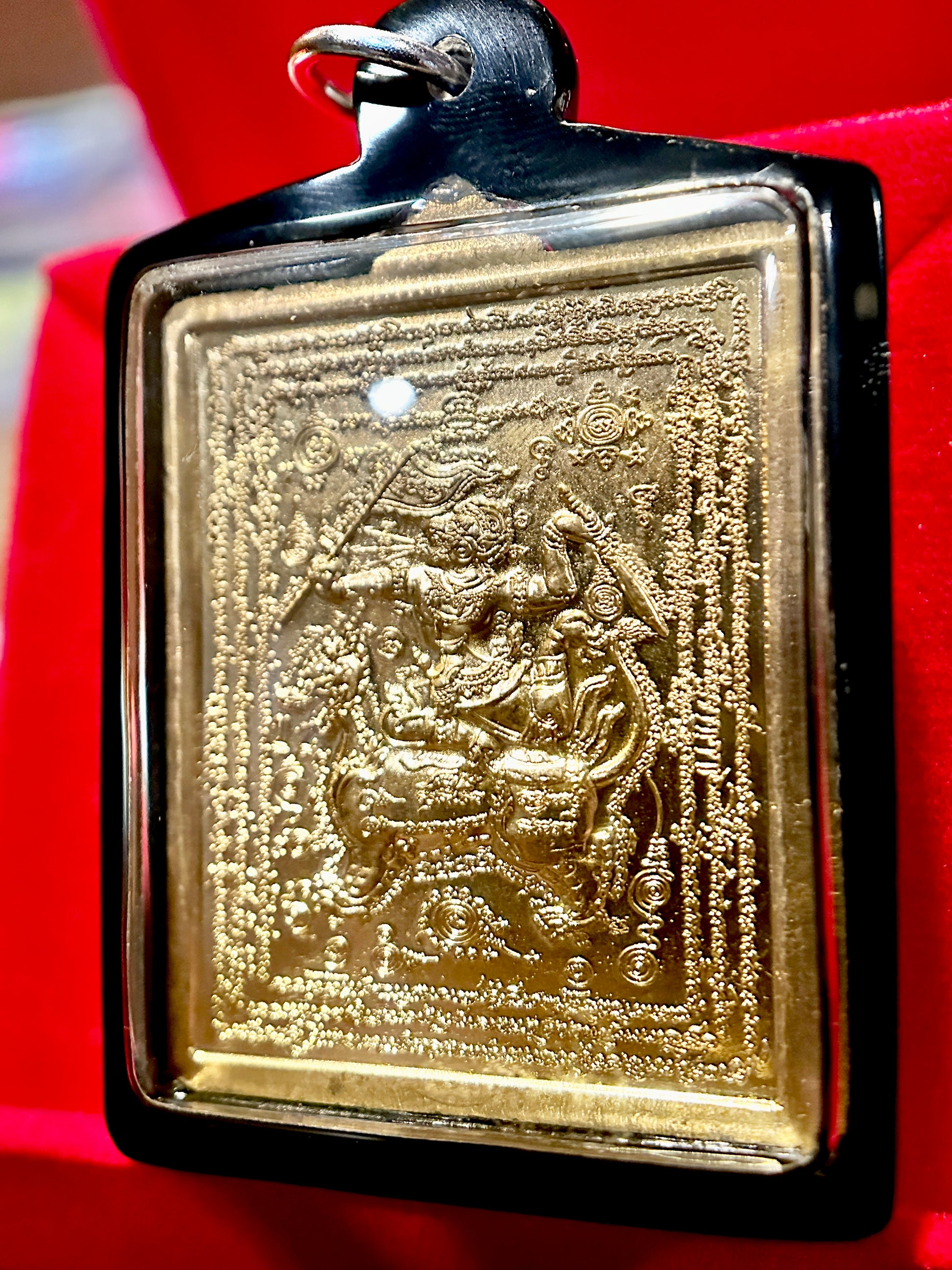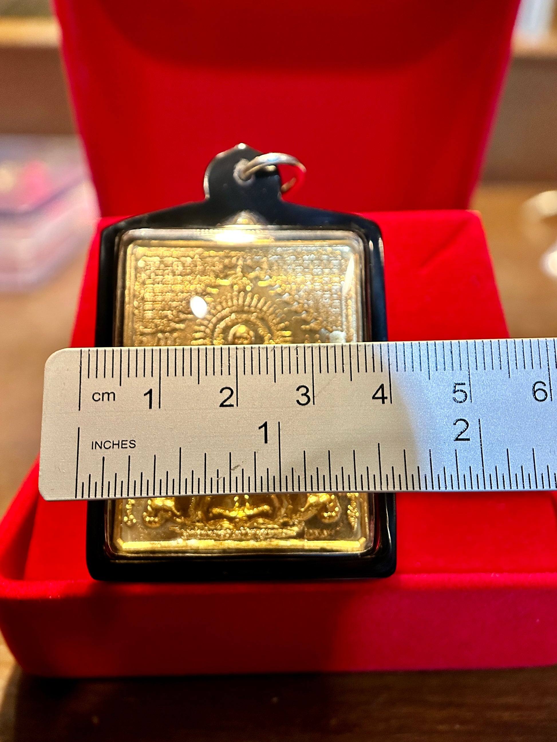 This stunning dual-sided Thai amulet features sacred imagery and powerful symbolism: