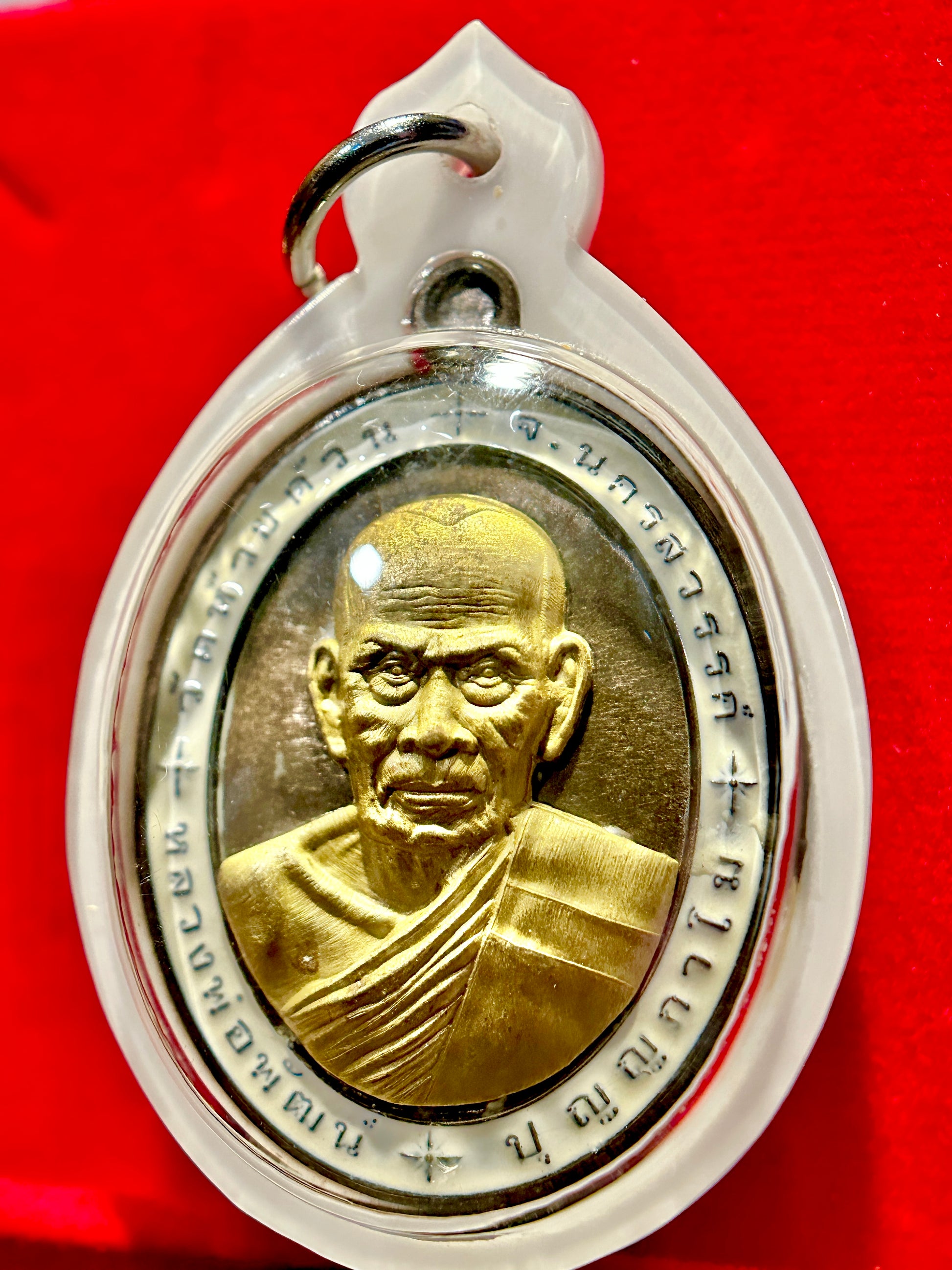 This striking amulet features the revered Luang Phor Phat, known for his deep spiritual knowledge and compassionate presence. Set in a clean white border with black enamel and gold detailing, the amulet exudes a classic and powerful aesthetic. On the reverse, a rare and symbolic horse yantra is surrounded by sacred inscriptions, representing strength, speed, and unwavering forward movement — traits associated with overcoming obstacles and leading with wisdom.
