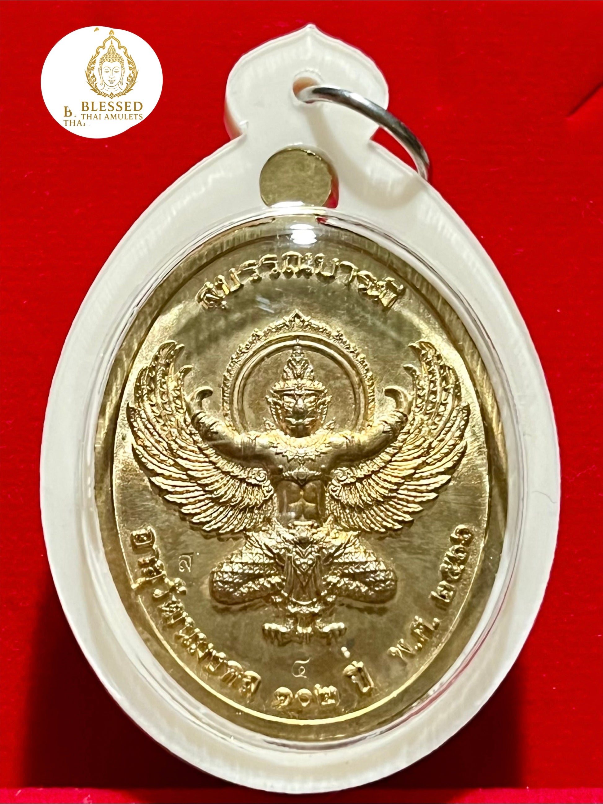 The reverse side features the Garuda (พญาครุฑ), the celestial eagle and national emblem of Thailand, representing royal power, protection, and authority. Garuda is revered for cutting through obstacles and dispelling negative forces.