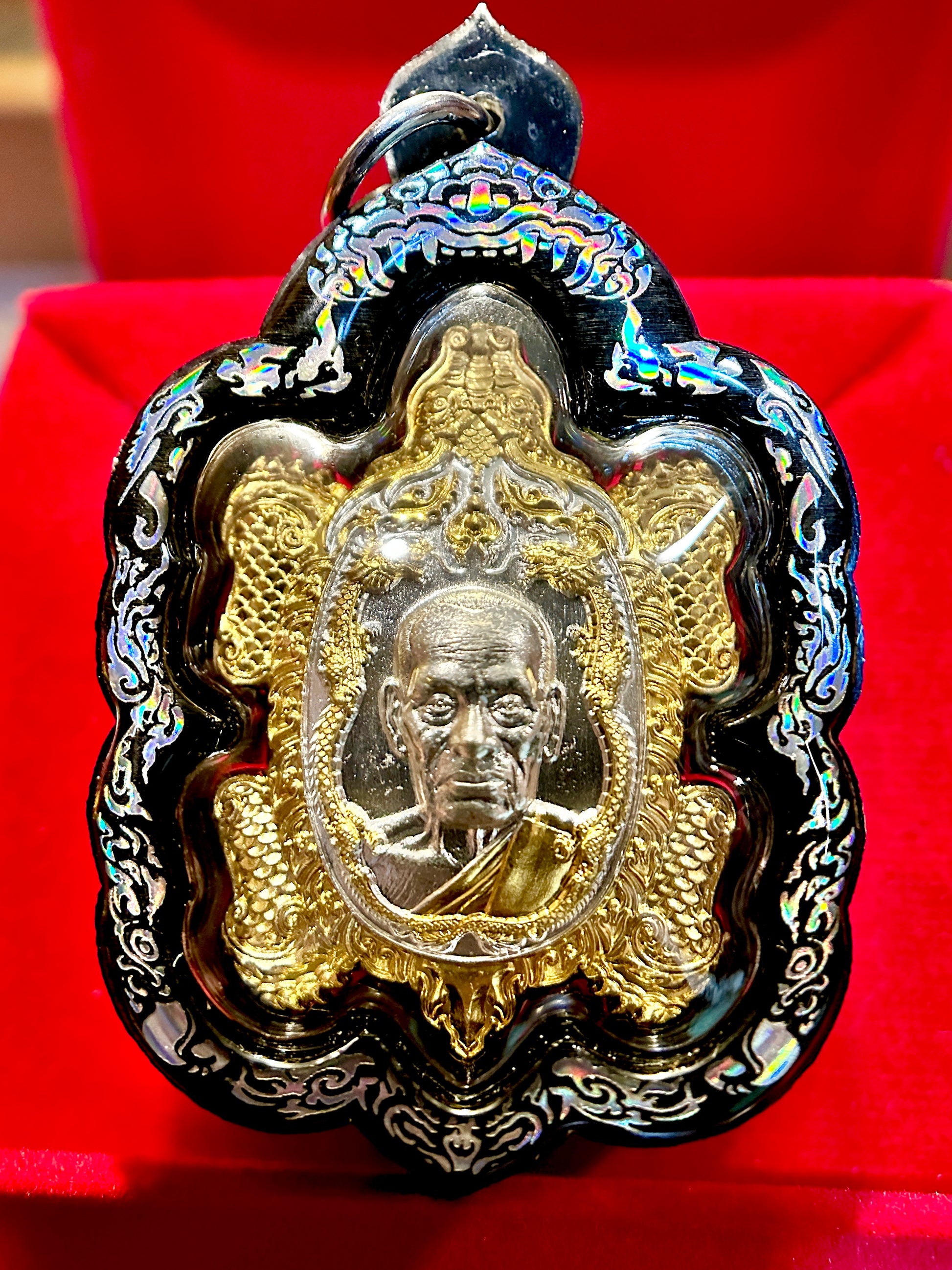 This powerful amulet honors Luang Phor Phat (หลวงพ่อพัฒน์ ปุณฺญกาโม) of Wat Huai Duan, revered for his blessings of protection, prosperity, and spiritual strength.