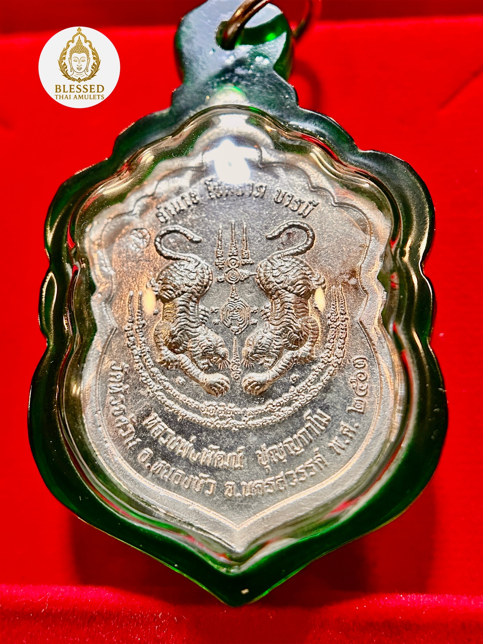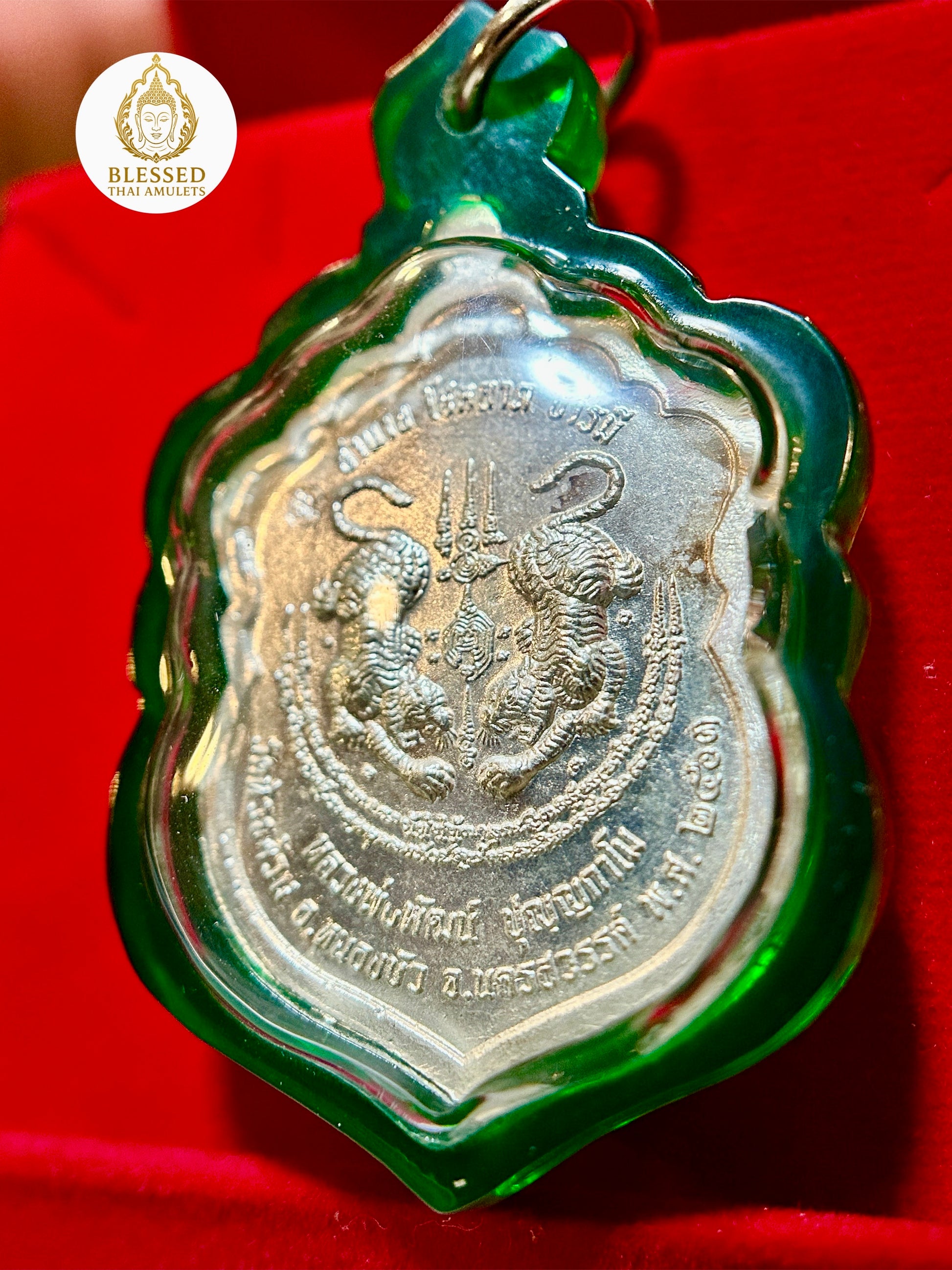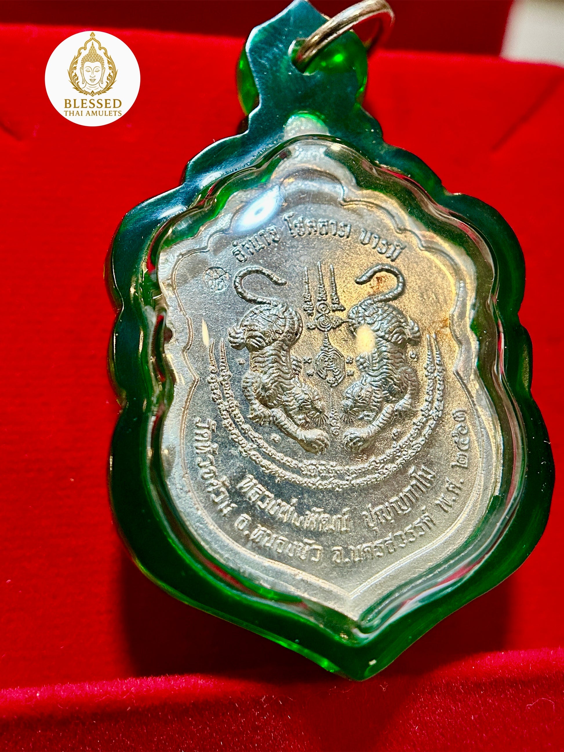 Luang Phor Phat Twin Tigers Amulet (Emerald/Silver)