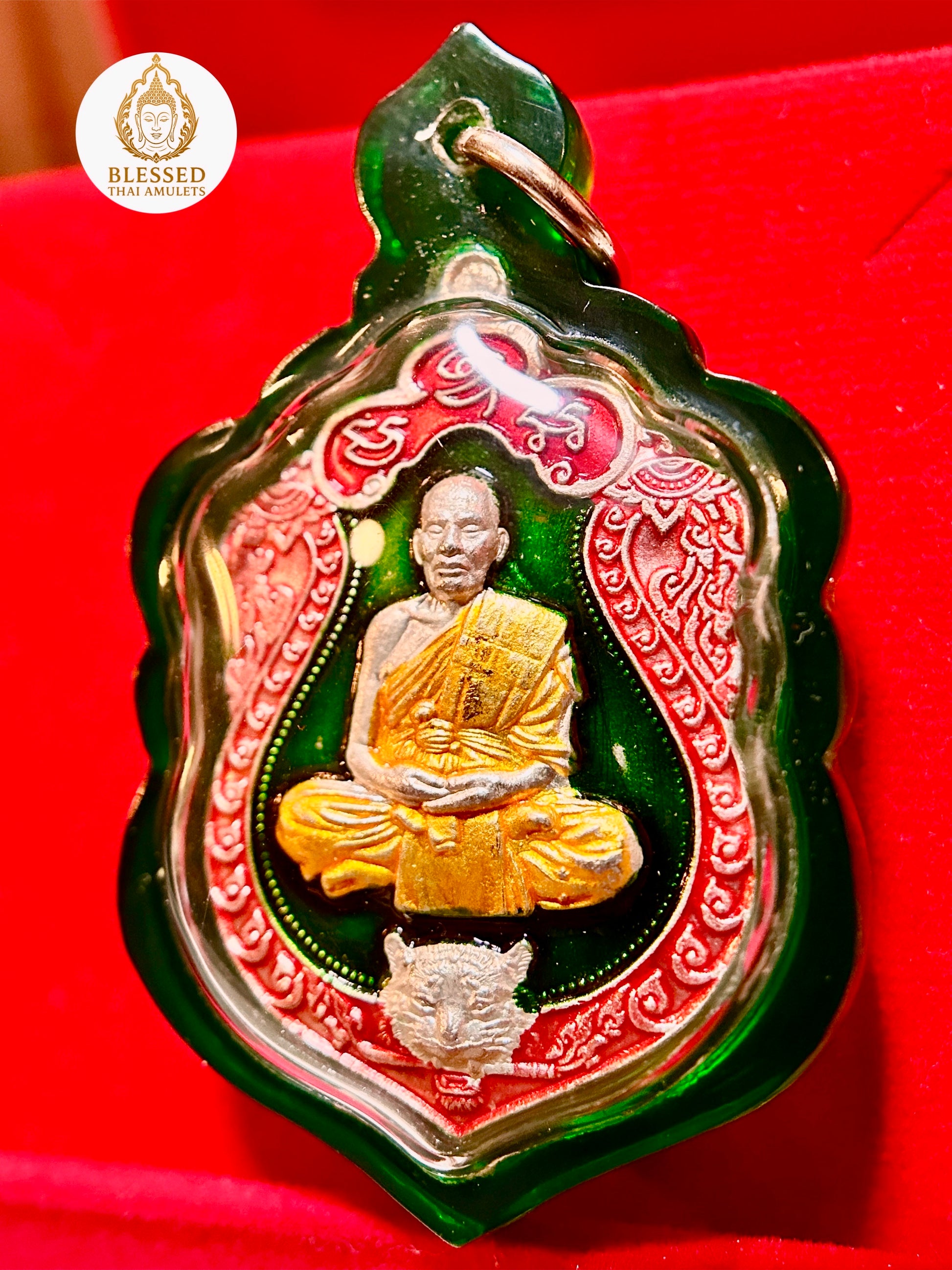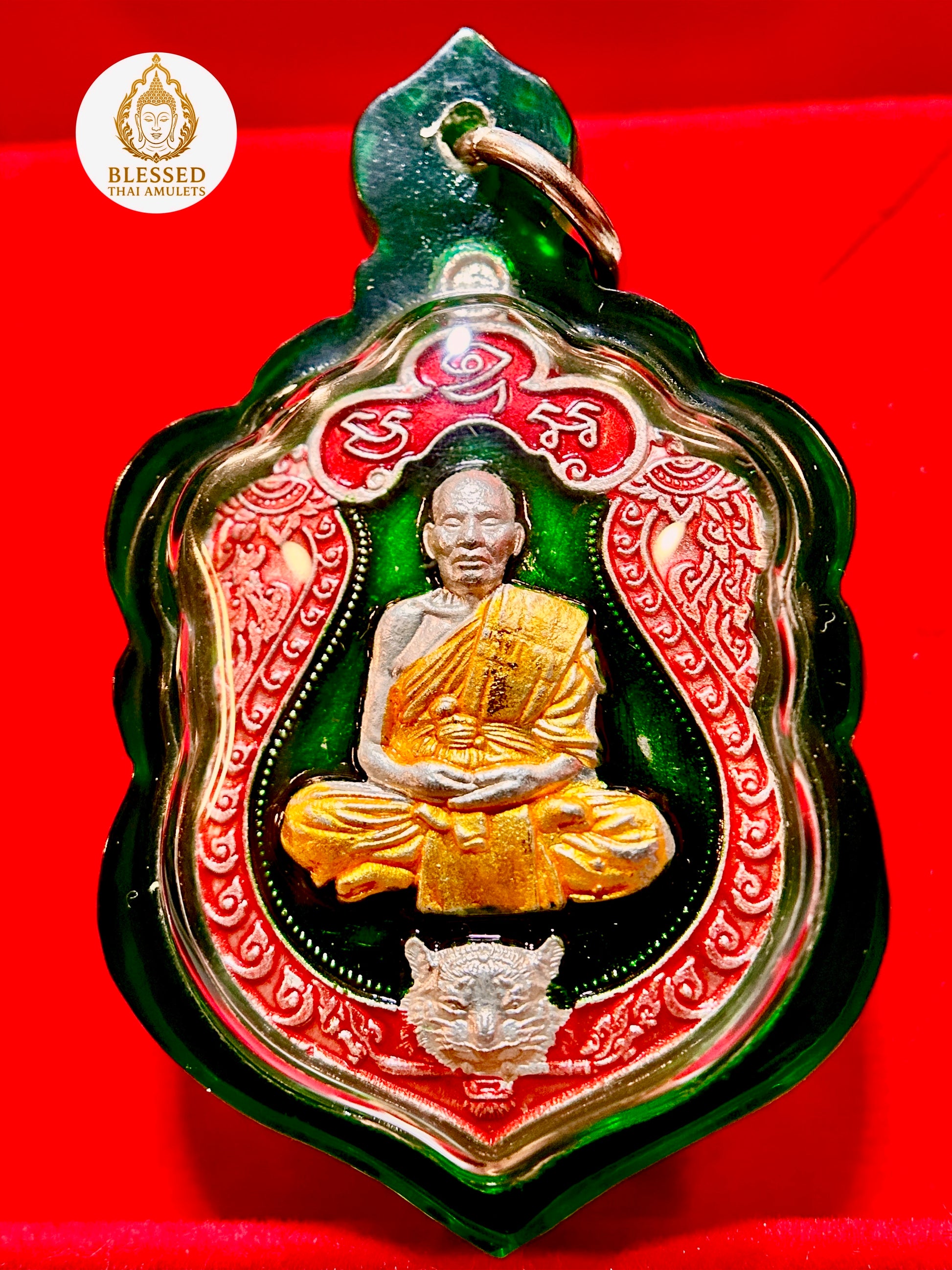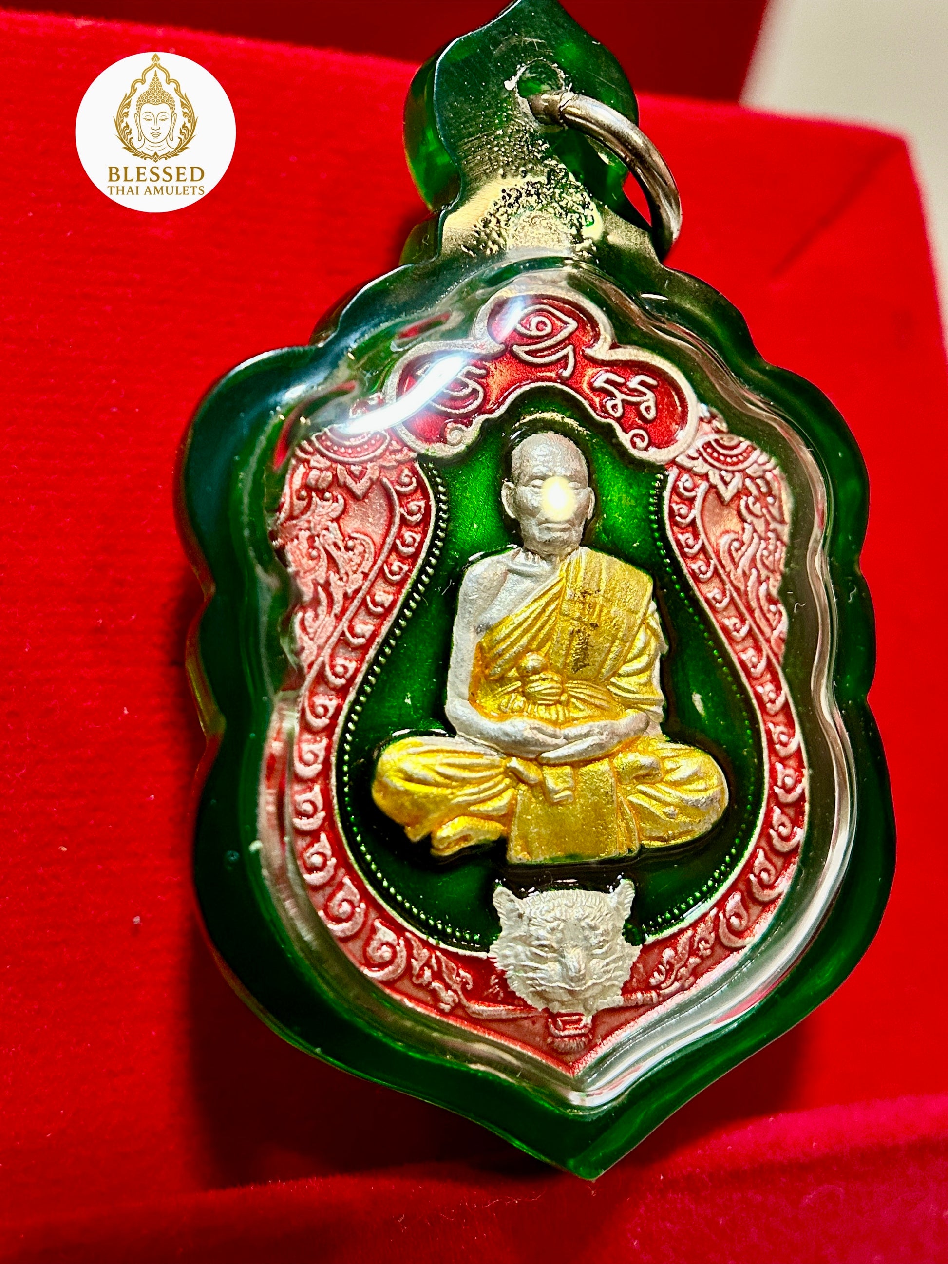 Luang Phor Phat Twin Tigers Amulet (Emerald/Silver)