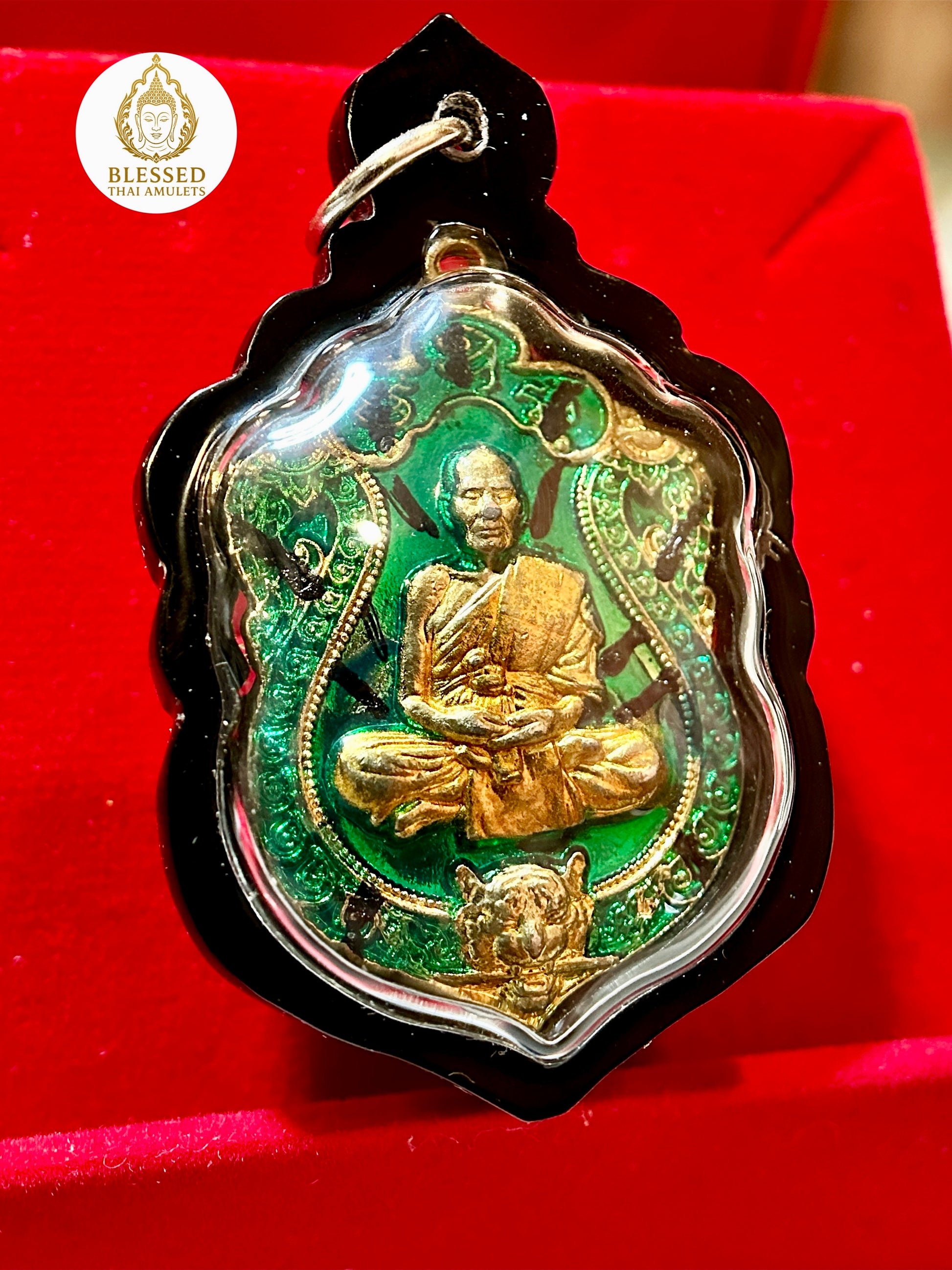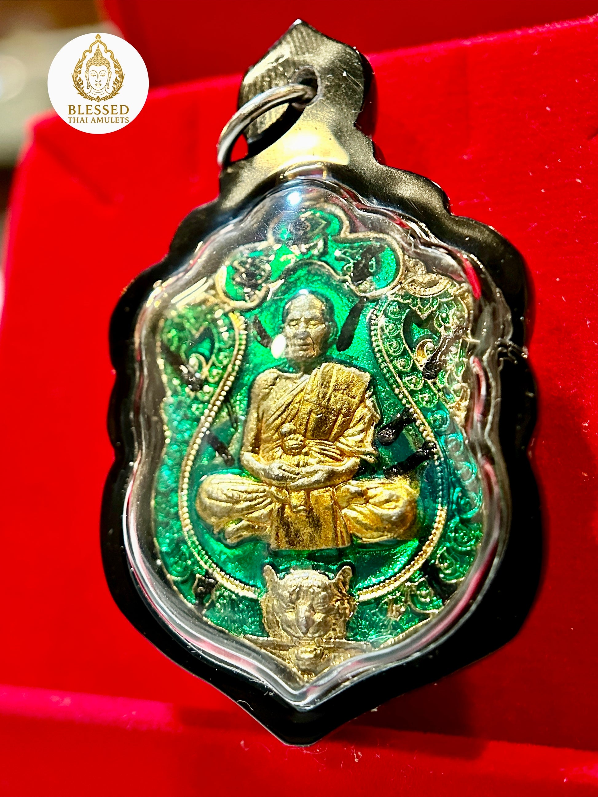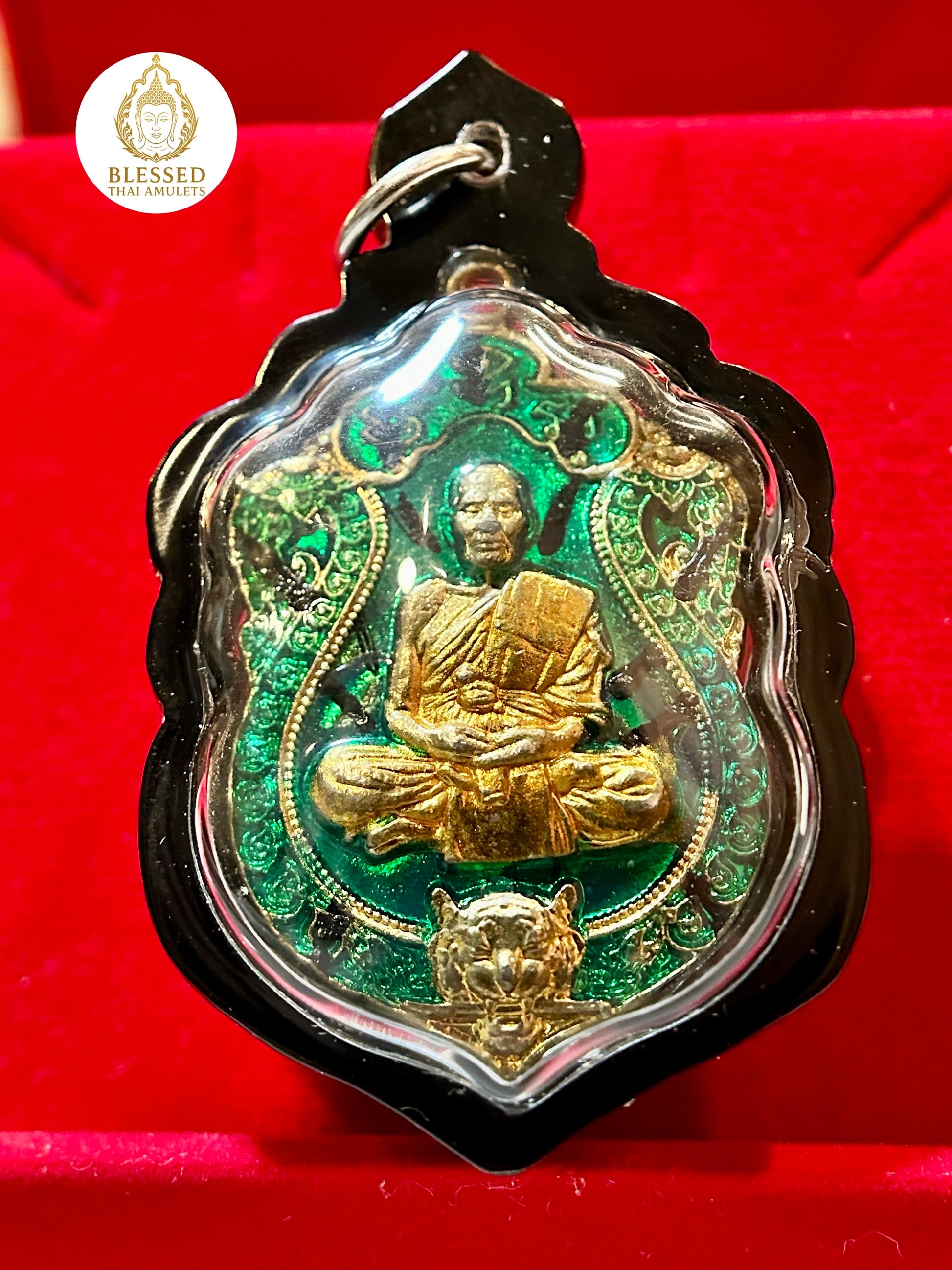 Luang Phor Phat Twin Tigers Amulet (Green/Gold)
