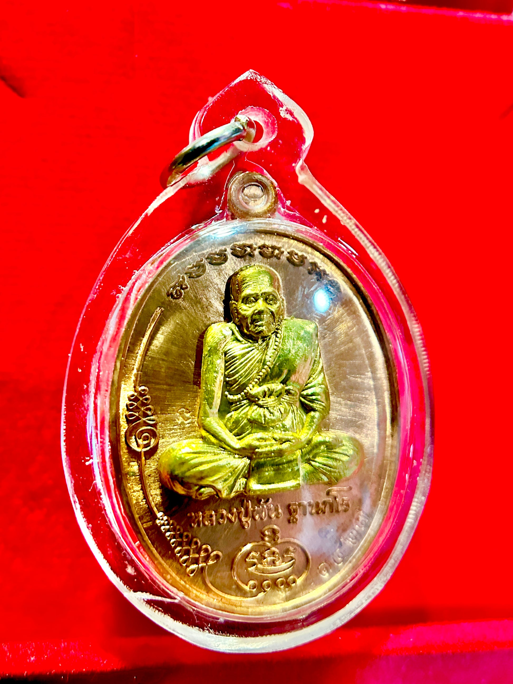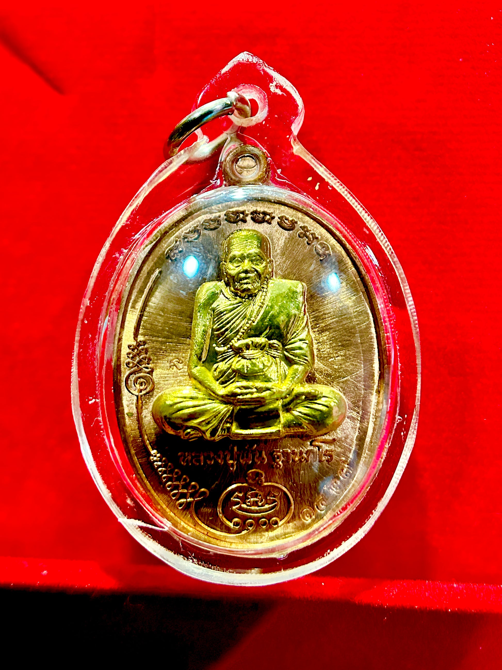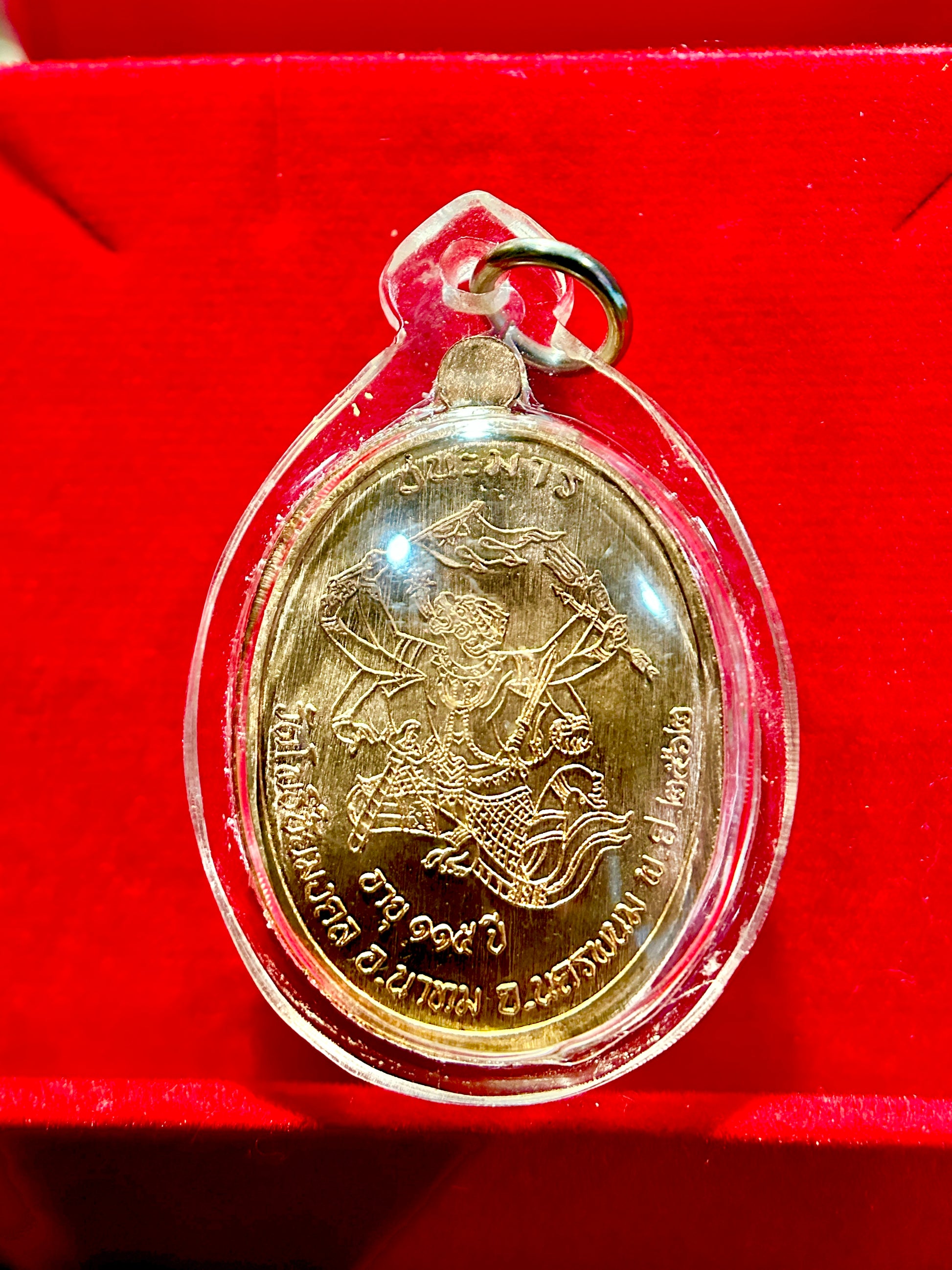 This powerful dual-sided amulet honors Luang Pu Tim of Wat Phra Khao, one of the most respected monks in Central Thailand, known for his deep meditative practice and sacred consecration of protective talismans. Cast in a stunning two-tone finish, the front features a serene depiction of Luang Pu Tim in full meditation, exuding calmness, wisdom, and metta (loving-kindness).