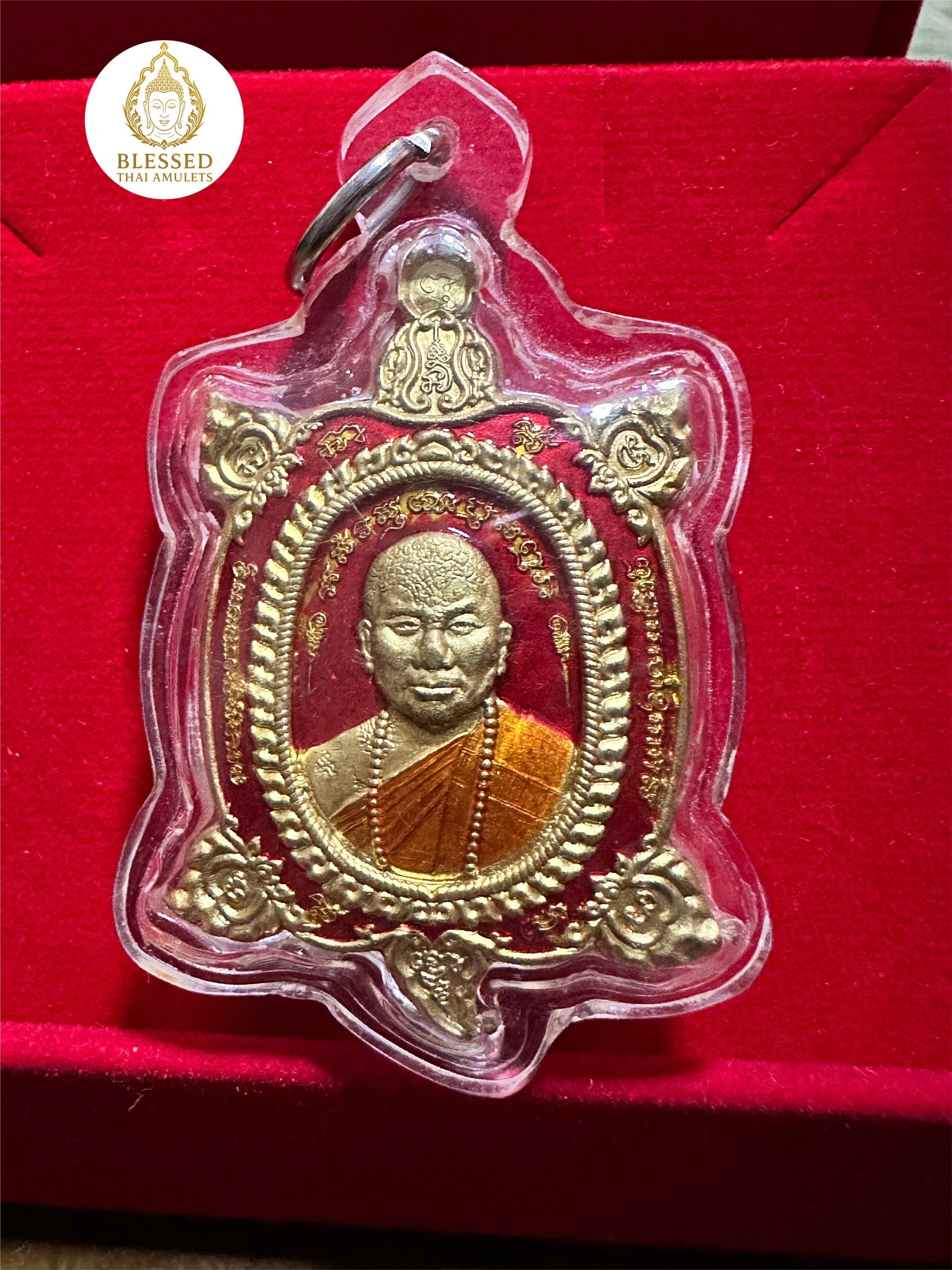 Luang Pu Udomsap Turtle Amulet (Red/Gold)