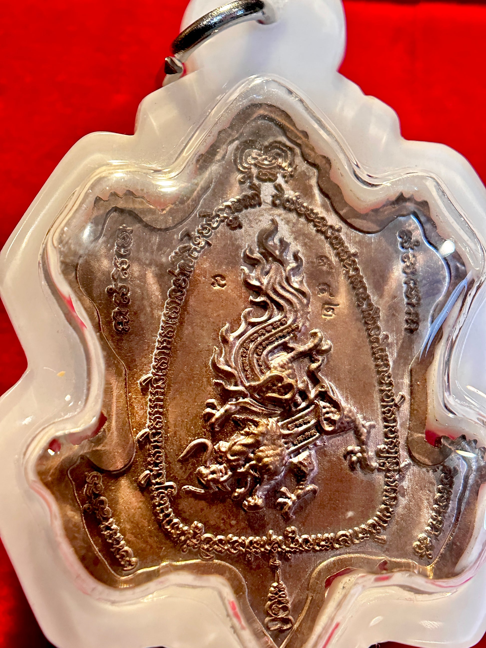 🐉 The reverse side showcases a powerful mythical dragon, symbolizing strength, transformation, and fierce protection in Thai and Asian traditions. Together, the monk and dragon create a spiritually balanced amulet that supports both inner peace and outer power.