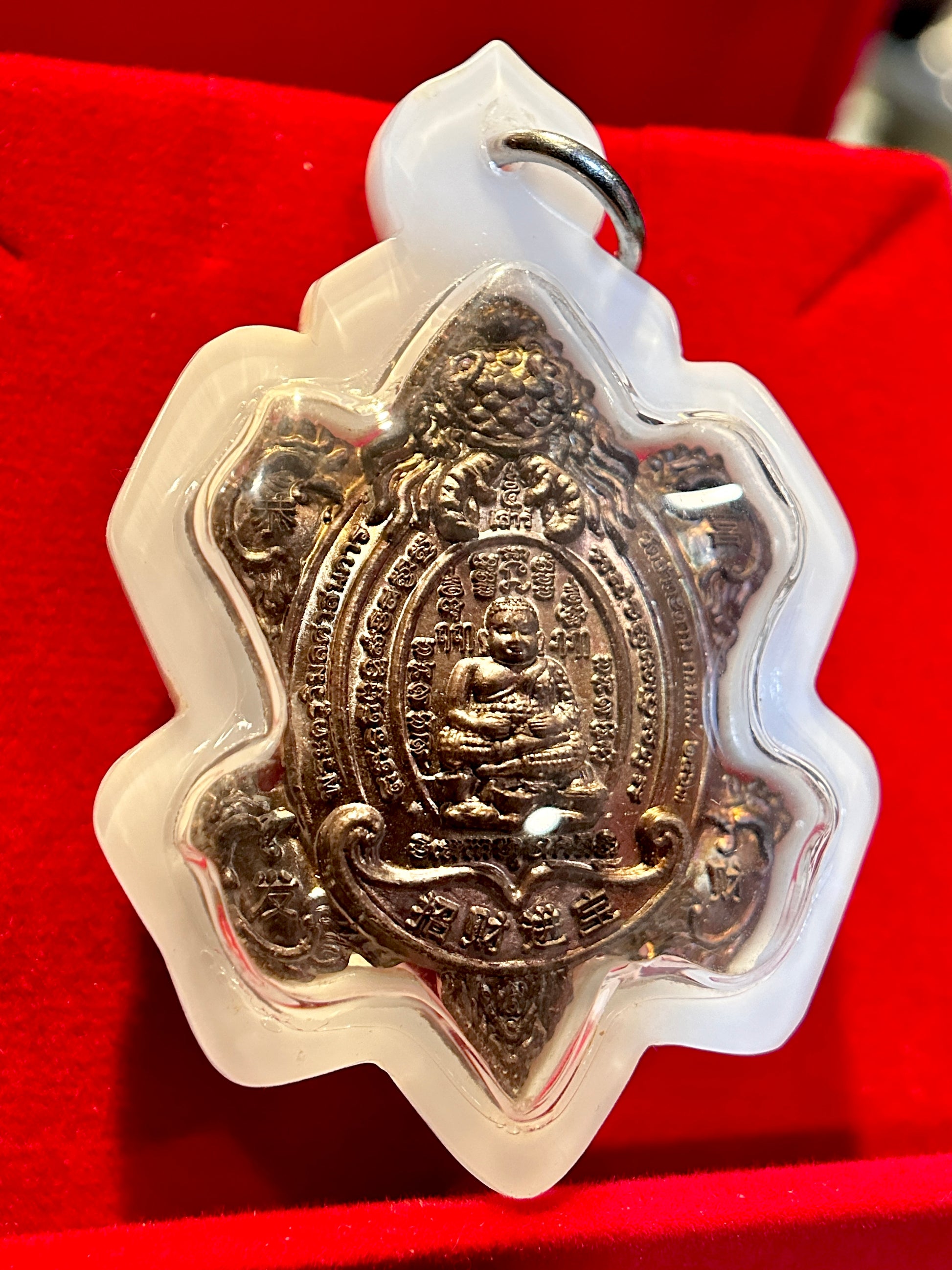 📿🇹🇭 From Blessed Thai Amulets, this sacred talisman features a highly revered Thai monk seated in serene meditation on the front, surrounded by protective yantra inscriptions. Representing abundance, safe travels, and spiritual guidance, this monk is widely respected for drawing in fortune and shielding the wearer from harm.