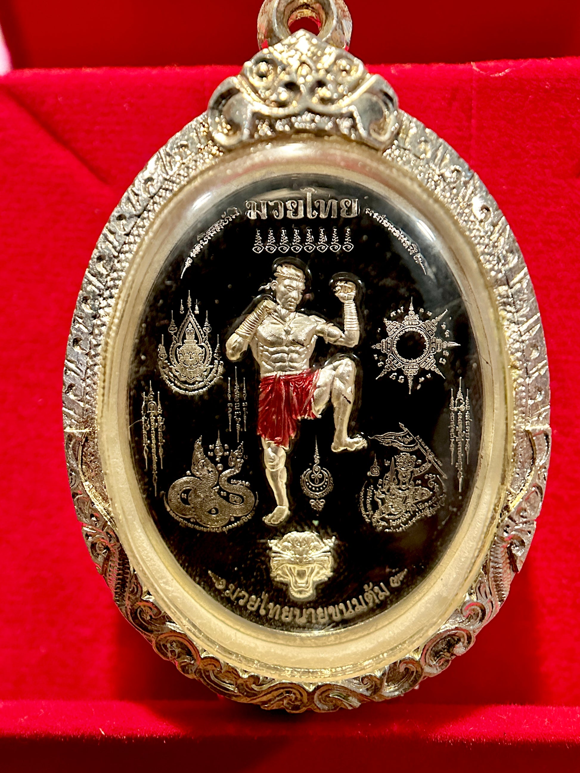 Encased in an ornate silver frame, this amulet embodies the balance of beauty, symbolism, and spiritual power — making it a cherished piece for fighters, athletes, practitioners, and all who walk the warrior’s path.