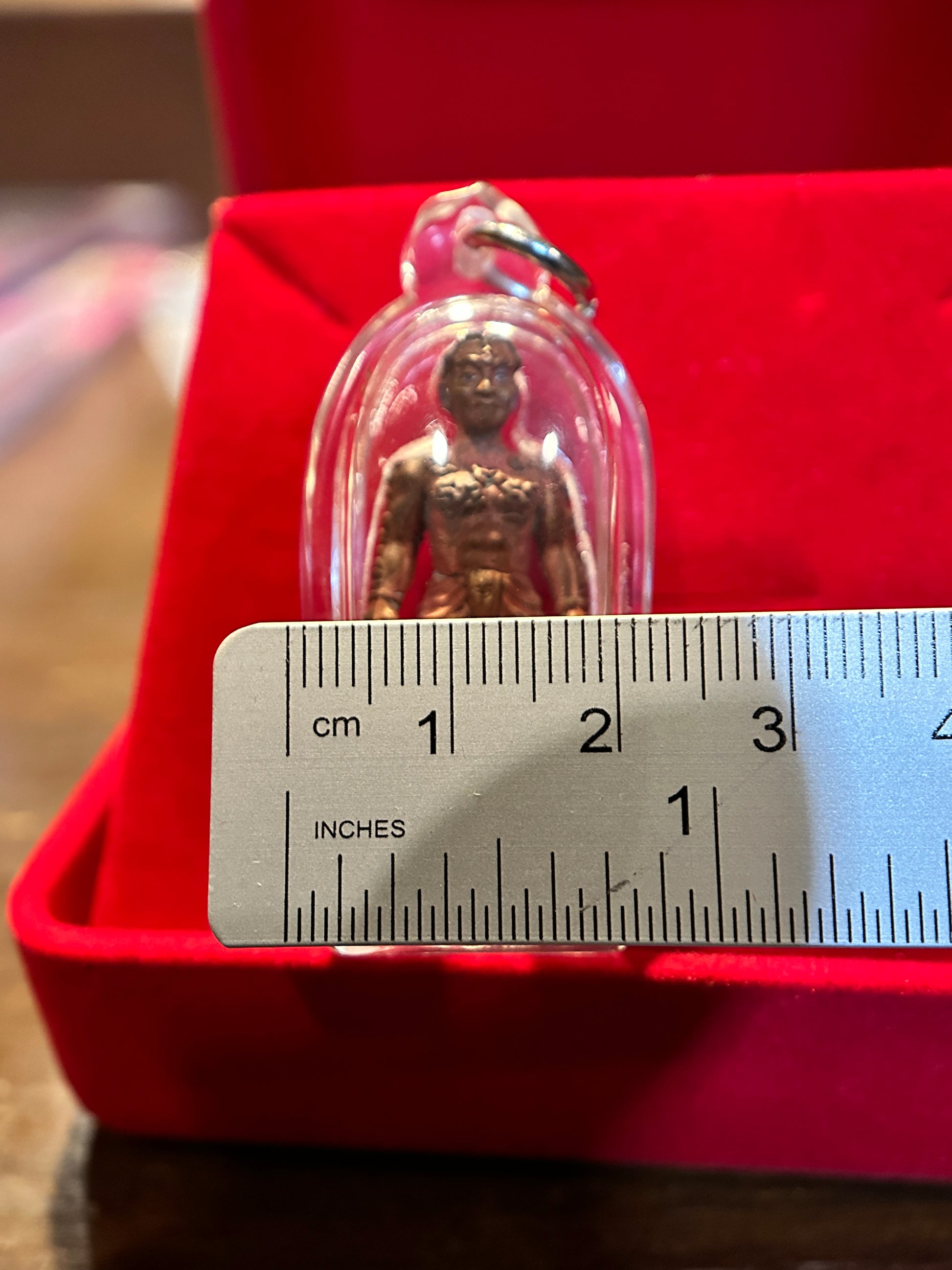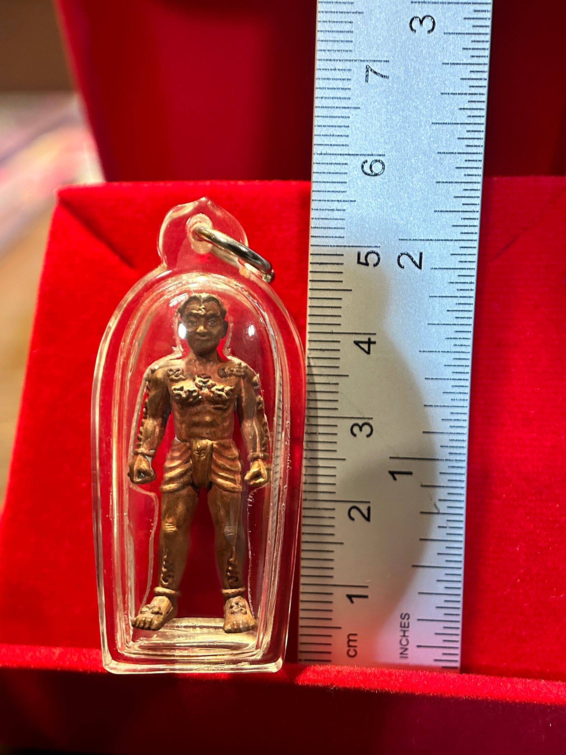 Channel the unyielding courage and warrior spirit of Thailand’s most legendary fighter with this Nai Khanom Tom amulet. Cast in powerful black metal and adorned with sacred yantra inscriptions, this amulet embodies the essence of Muay Thai tradition—strength, protection, and indomitable will. Ideal for fighters, athletes, and those seeking to overcome obstacles with bravery and discipline.