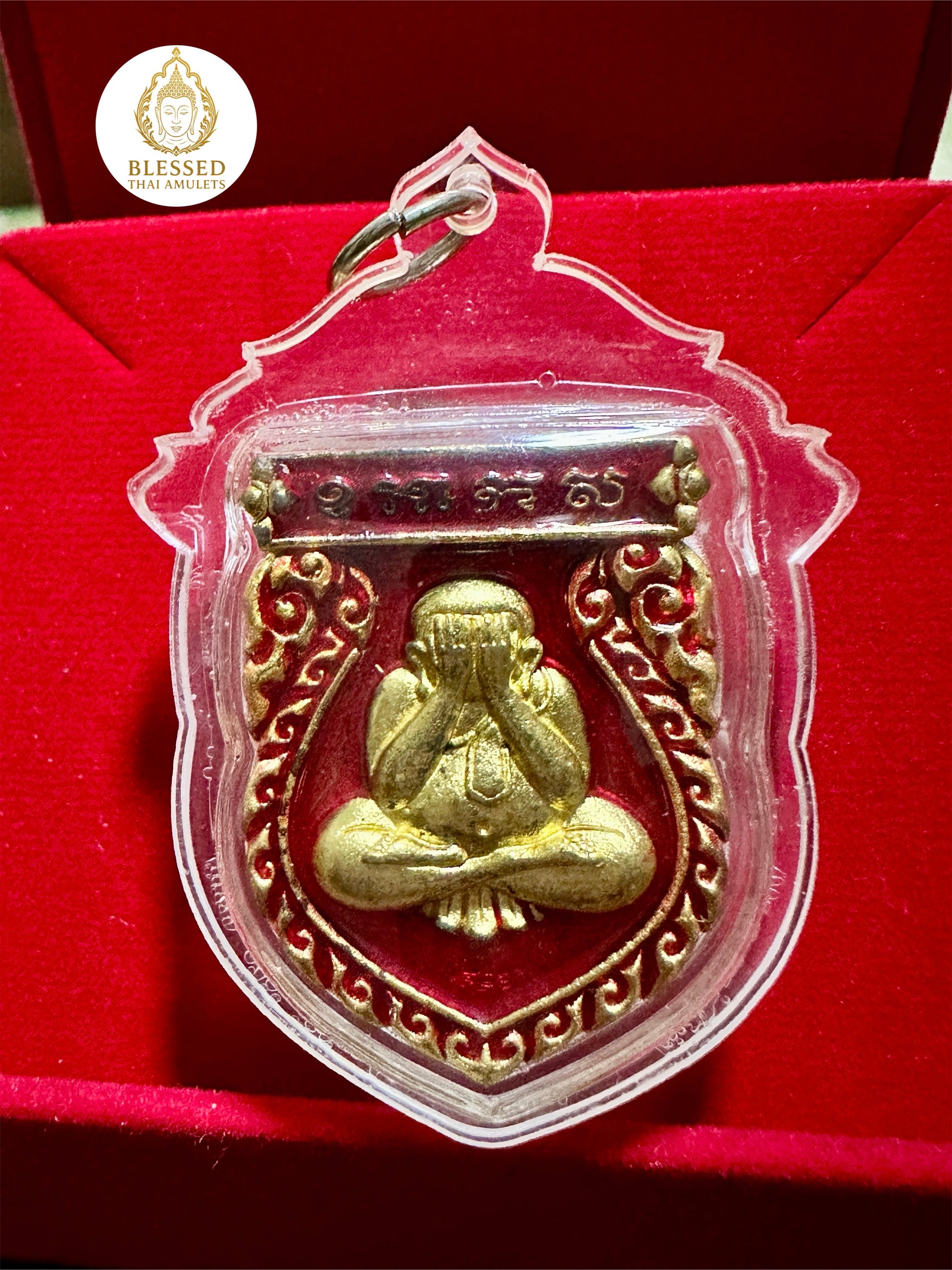 This powerful dual-sided Thai amulet features Phra Pidta—the iconic Buddha figure covering his face—symbolizing protection from negative energy, distraction, and evil. Revered for attracting wealth and guarding spiritual clarity, Phra Pidta is believed to shut out all harm while sealing in blessings.