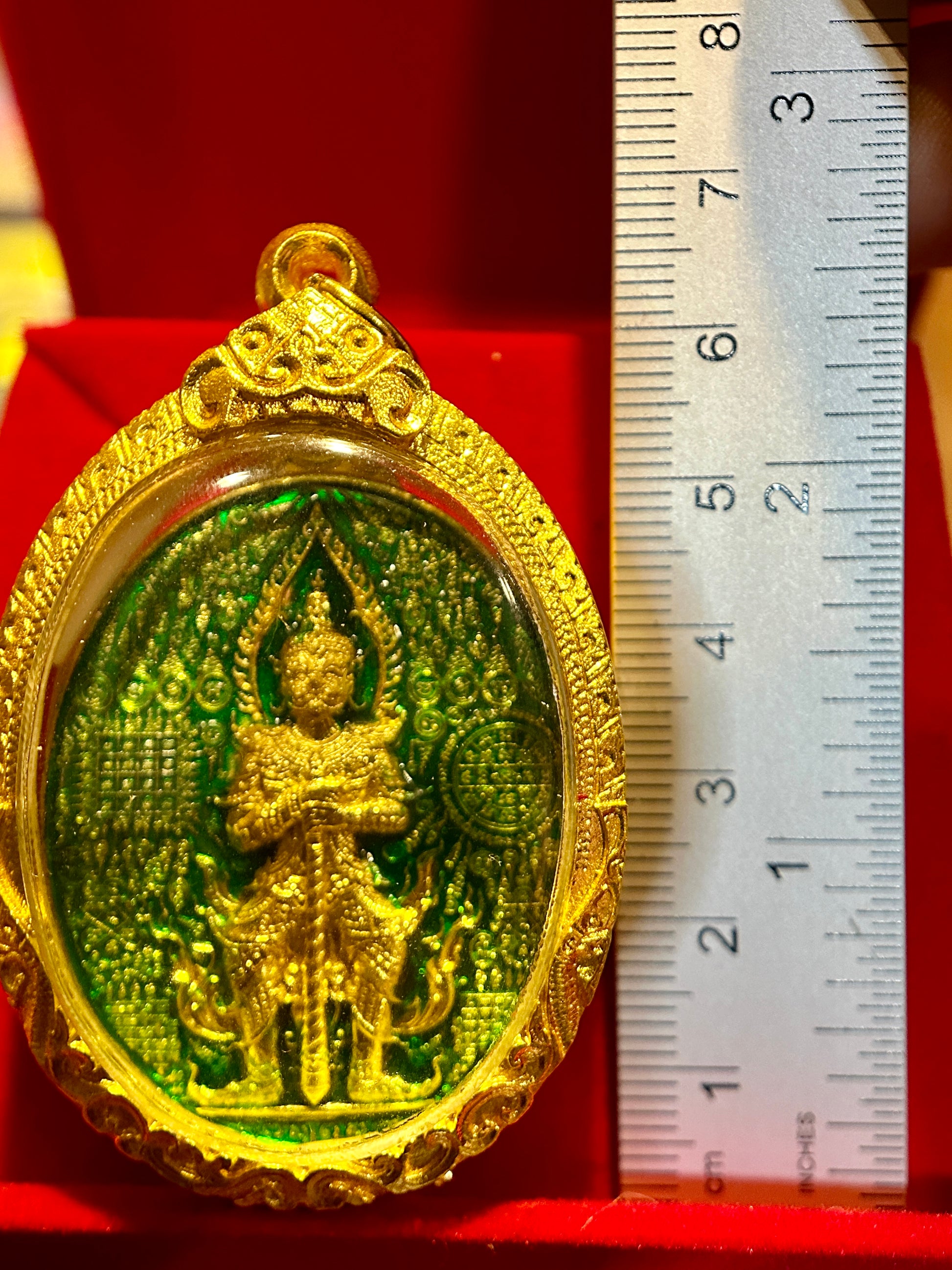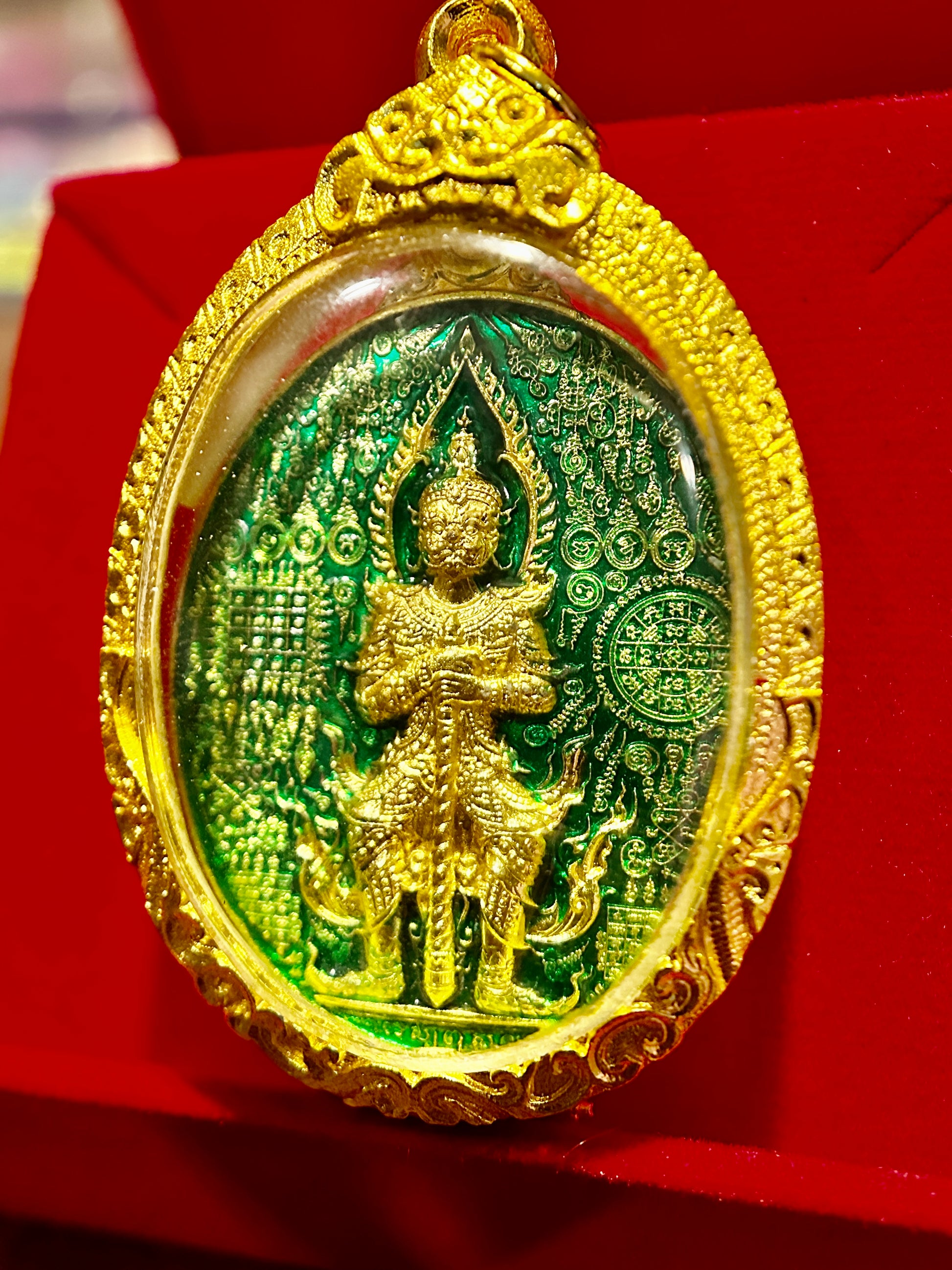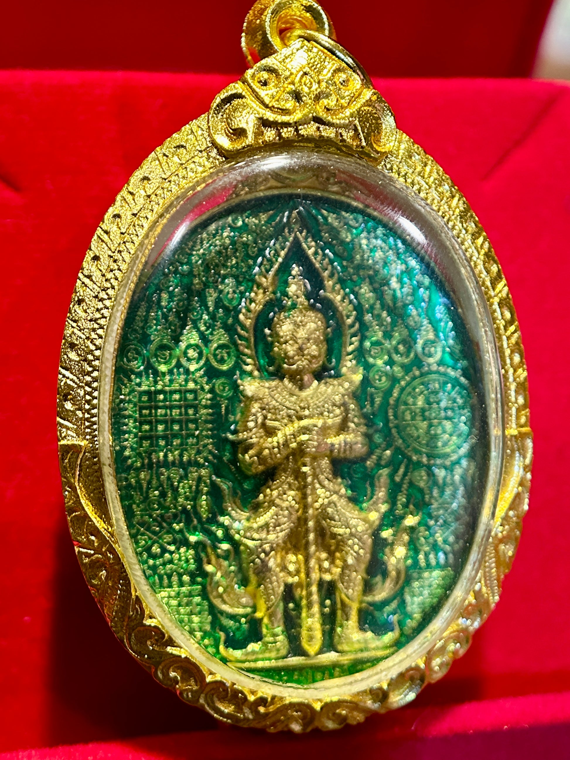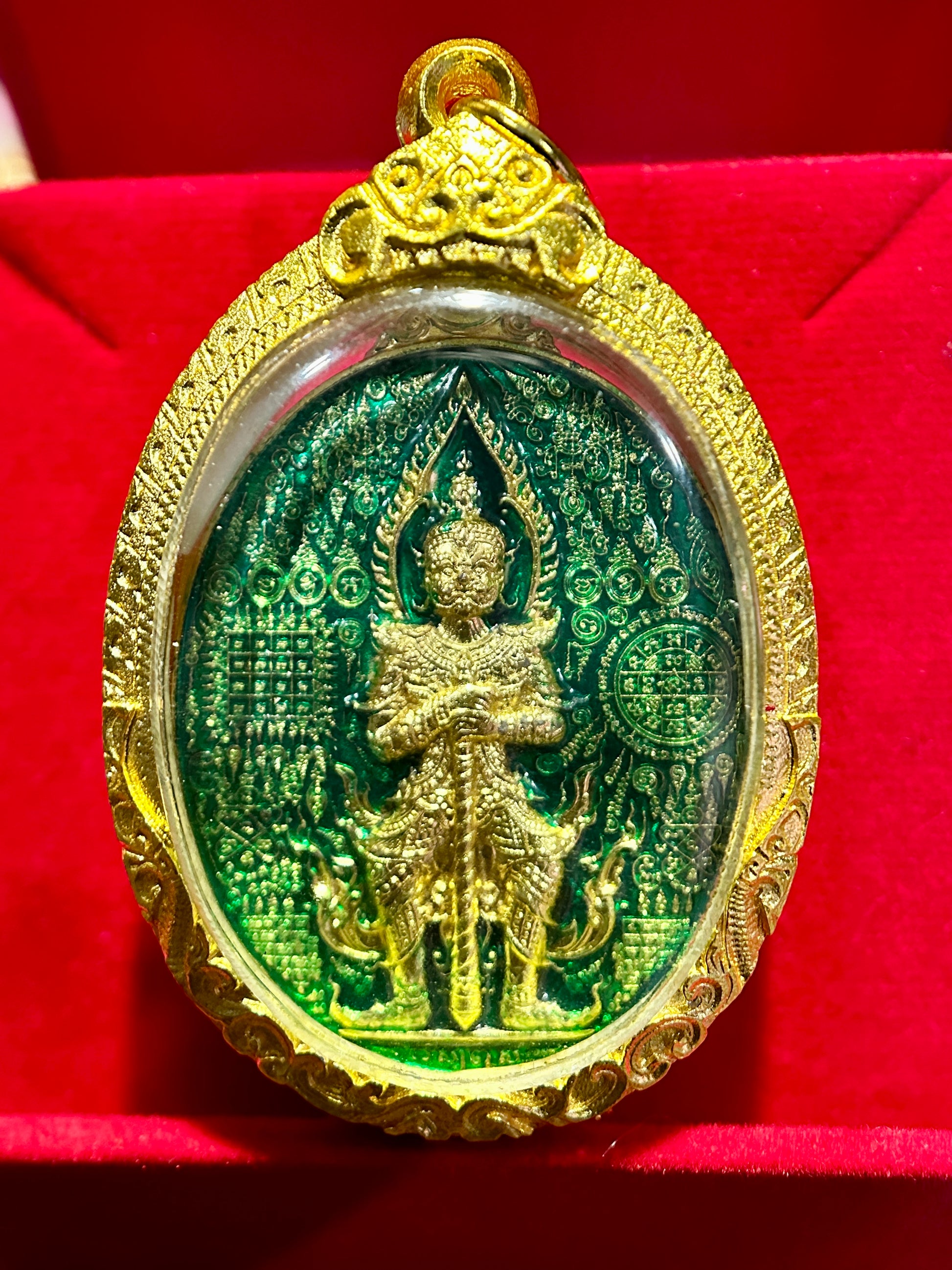 Tao Wessuwan Double-Sided (Green/Gold) Amulet – Emerald Enamel & Full Gold Protection
