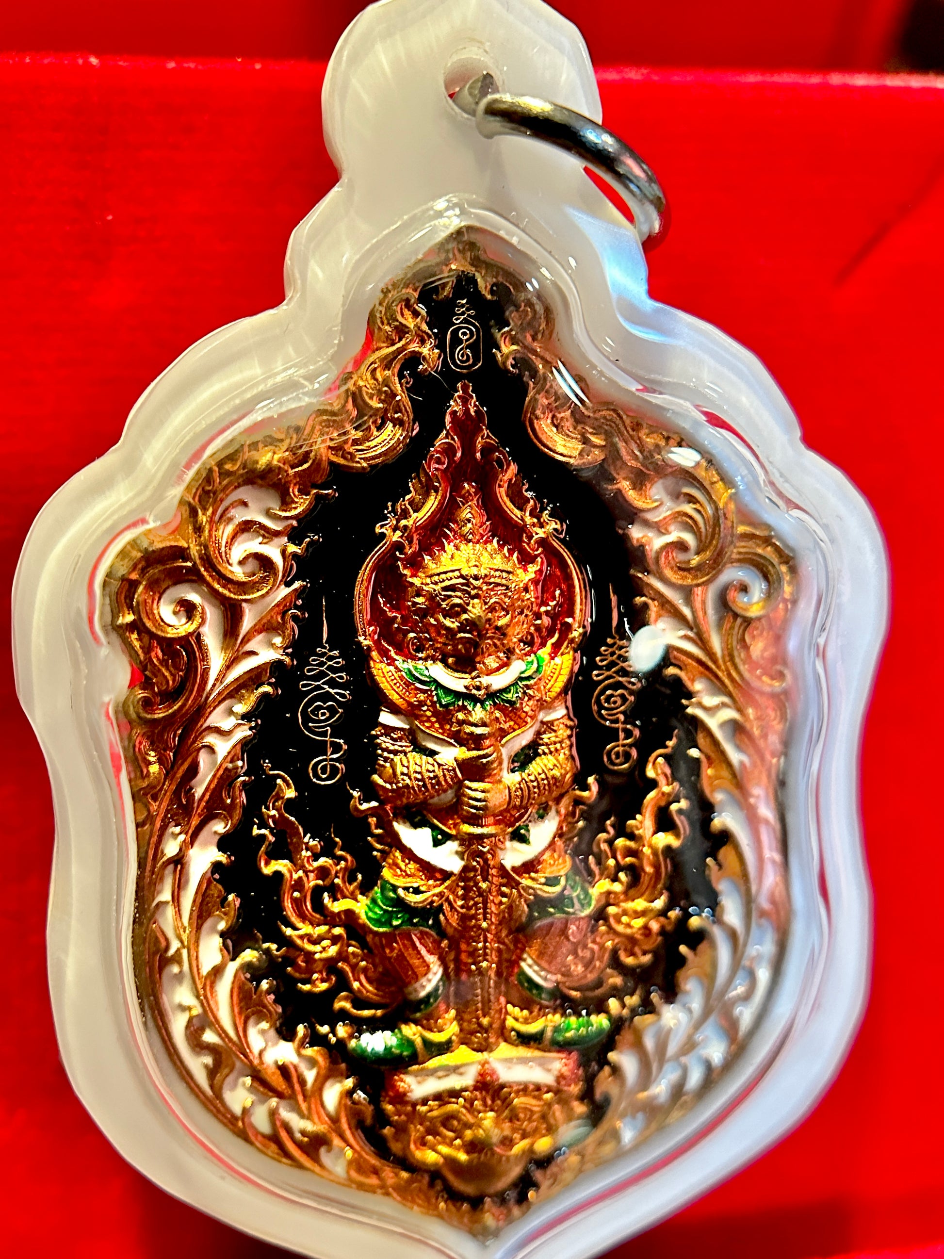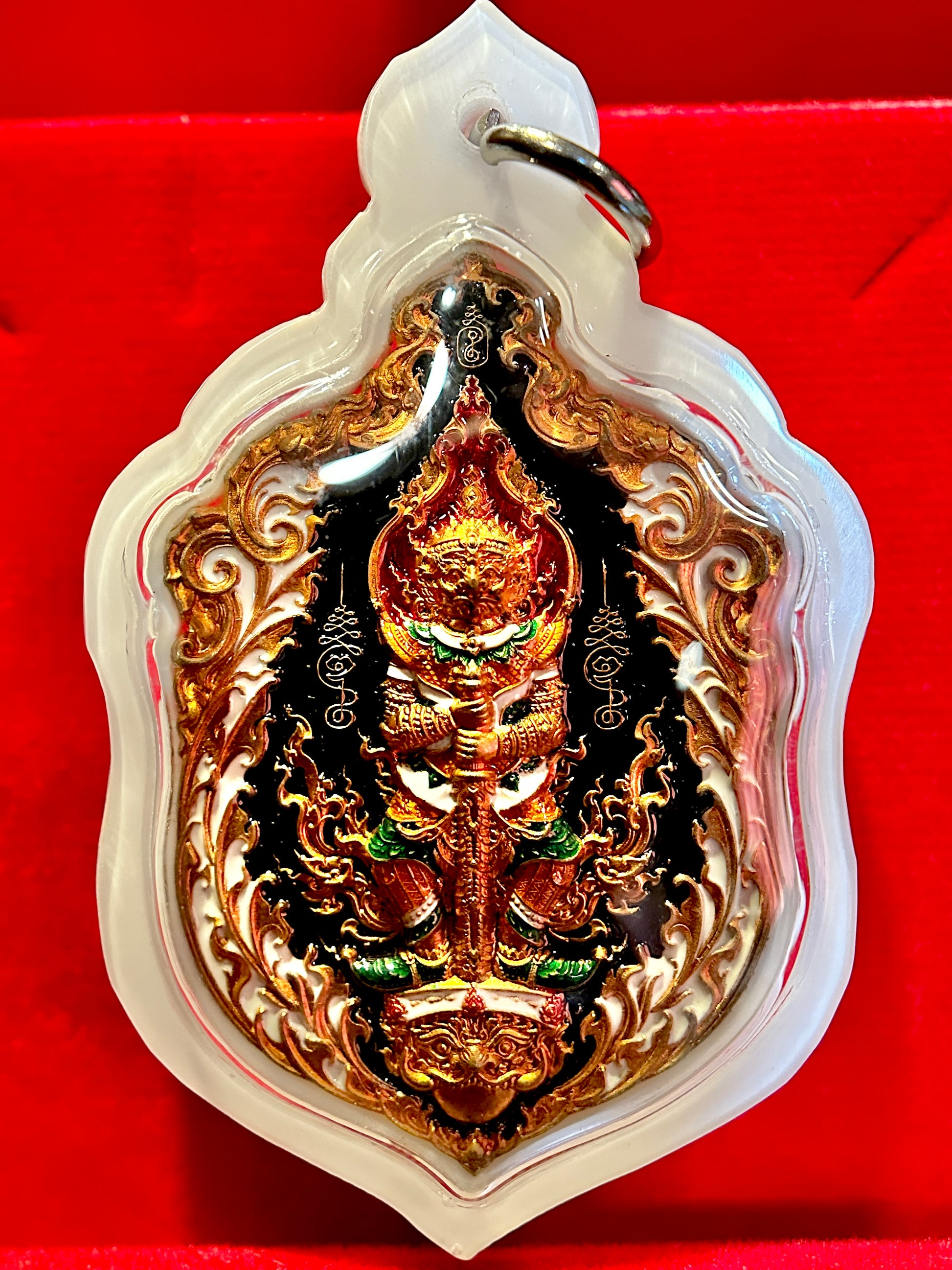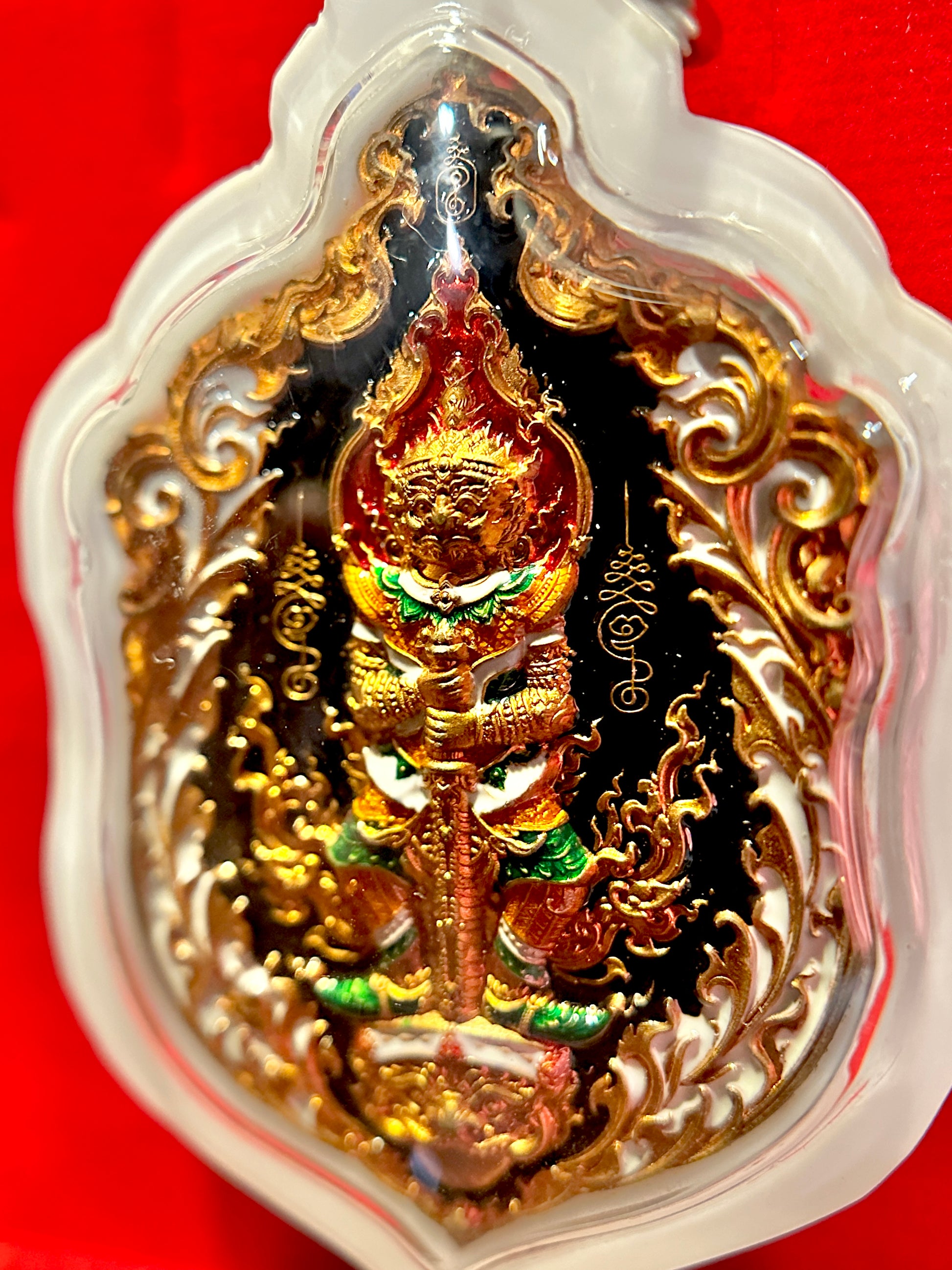 Set against a bold black enamel background, this version brings the gold and red detailing into powerful contrast. The amulet radiates intensity, with Tao Wessuwan symbolizing immovable power while Garuda bursts forth as a fiery force of liberation. Black is tied to protection from dark energies, courage, and commanding presence.