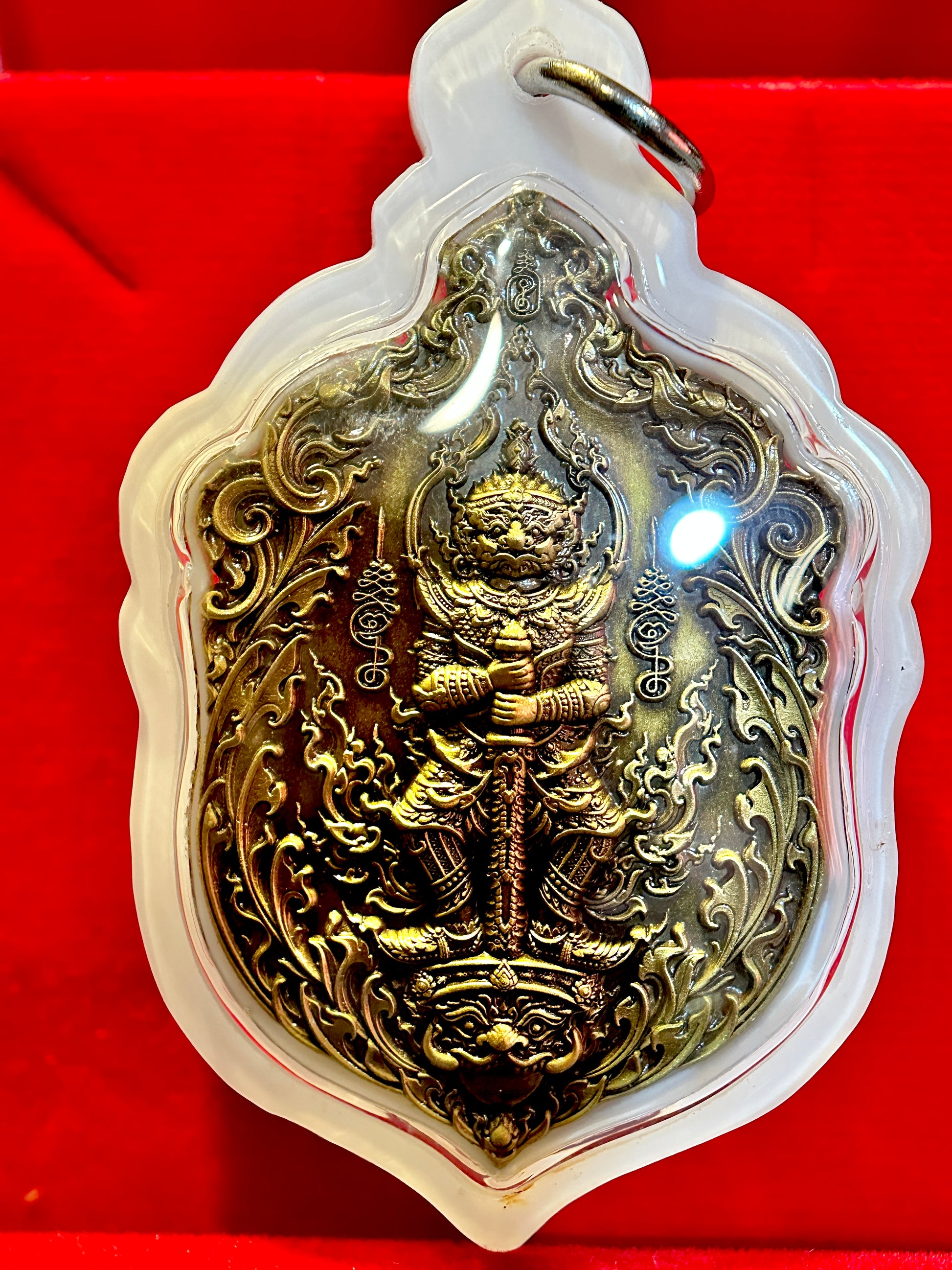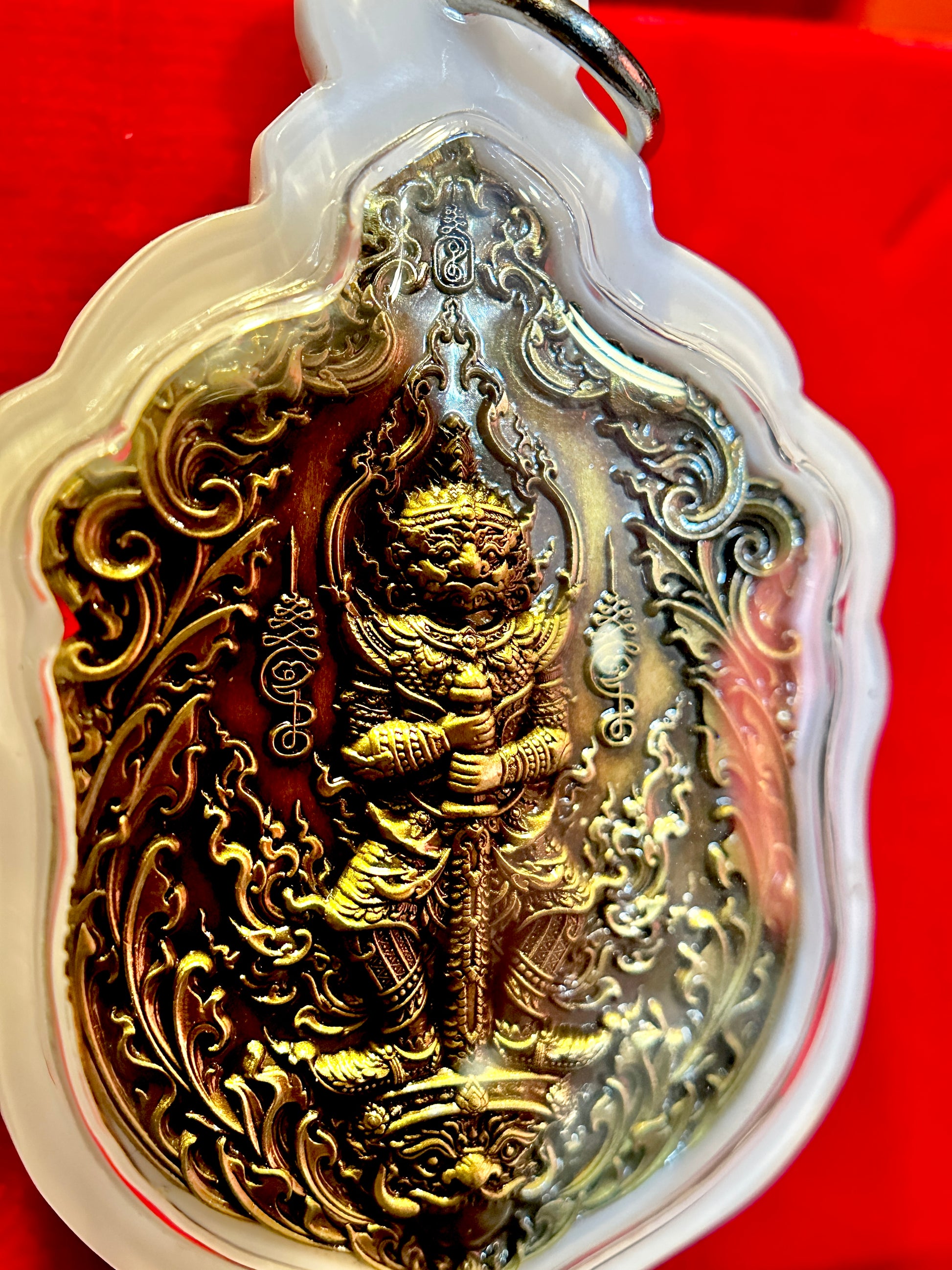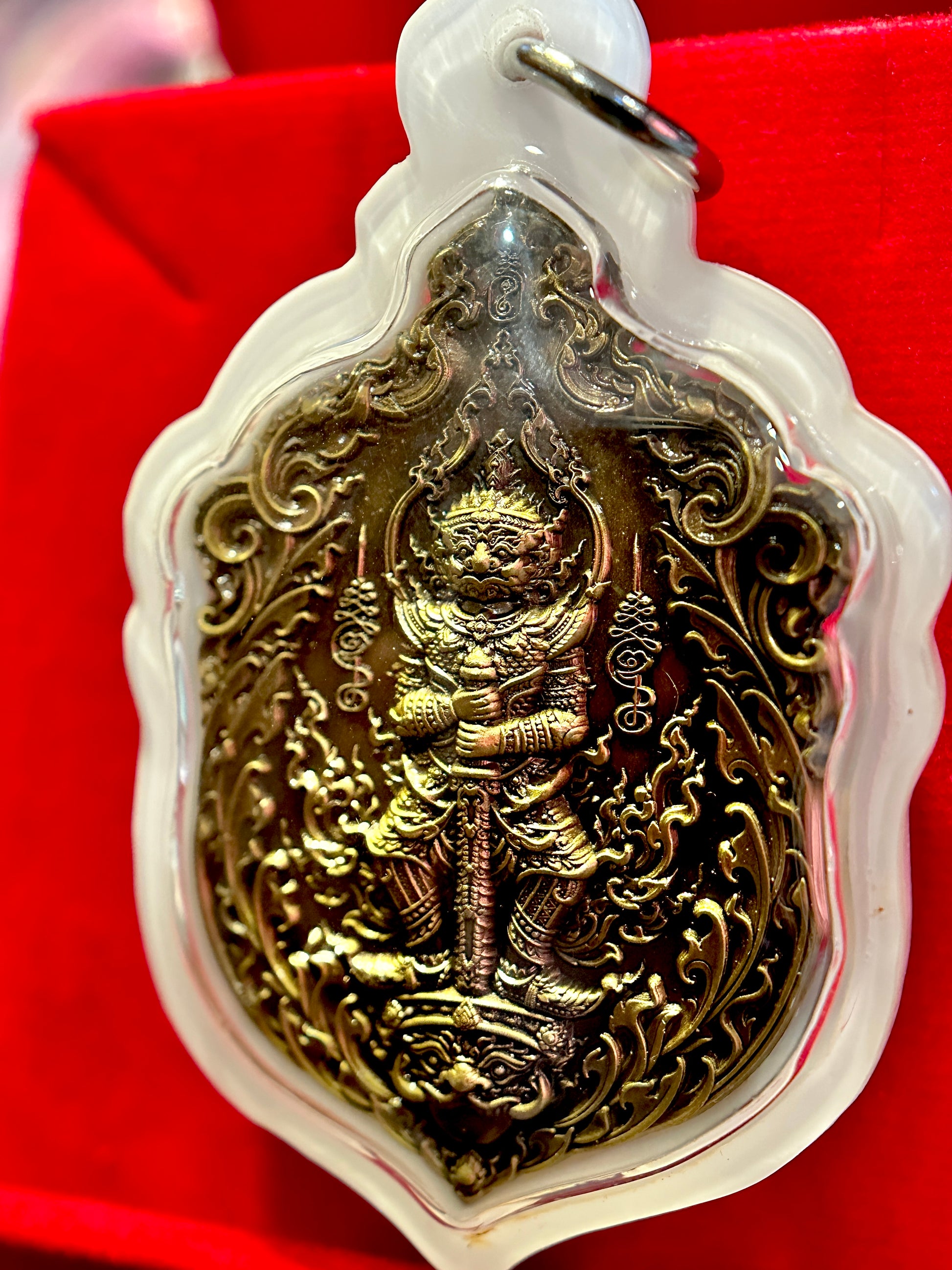 A more subdued brushed gold finish that emphasizes the depth of the flame patterns. Tao Wessuwan’s towering presence and Garuda’s battle stance are rendered in dark metallic tones, giving this amulet a mystical aura of authority and grounded protection. Ideal for wearers who value strength, tradition, and resilience.