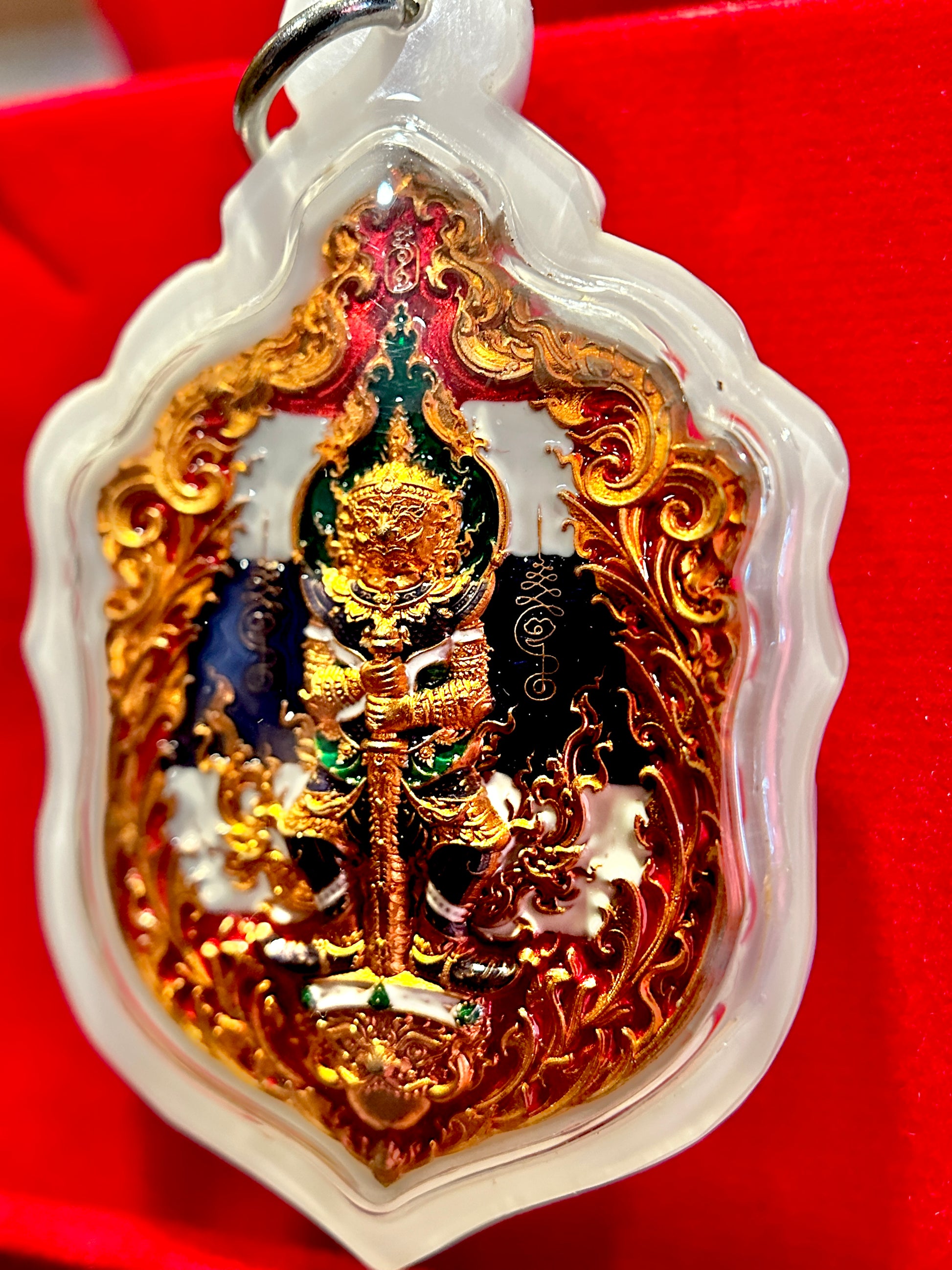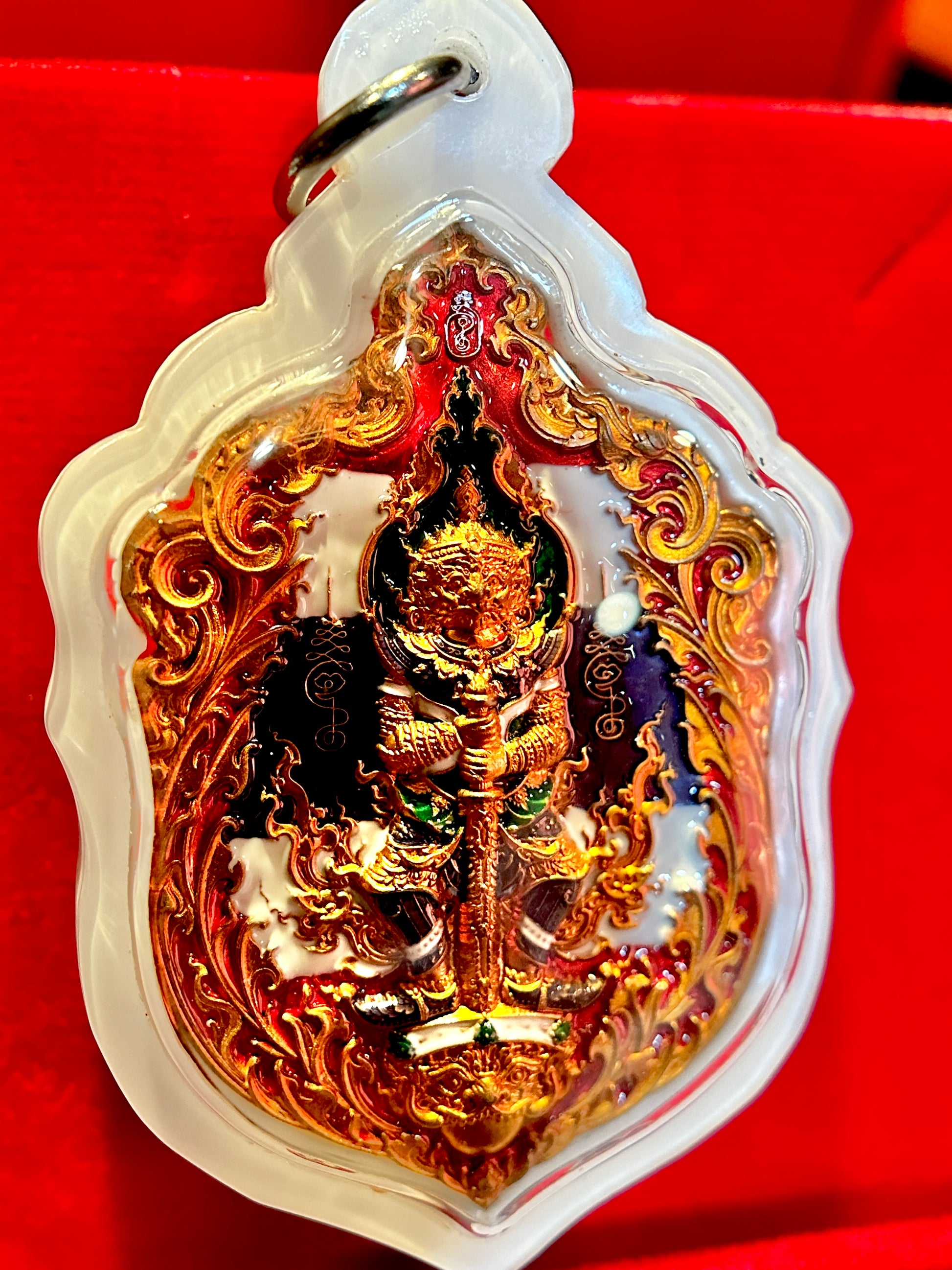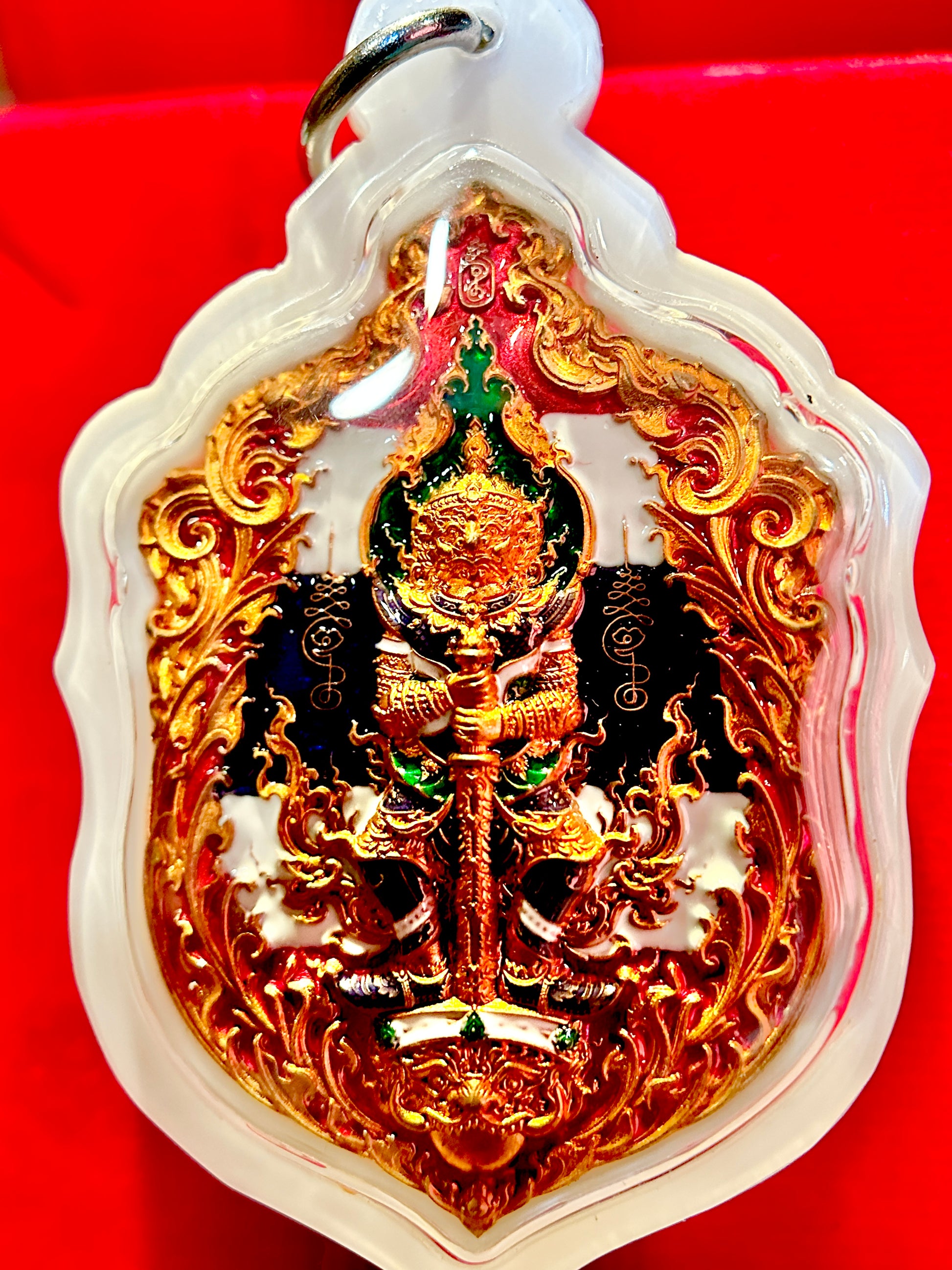 This remarkable edition honors Thailand with the red, white, and blue Thai flag colors incorporated into Tao Wessuwan’s fiery backdrop and woven into Garuda’s powerful wings on the reverse. The national colors symbolize protection (red), purity (white), and stability (blue), amplifying the amulet’s energy with patriotic and spiritual resonance.