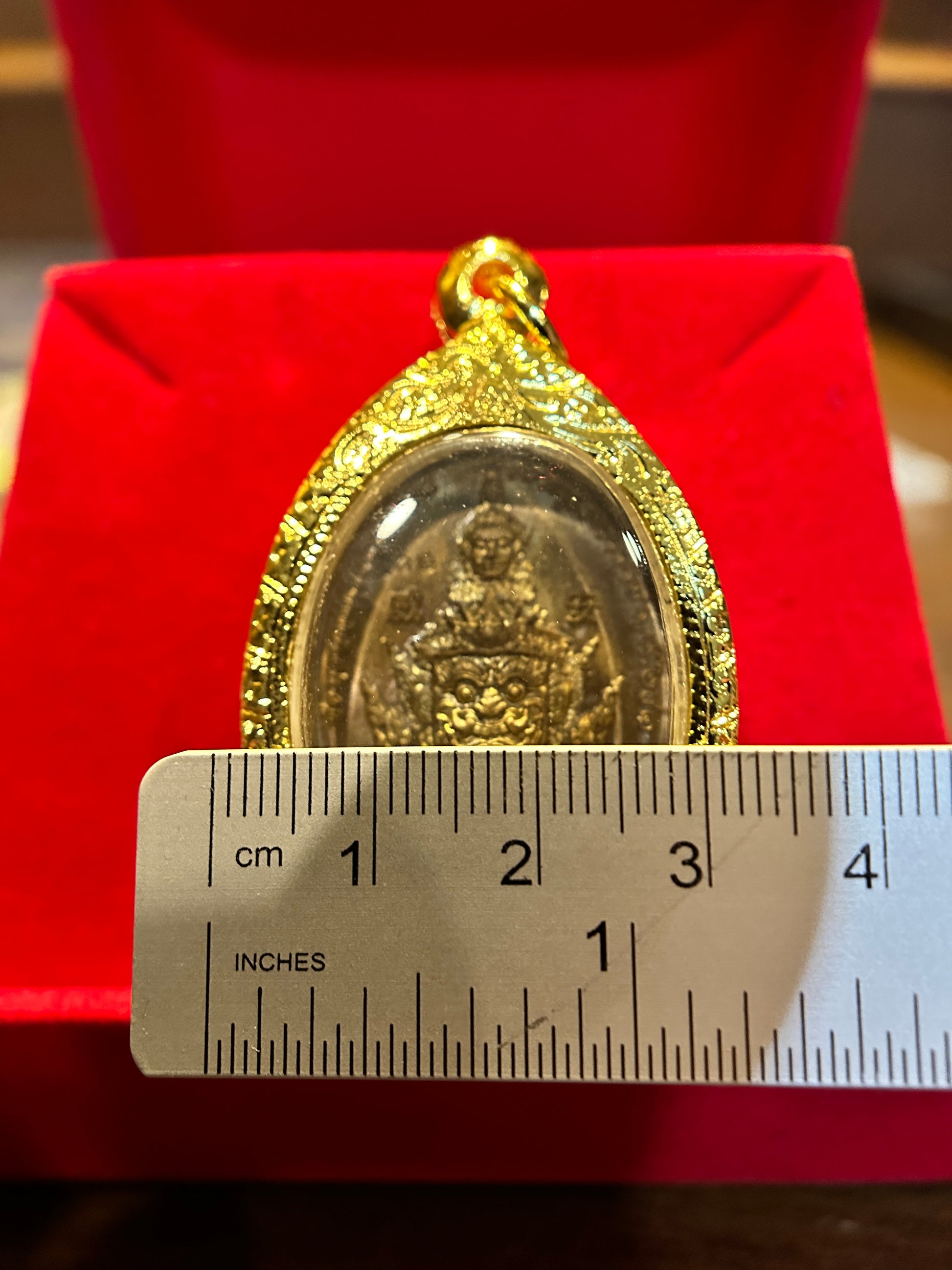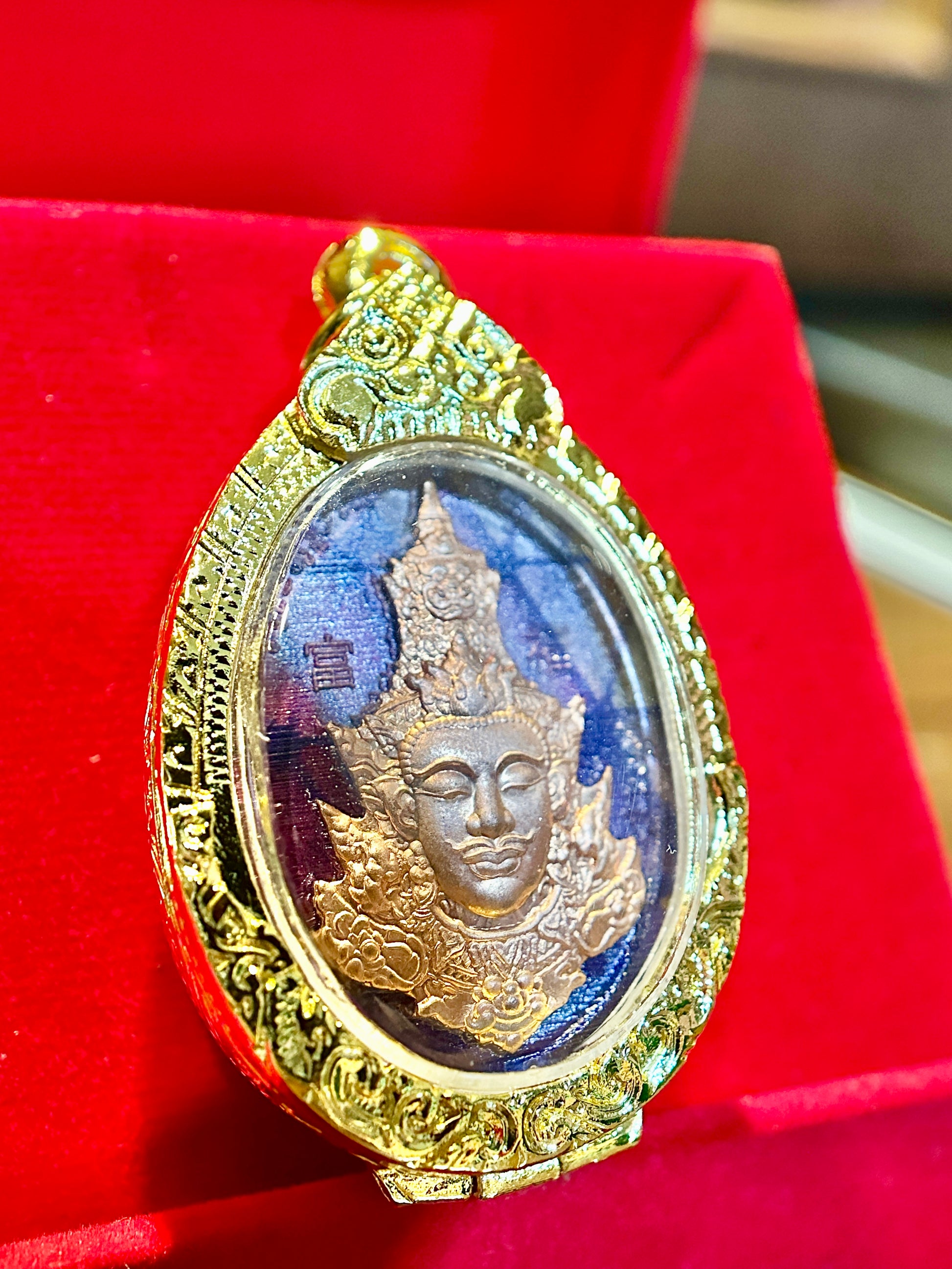 This powerful dual-sided amulet features two of the most revered figures in Thai spiritual tradition.