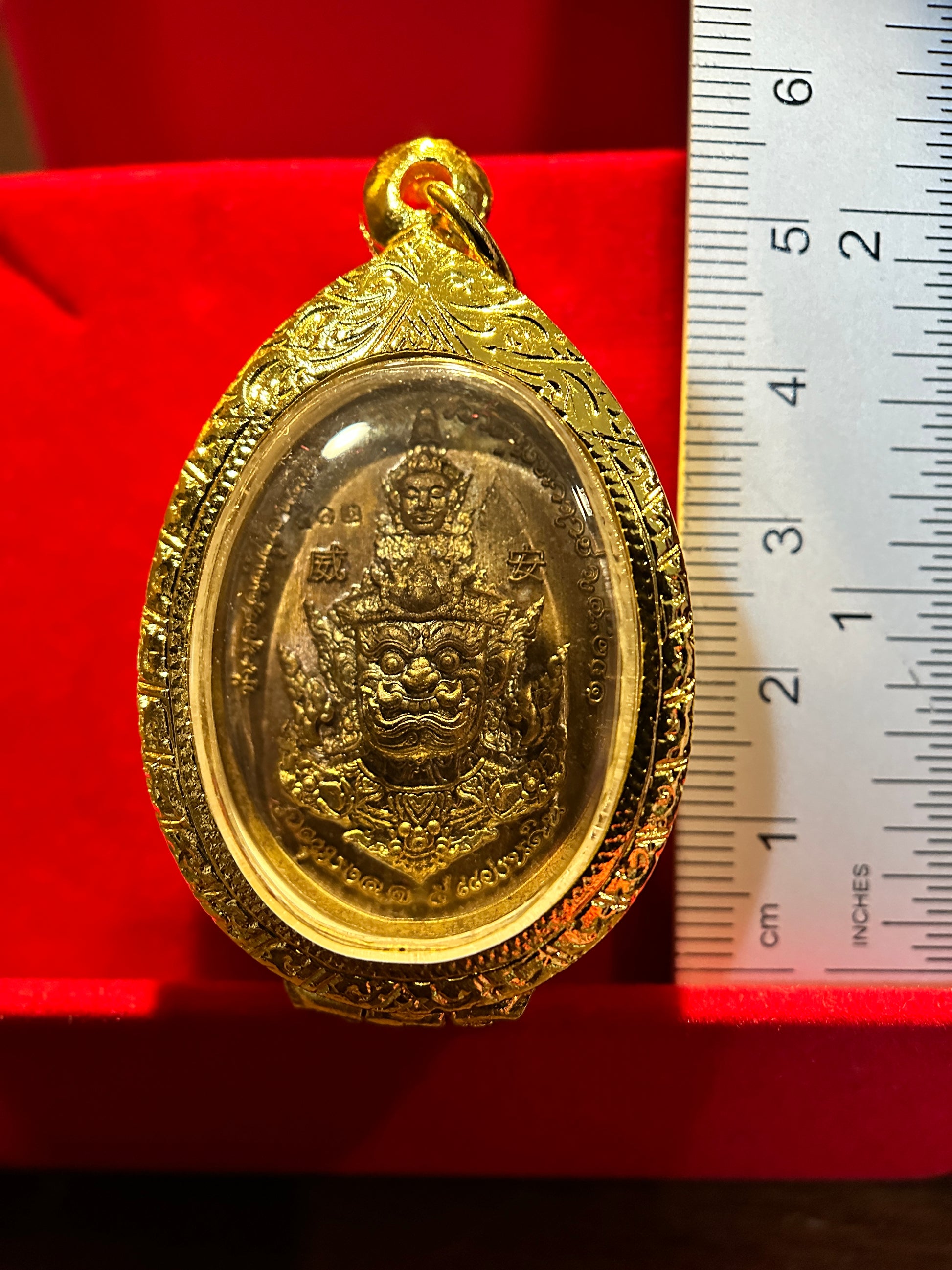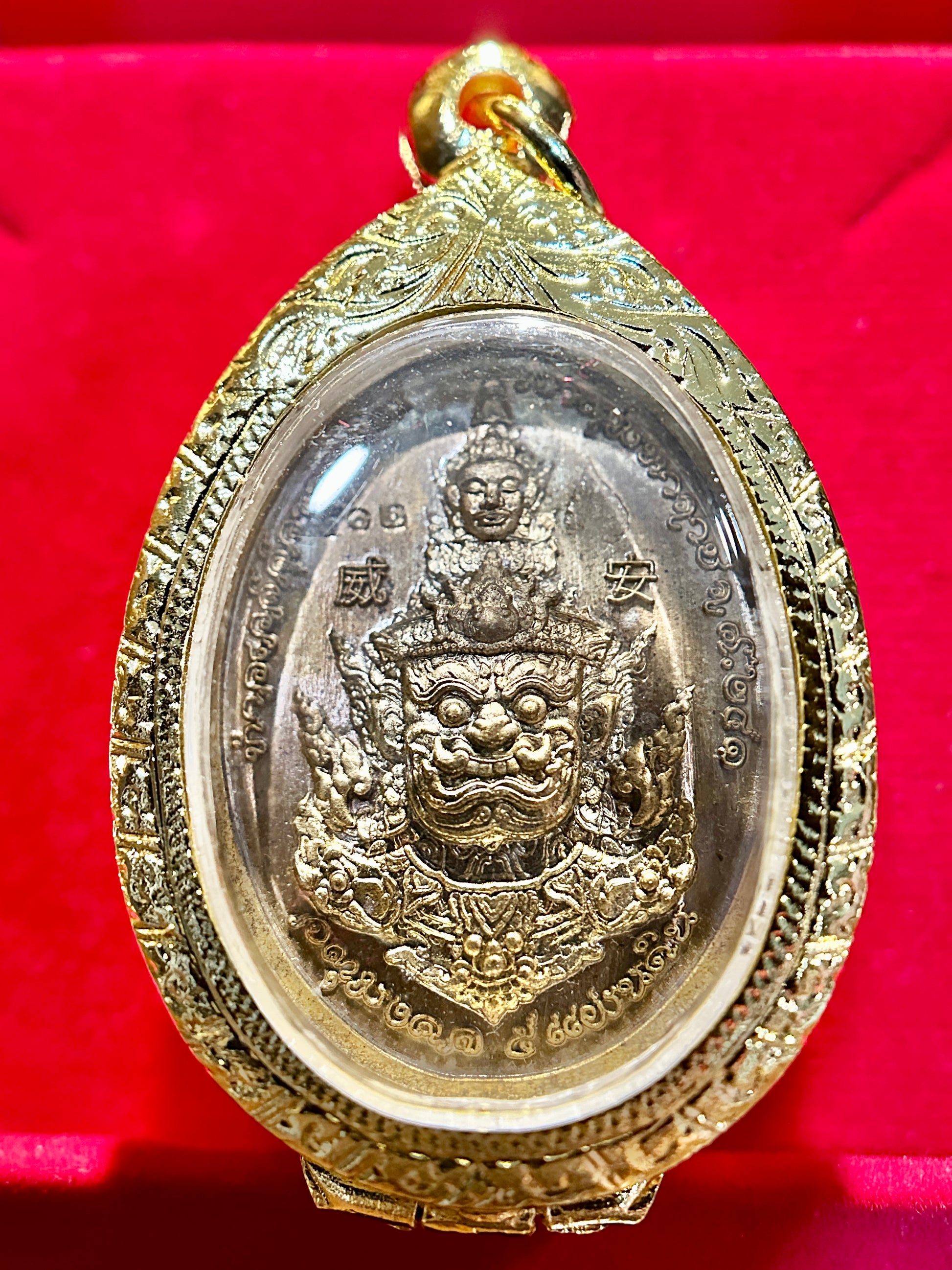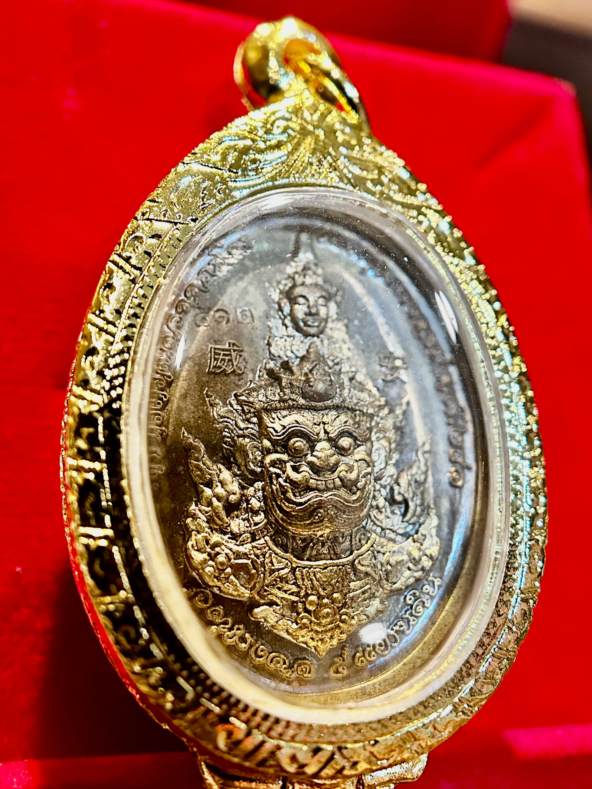 On the reverse stands Tao Wessuwan, the fierce guardian of the North and protector against evil forces, rendered in a striking brushed gold finish. With his sacred club in hand and a commanding presence, he radiates authority, protection, and spiritual strength.