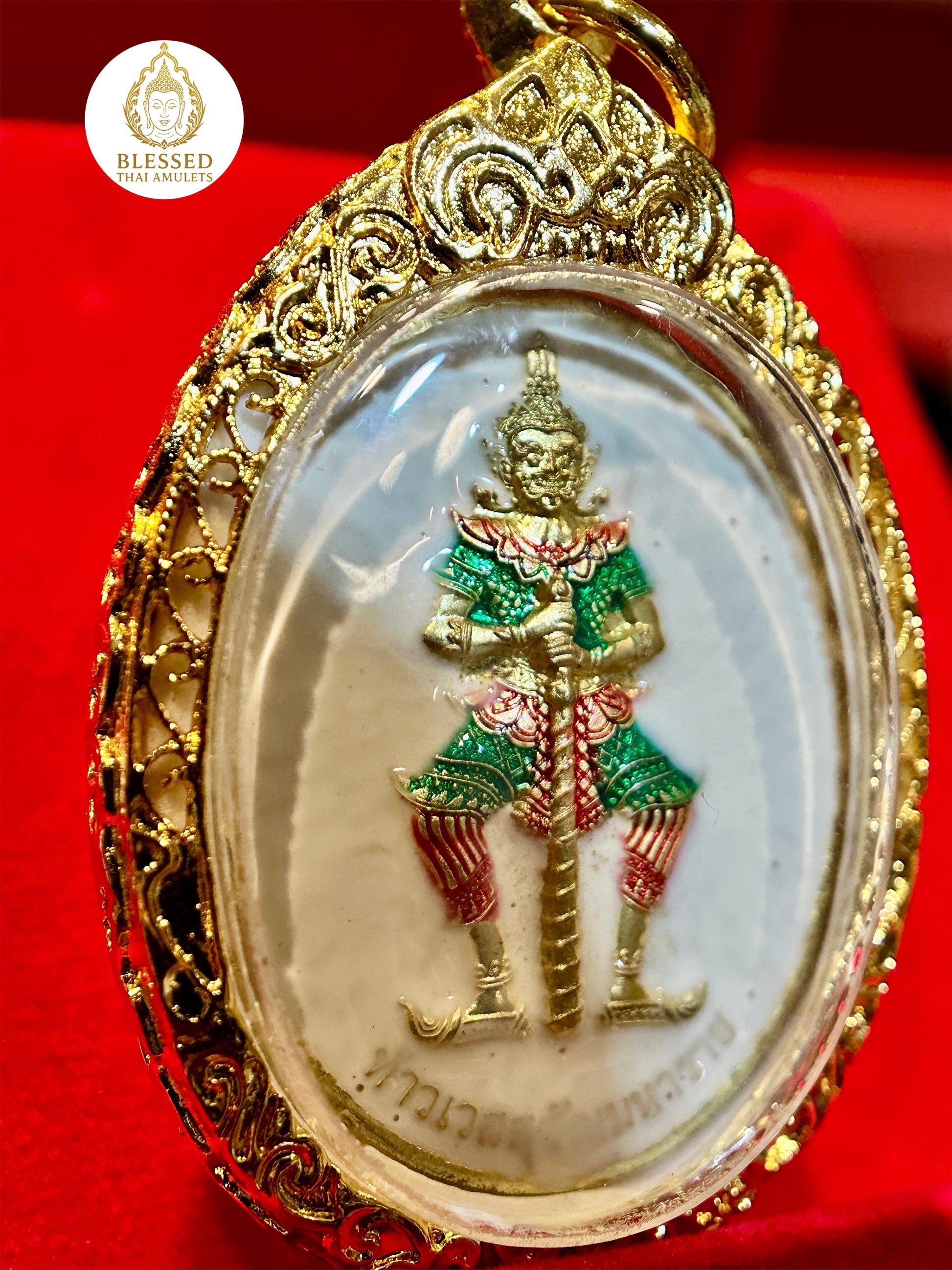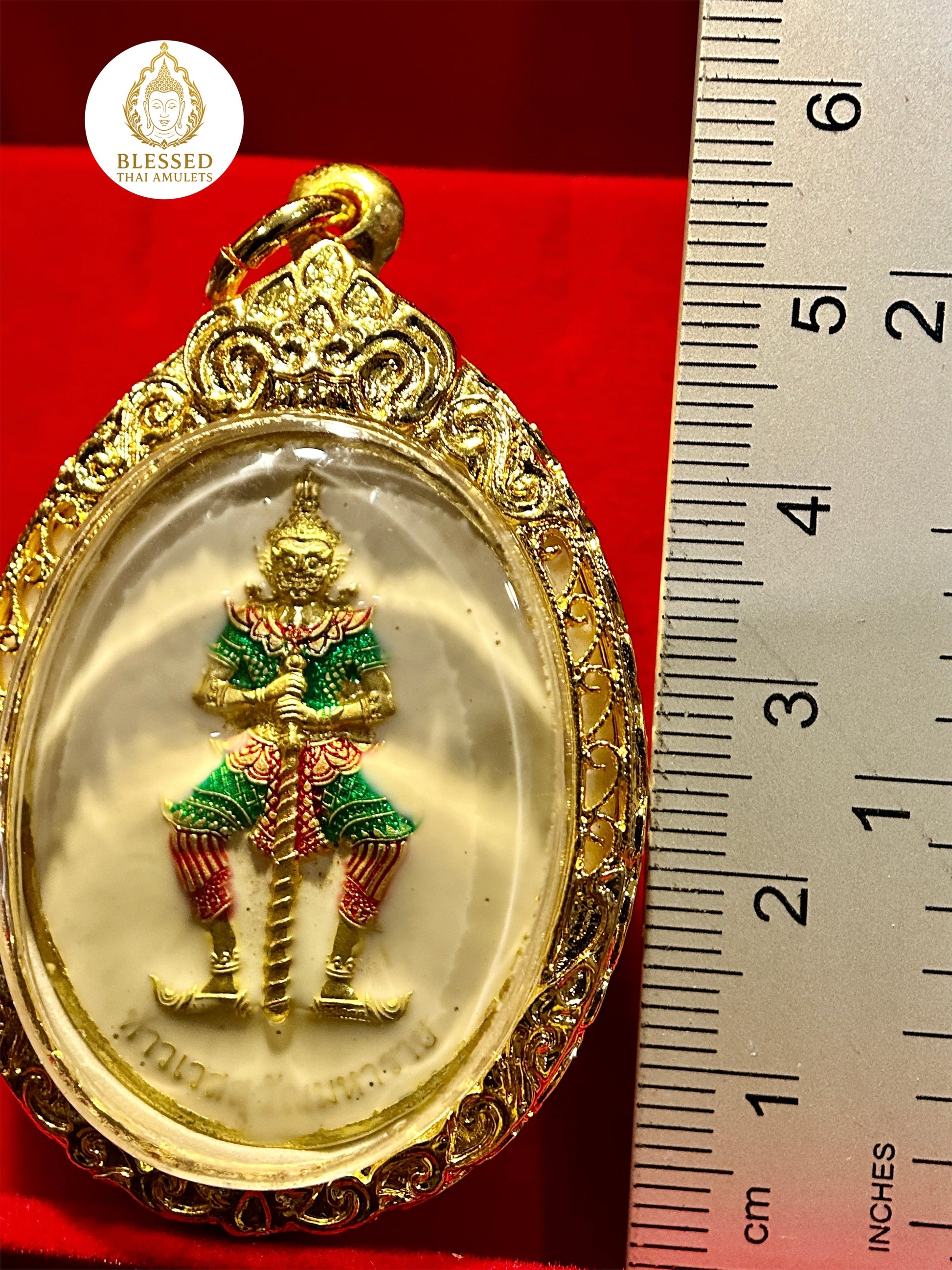 From Blessed Thai Amulets, this high-powered talisman combines two of the most feared and revered protectors in Thai spiritual tradition.