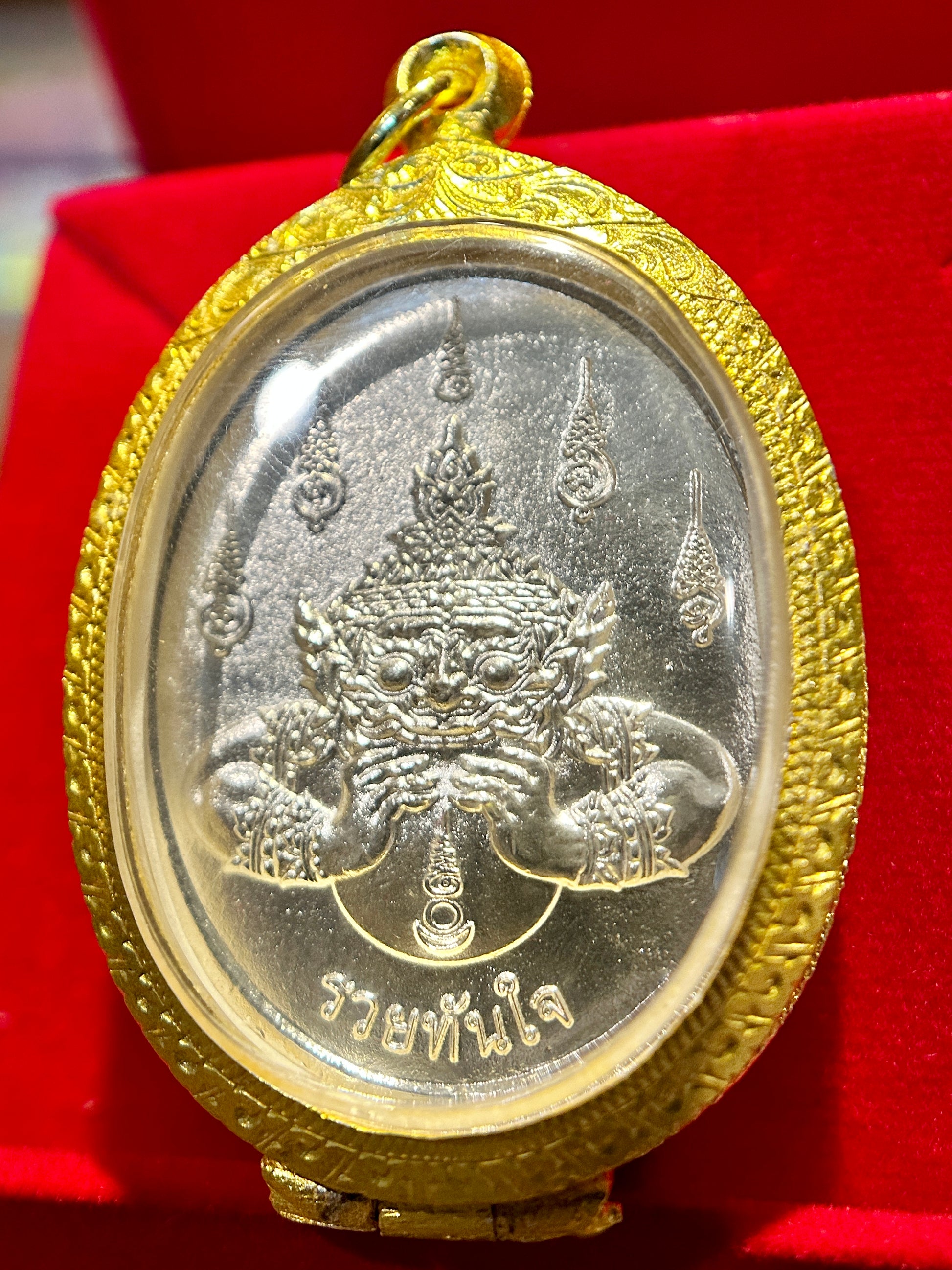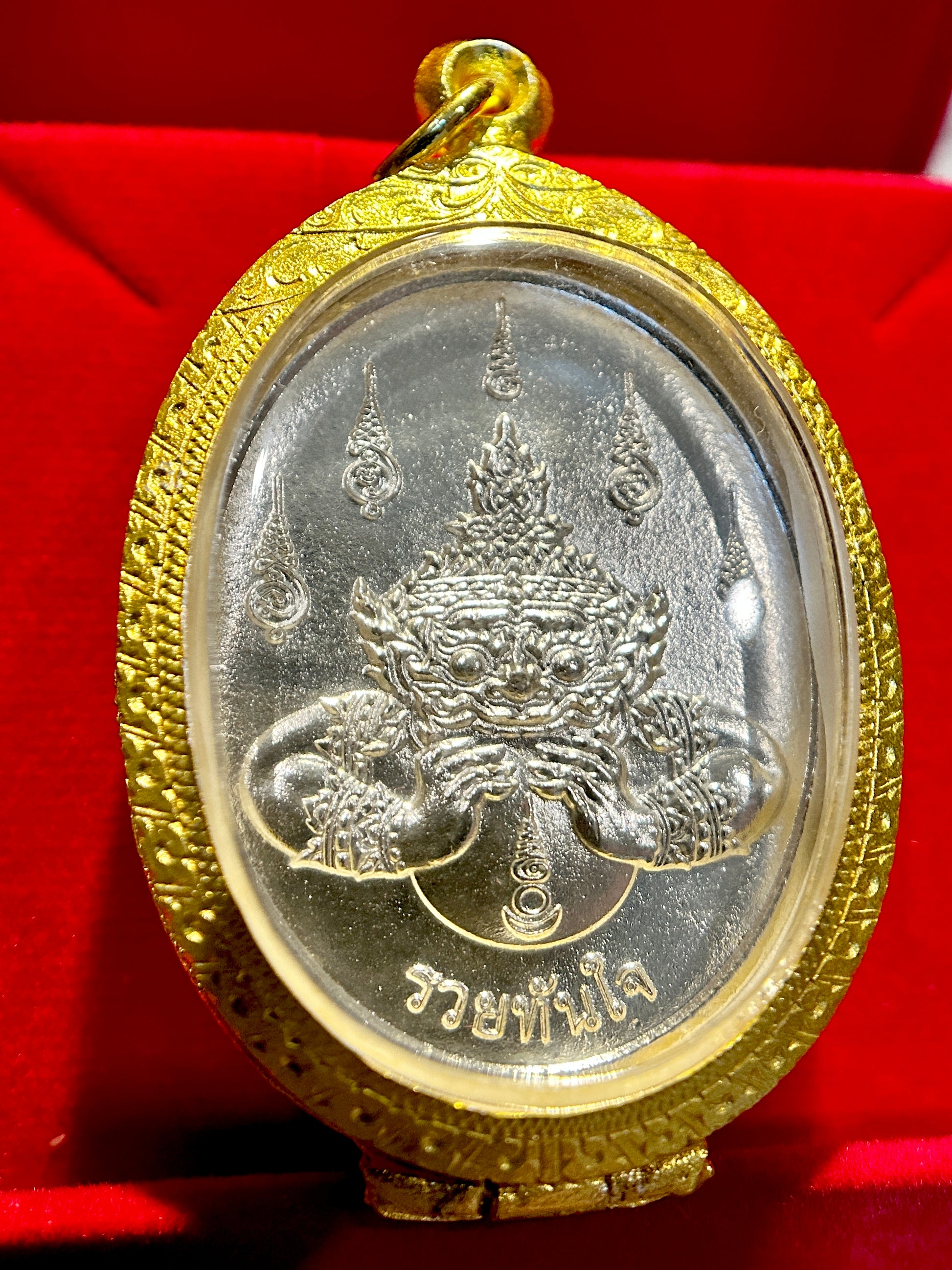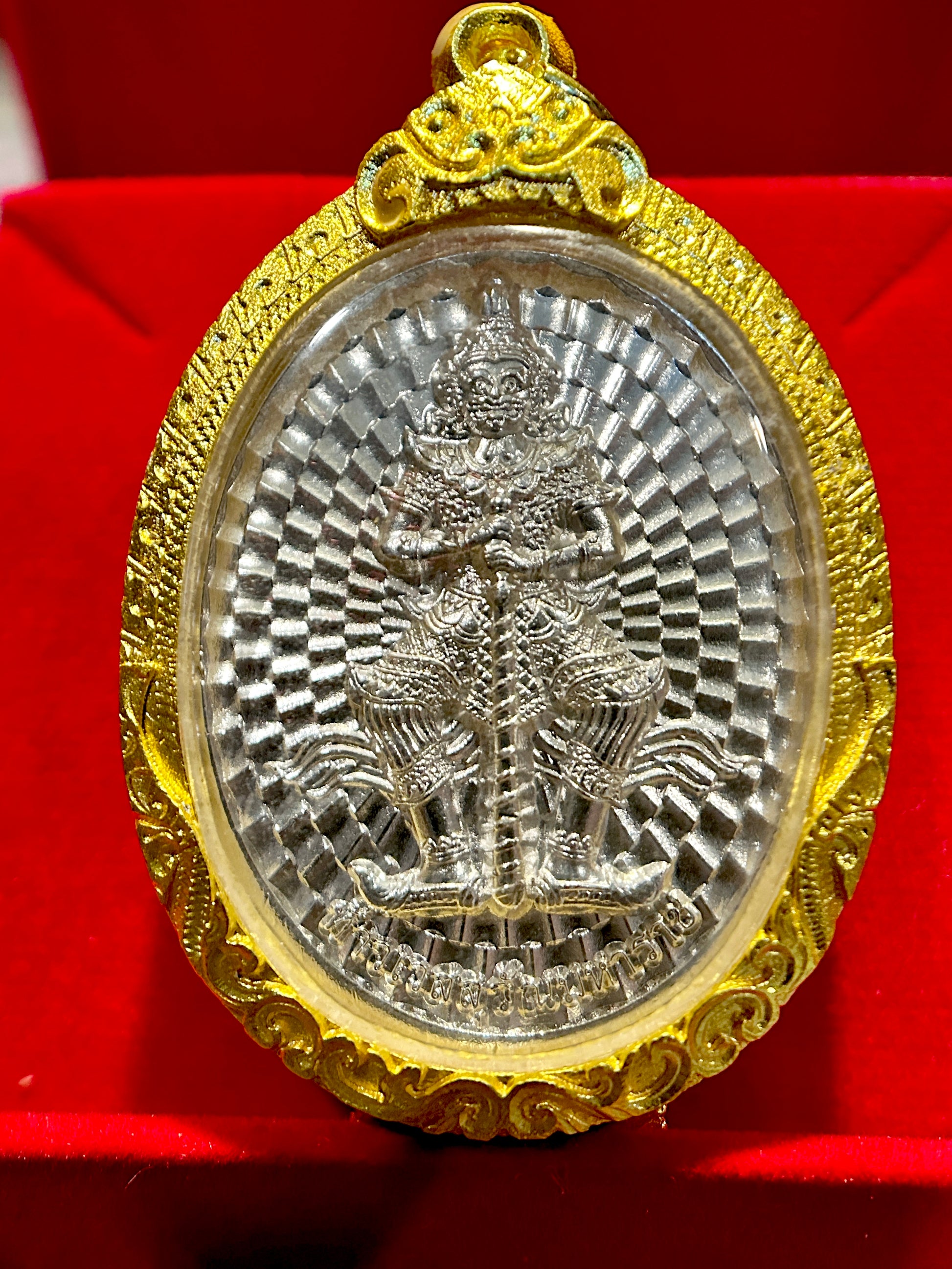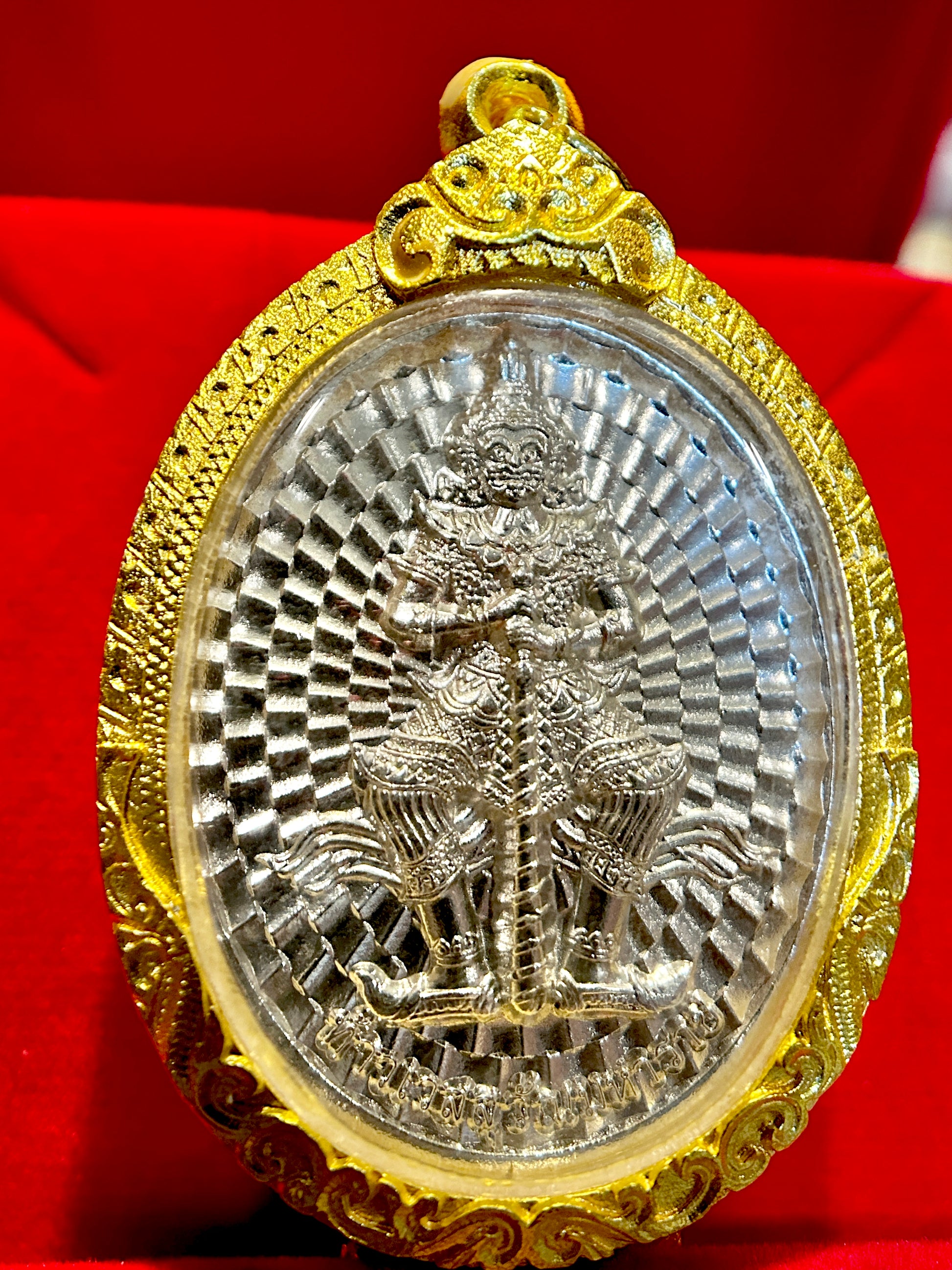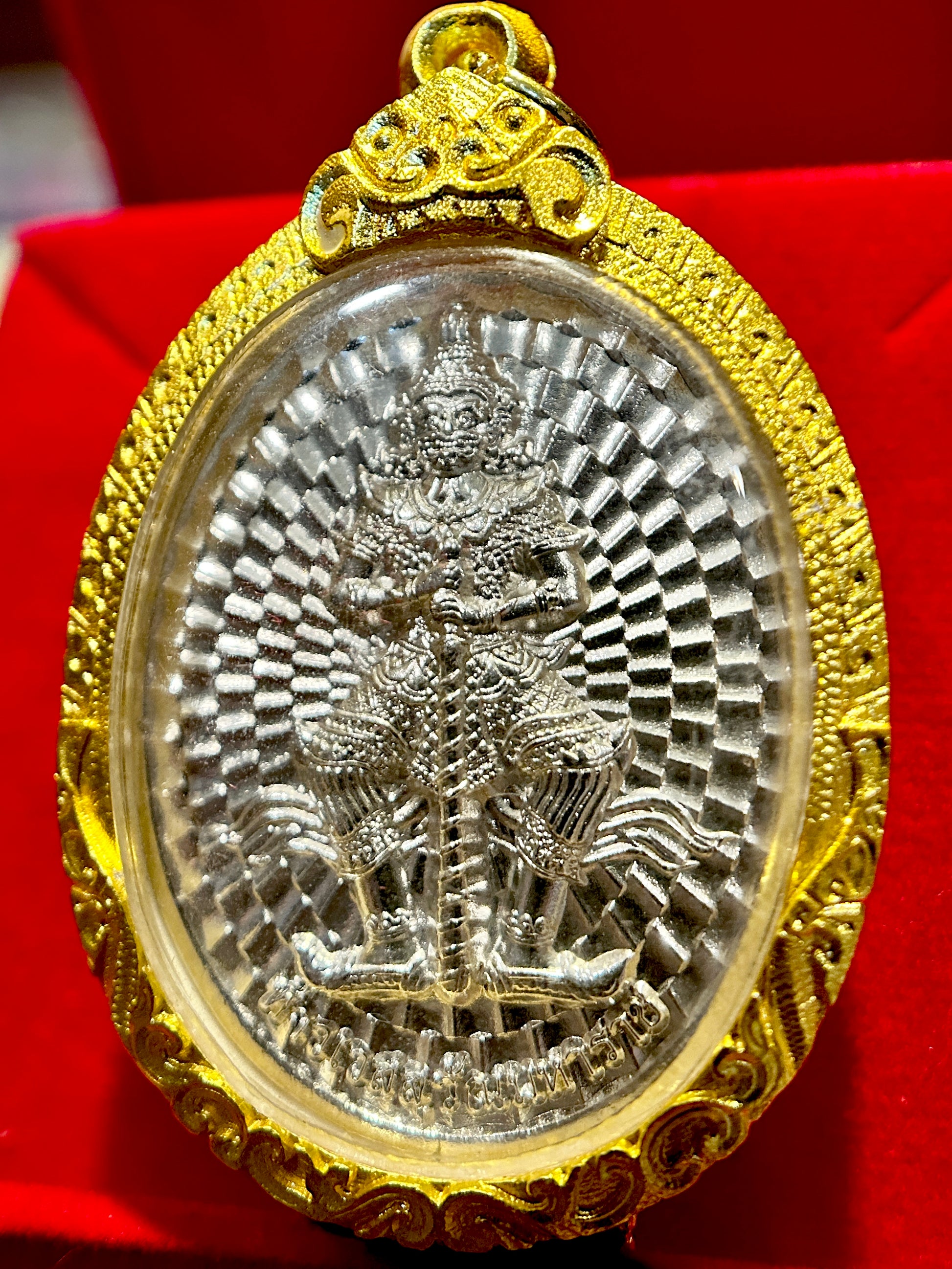 This powerful double-sided amulet unites two of Thailand’s most revered protectors.