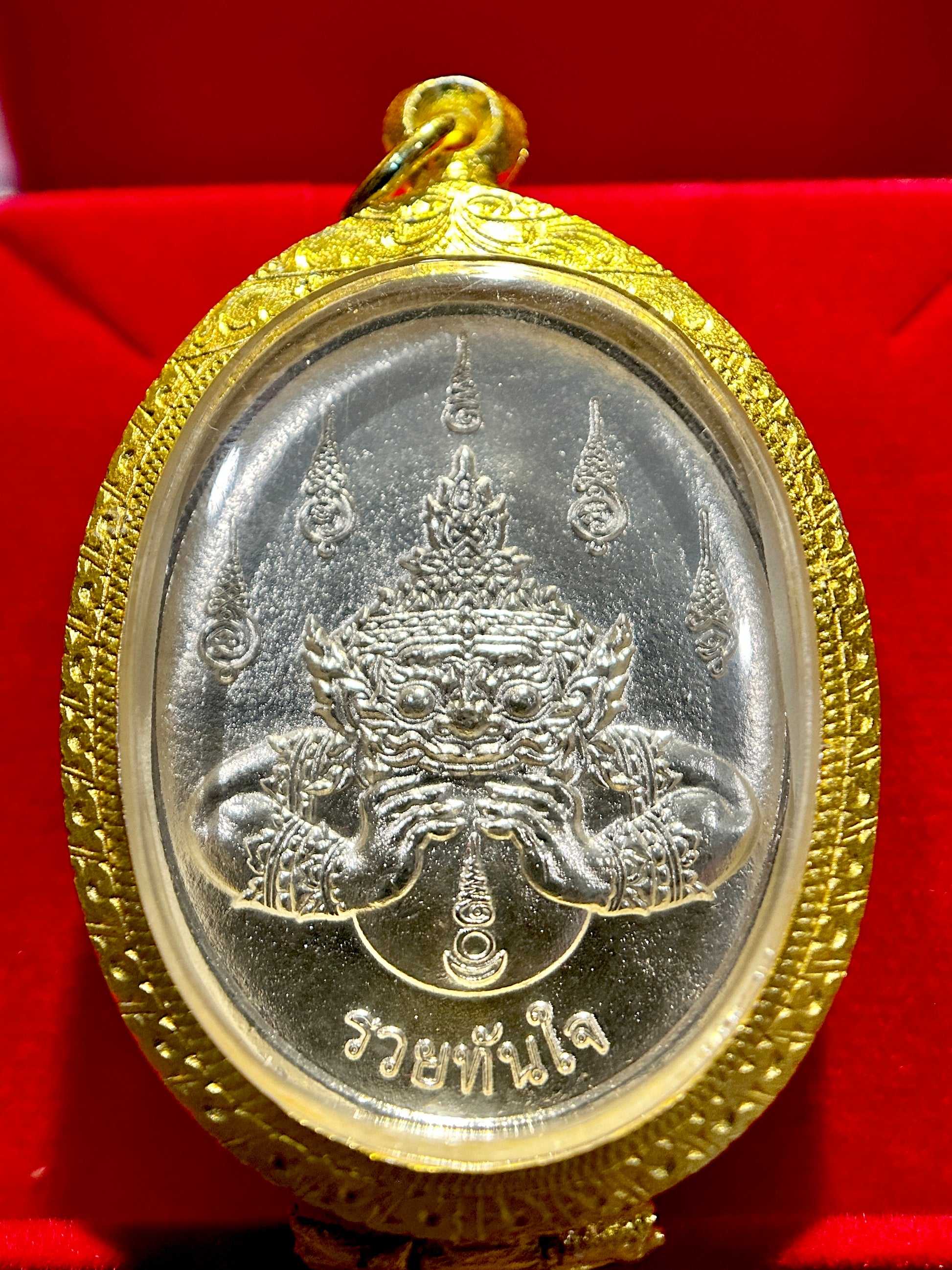 ✨ Front: Tao Wessuwan, the King of Giants, stands in radiant silver detail against a dazzling sunburst backdrop. Known as the Guardian of Wealth and Protector against evil spirits, he is a symbol of power, fortune, and unshakable protection.