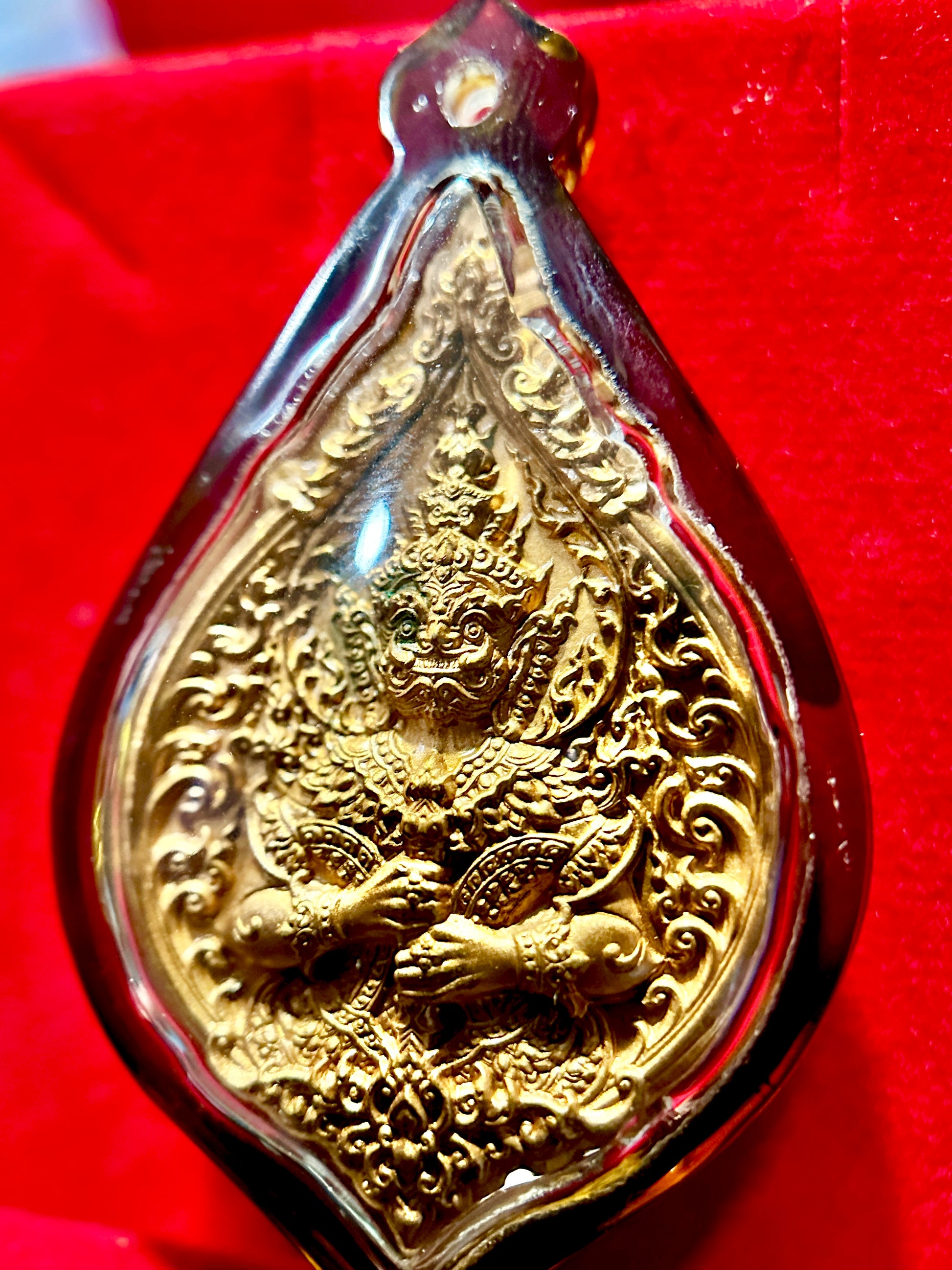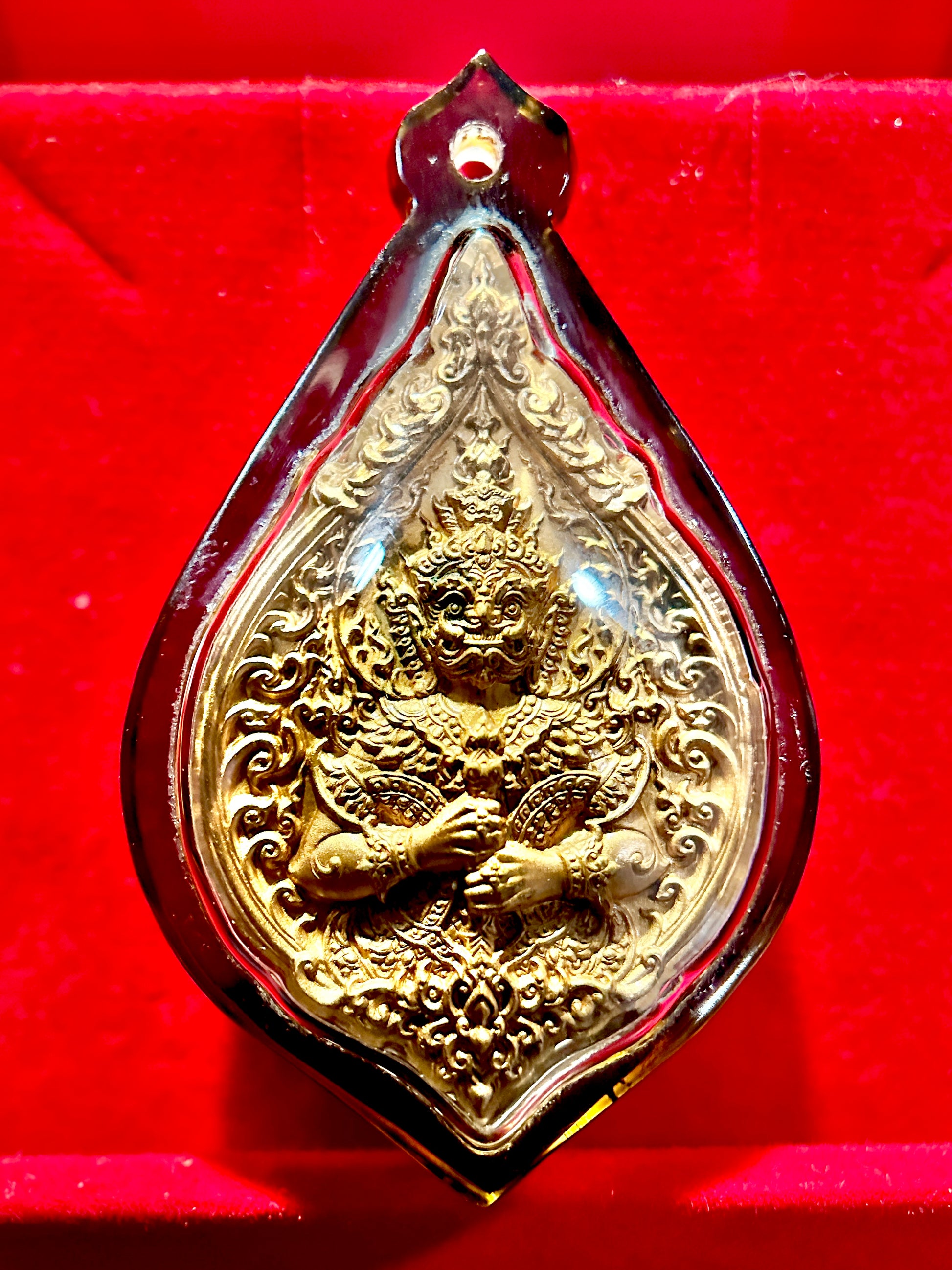 🔸 The reverse reveals Tao Wessuwan seated regally upon a celestial throne, surrounded by sacred yantras and mythological motifs. This depiction represents command over wealth, karma, and spiritual law—protecting not just the body, but also one’s fortune and path.