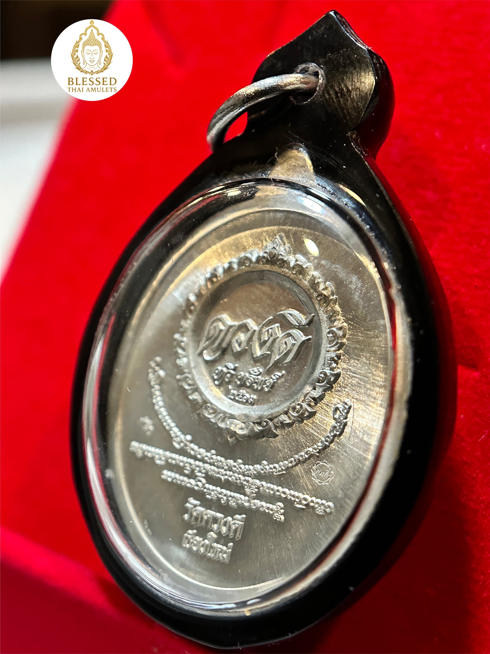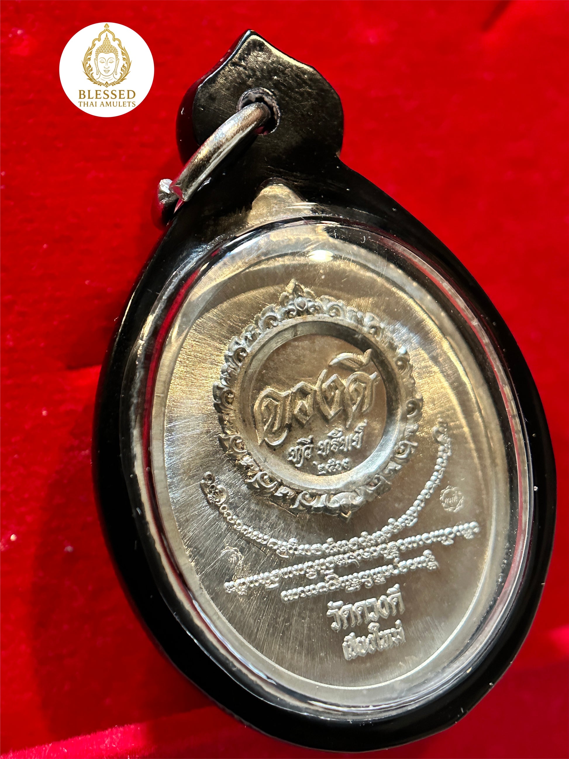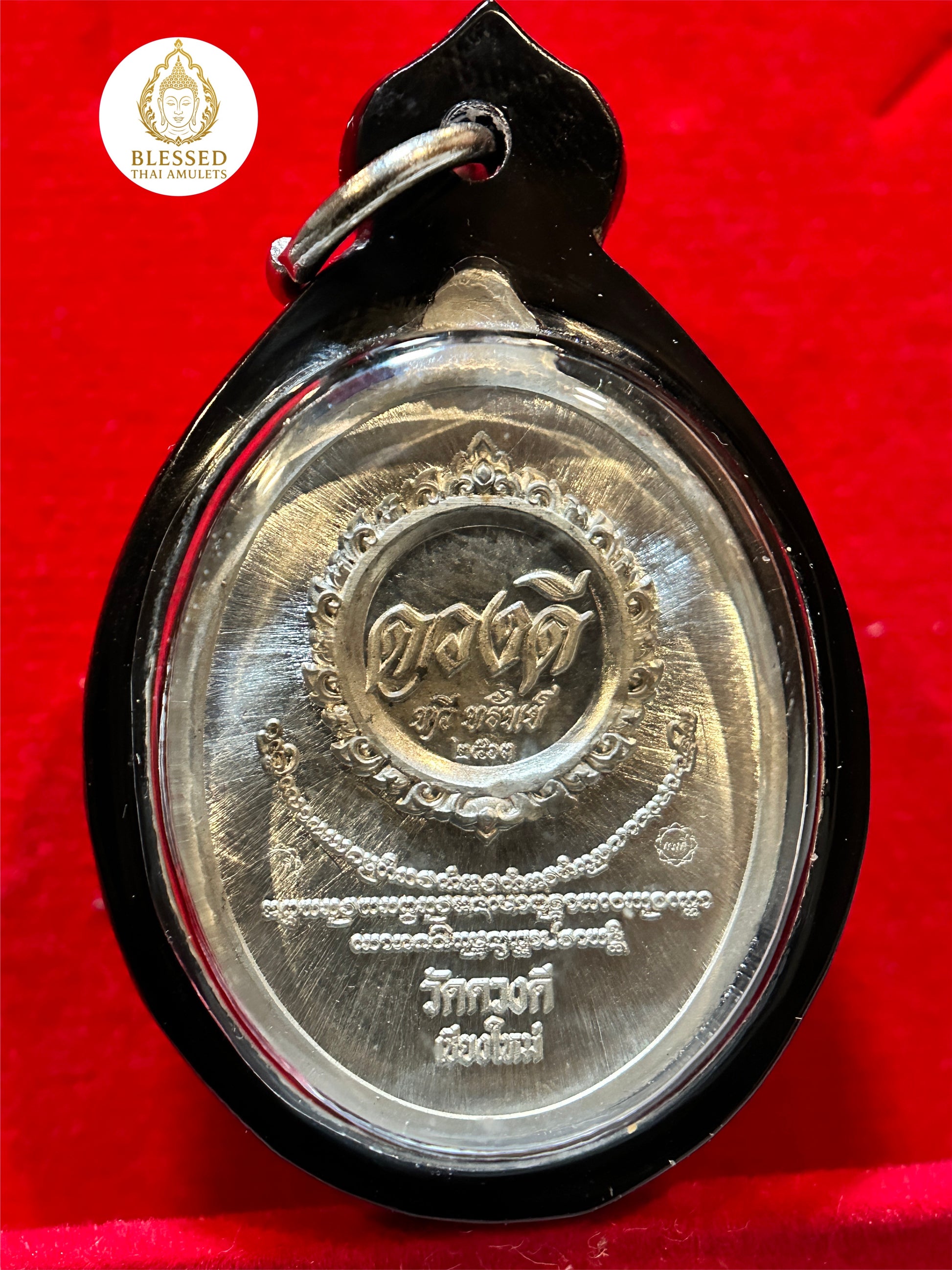 This bold and commanding amulet features Tao Wessuwan—the revered Guardian King and vanquisher of evil—cast in radiant silver and encircled by flaming red-orange banners of power. Known as a fierce protector against malevolent forces, Tao Wessuwan is also invoked for wealth, authority, and spiritual strength.
