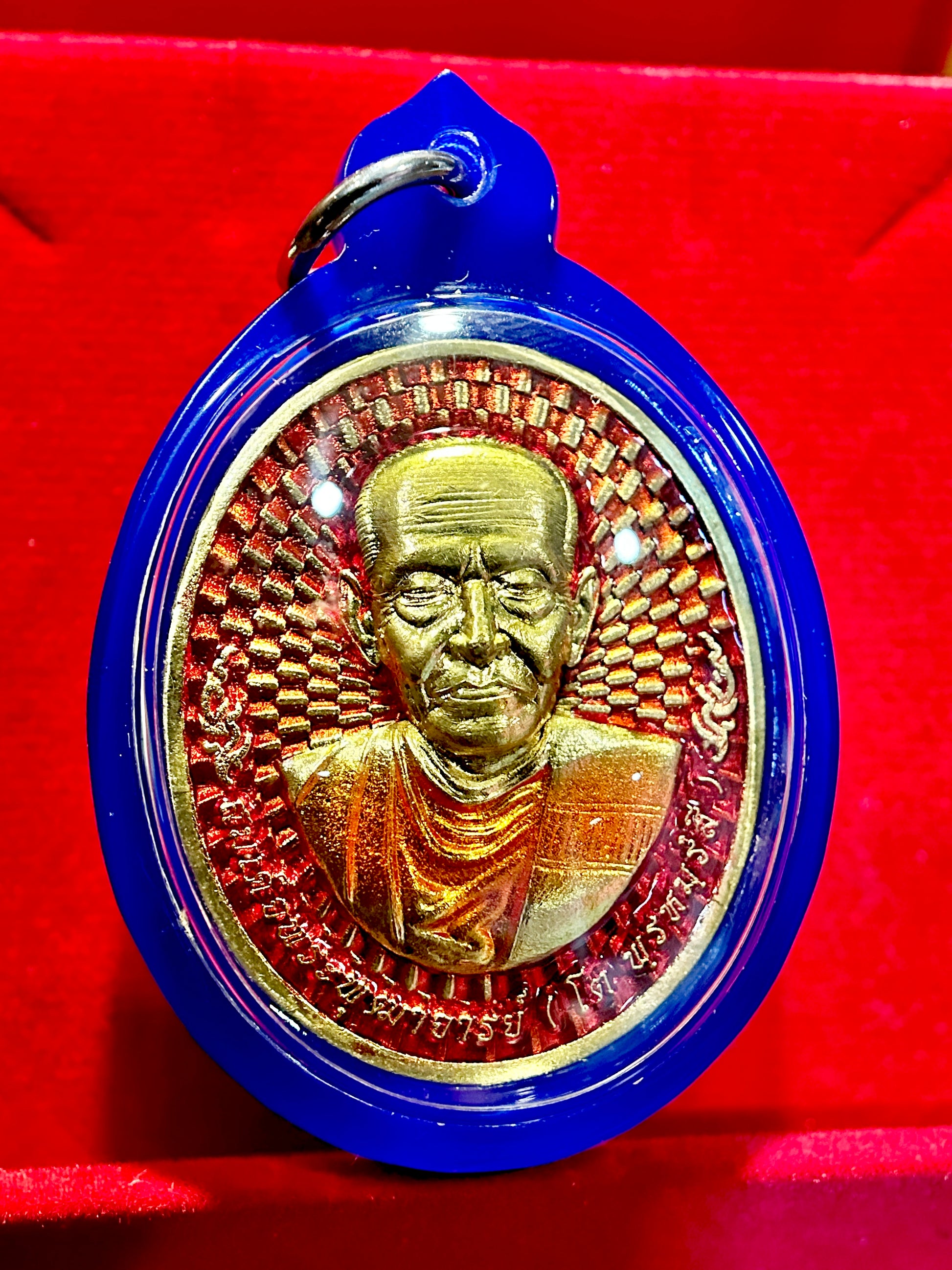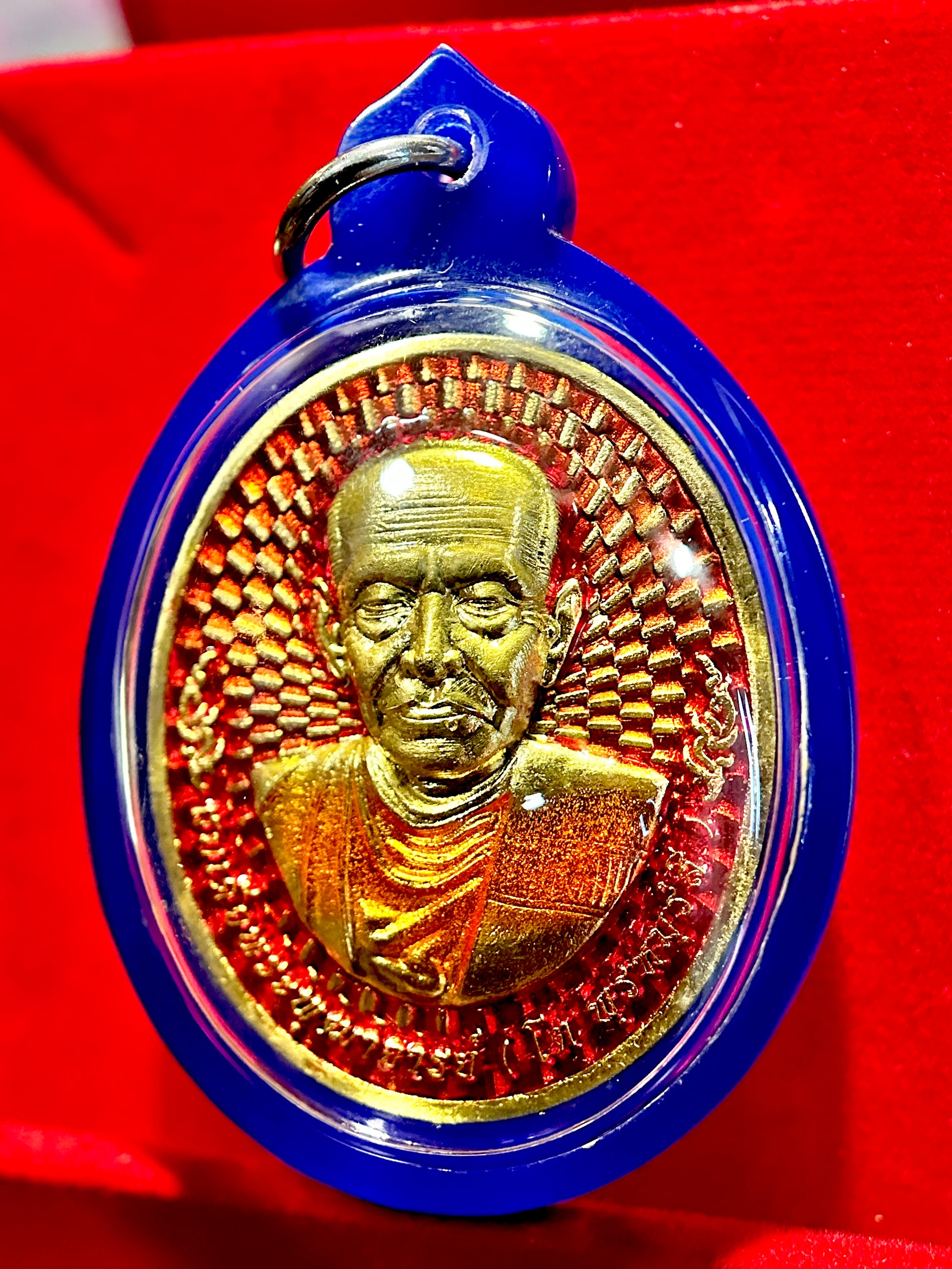 This sacred amulet features Somdej Phra Phutthachan (Toh), one of Thailand’s most venerated monks, renowned for composing the powerful Chinabanchorn (Jinapanjara) protective chant. The front displays his dignified image in gold relief, radiating calm and authority.