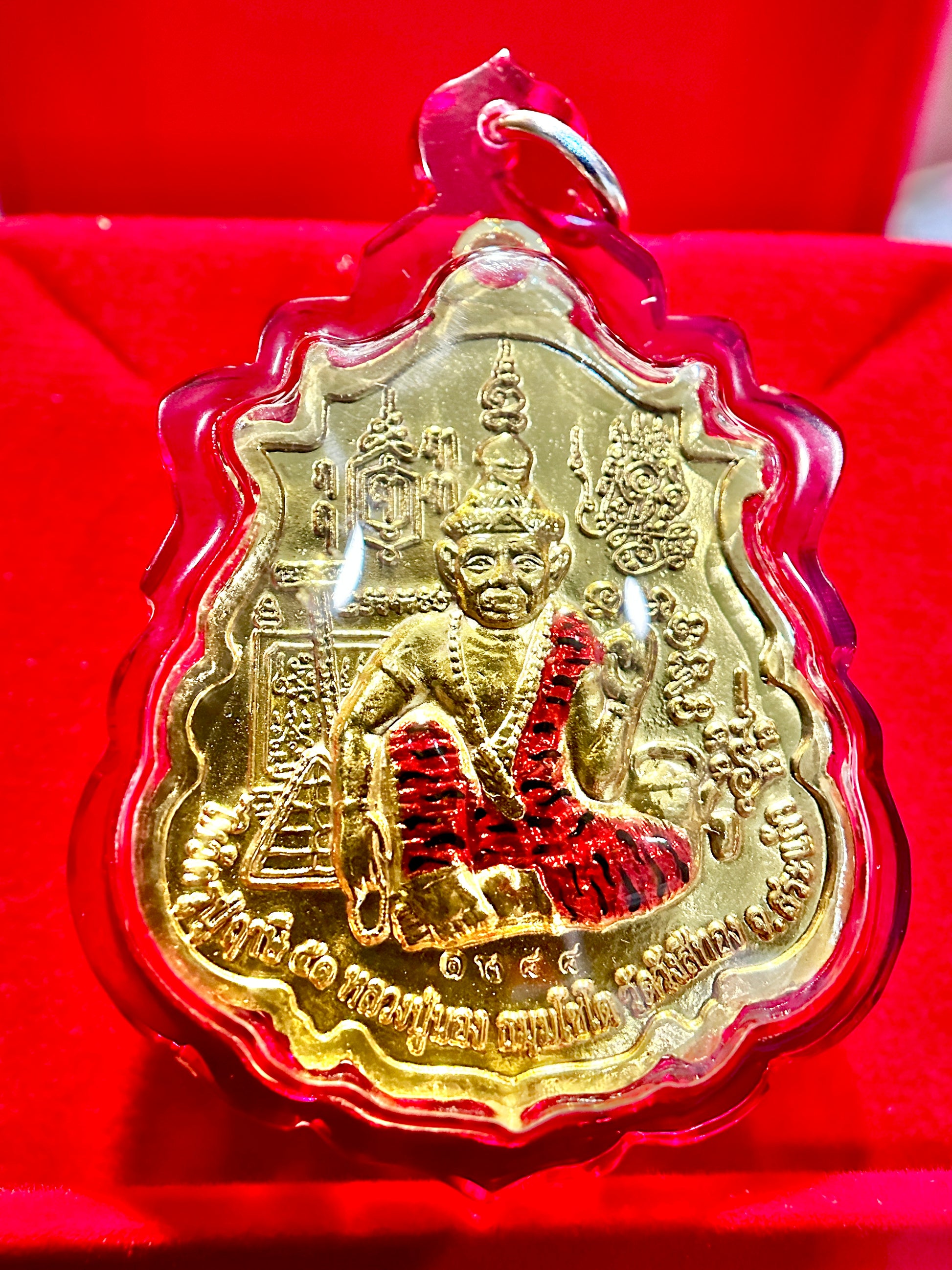 Vishnu & Garuda with Nagas / Lersi Wisdom & Protection Amulet (Red/Gold)